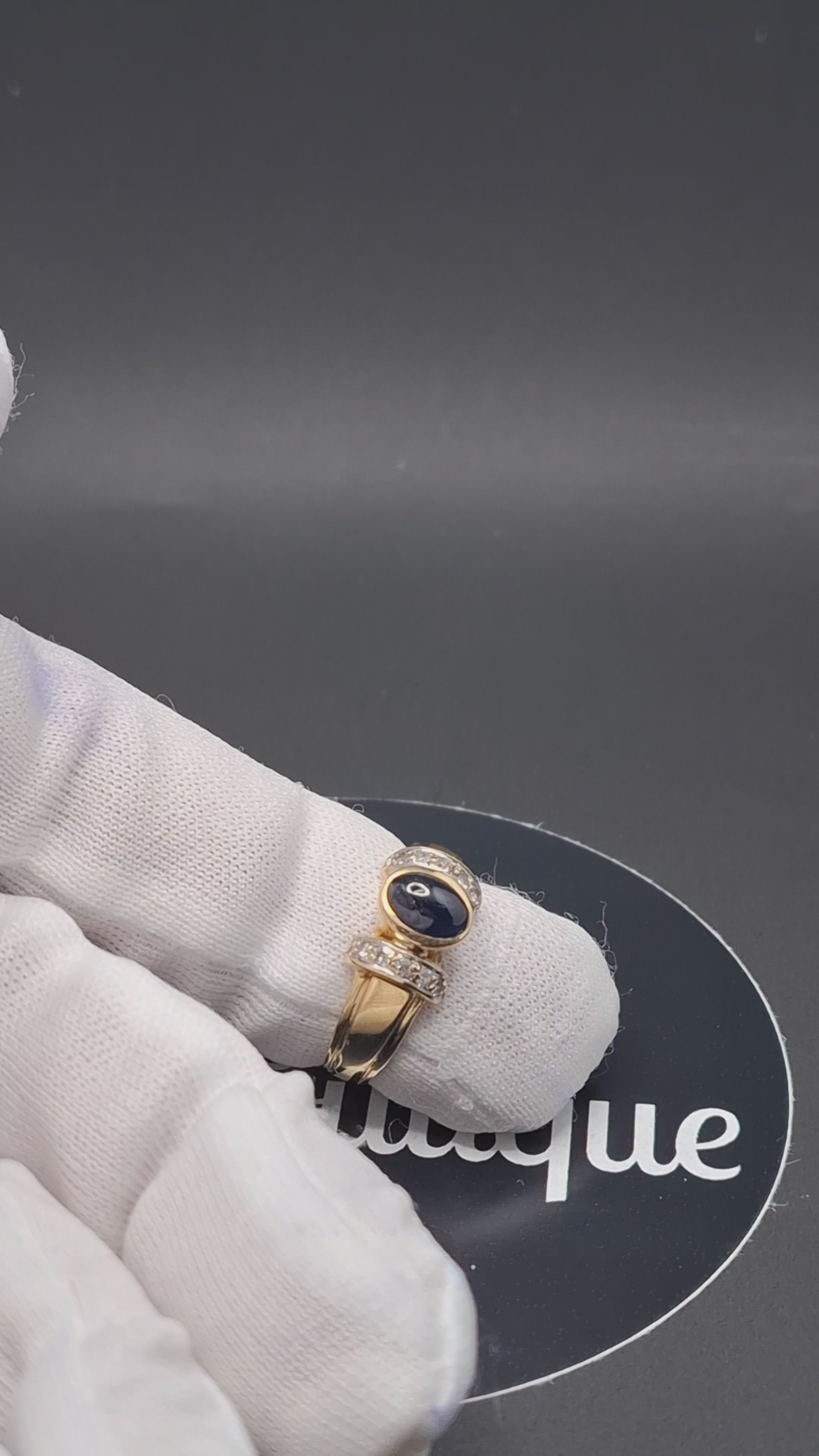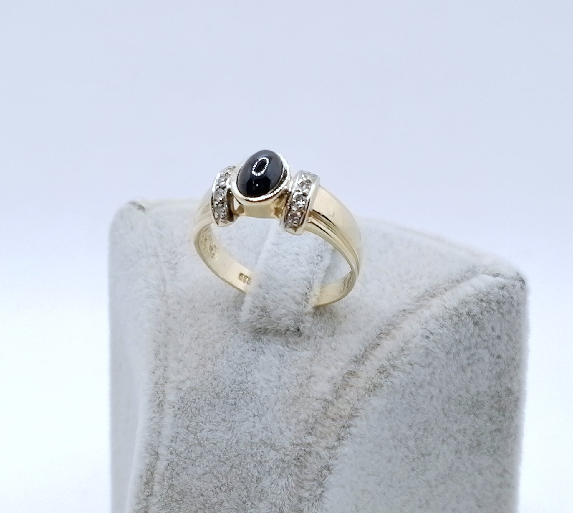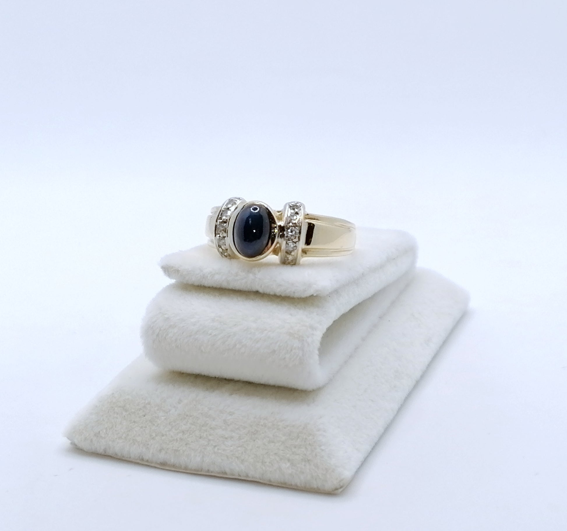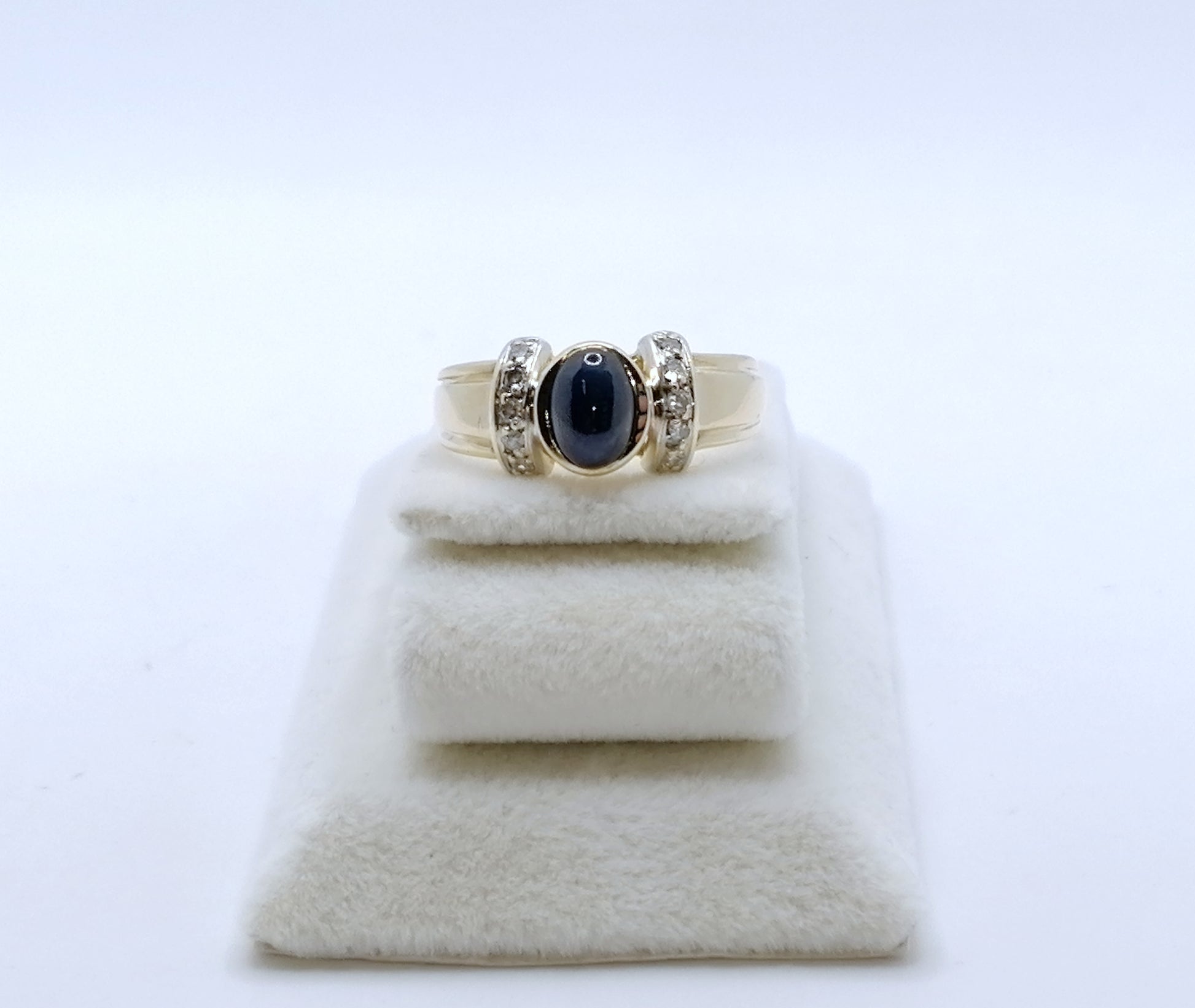 Ring Gold 585er mit Saphir Cabochon und Diamanten Gr. 57