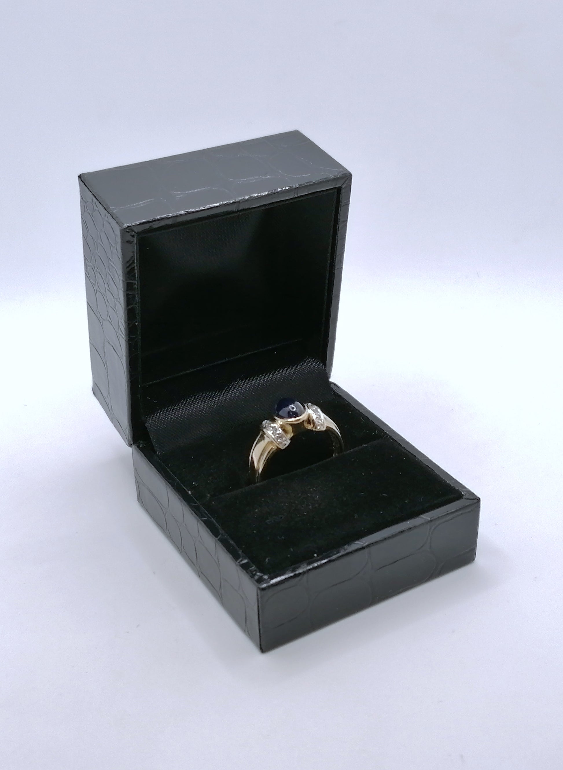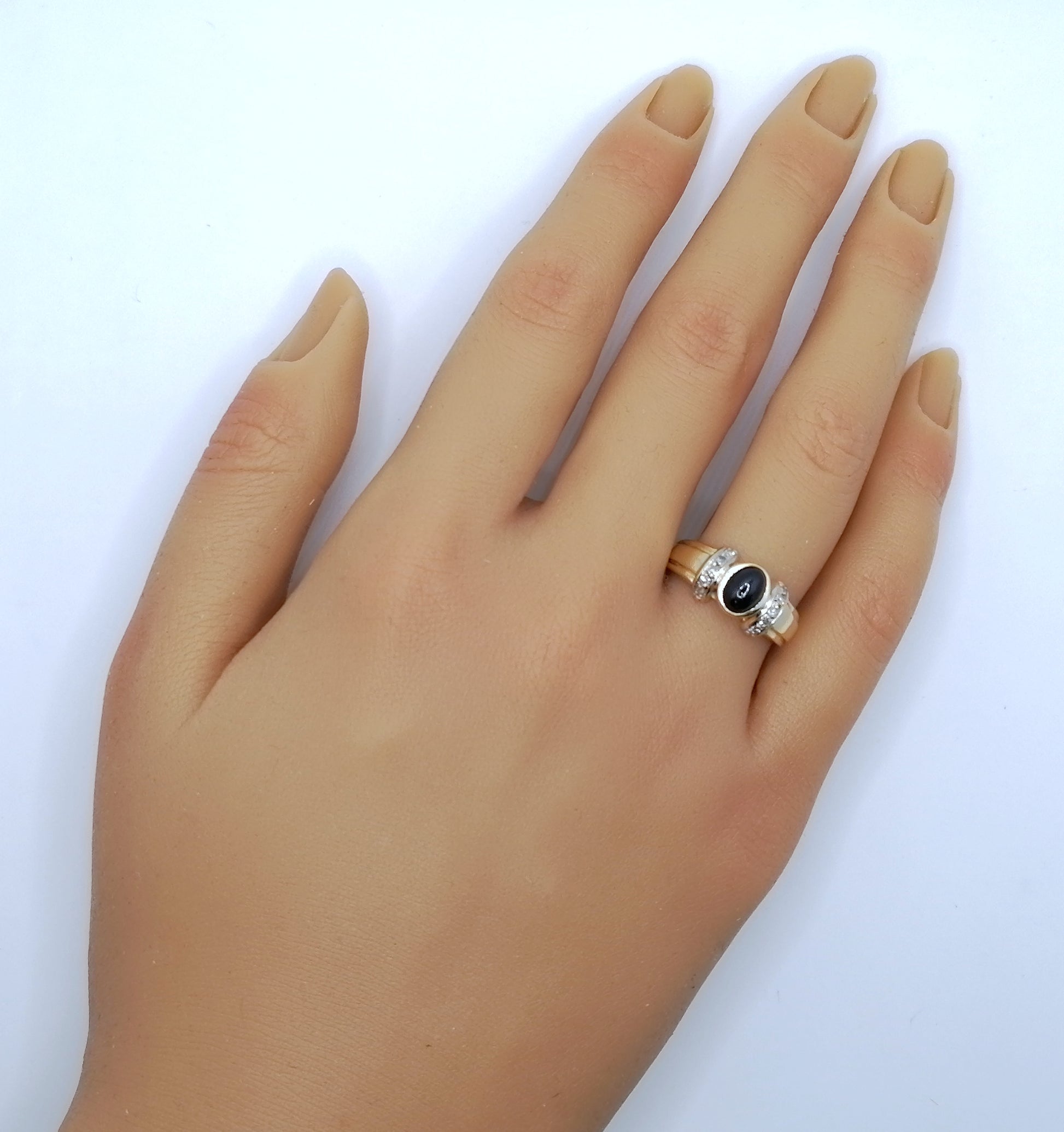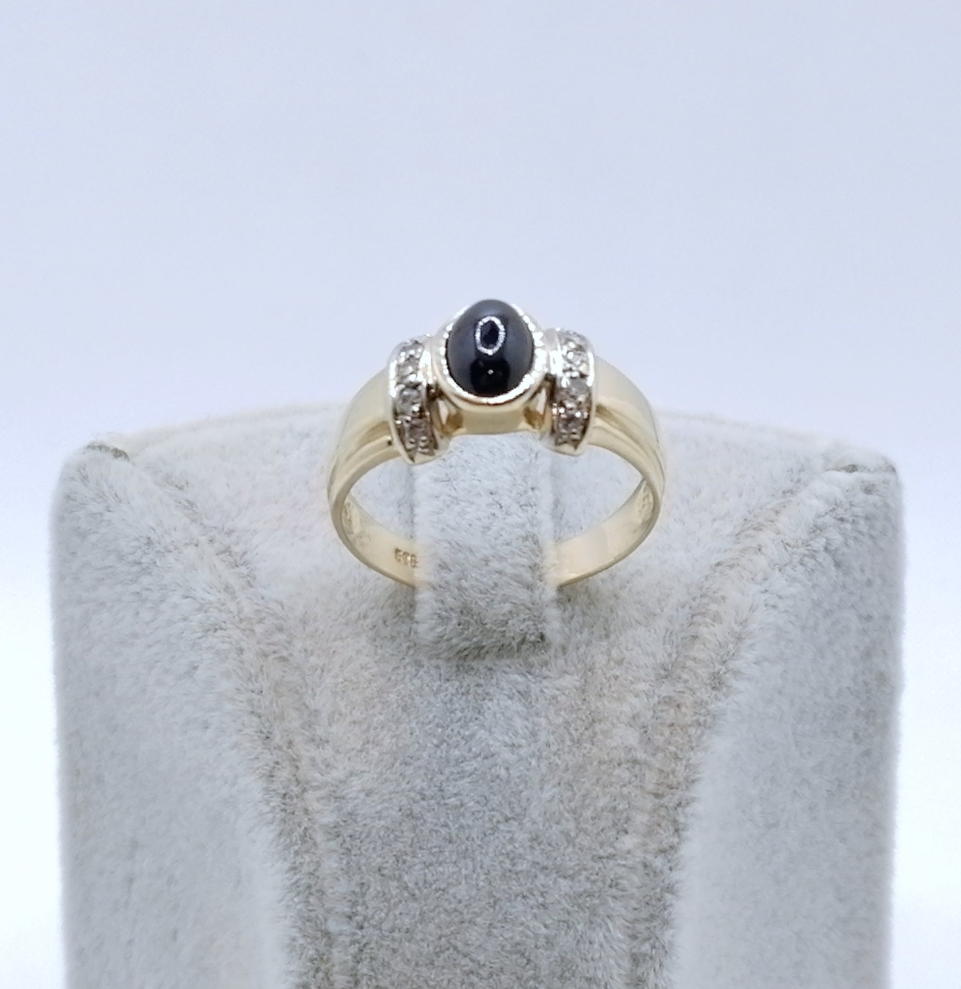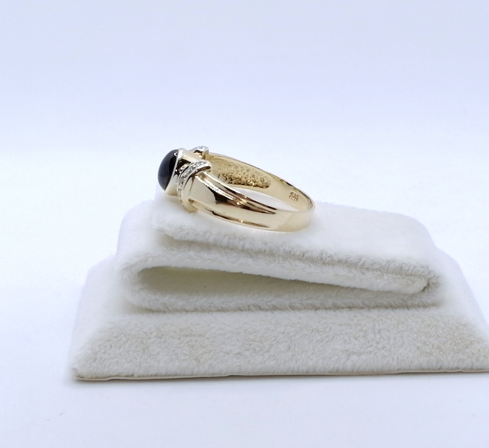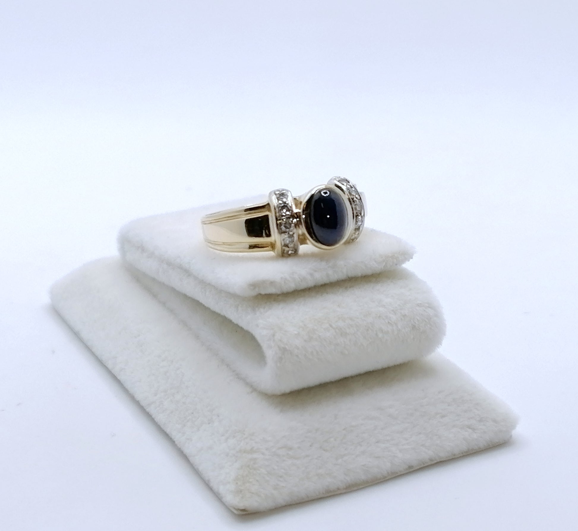 Ring Gold 585er mit Saphir Cabochon und Diamanten Gr. 57