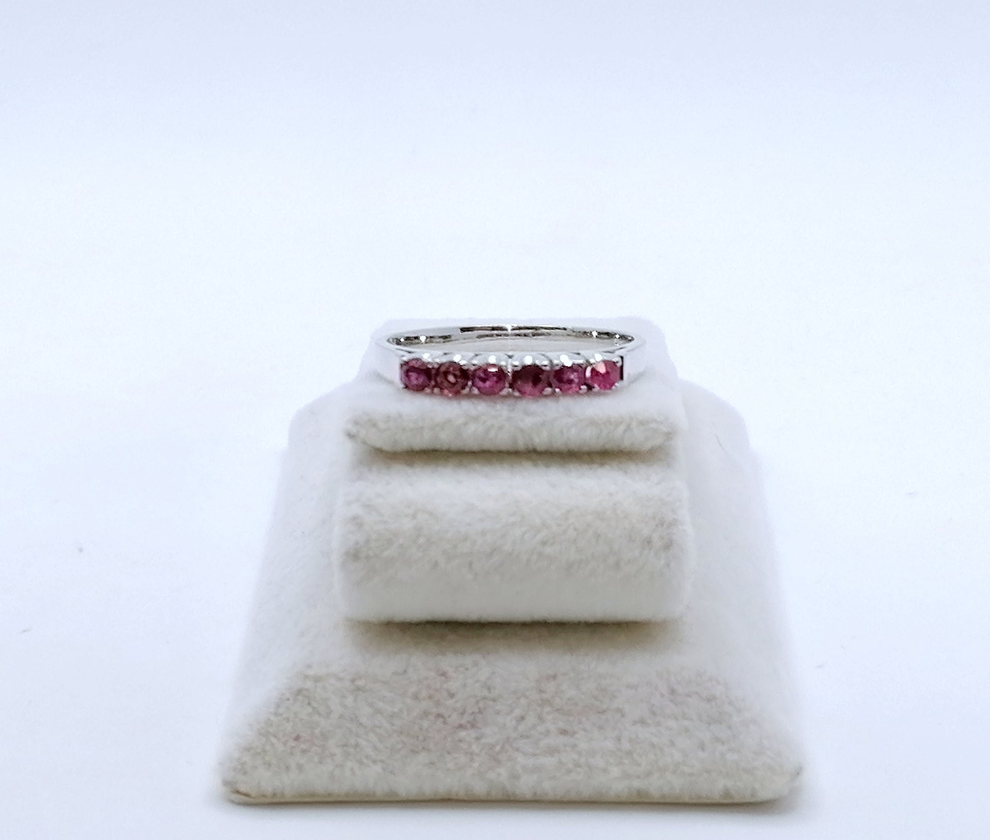 Weißgold Damenring mit Spinell Edelsteinen. Der Ring ist aus 585er 14 karat Gold gefertigt.