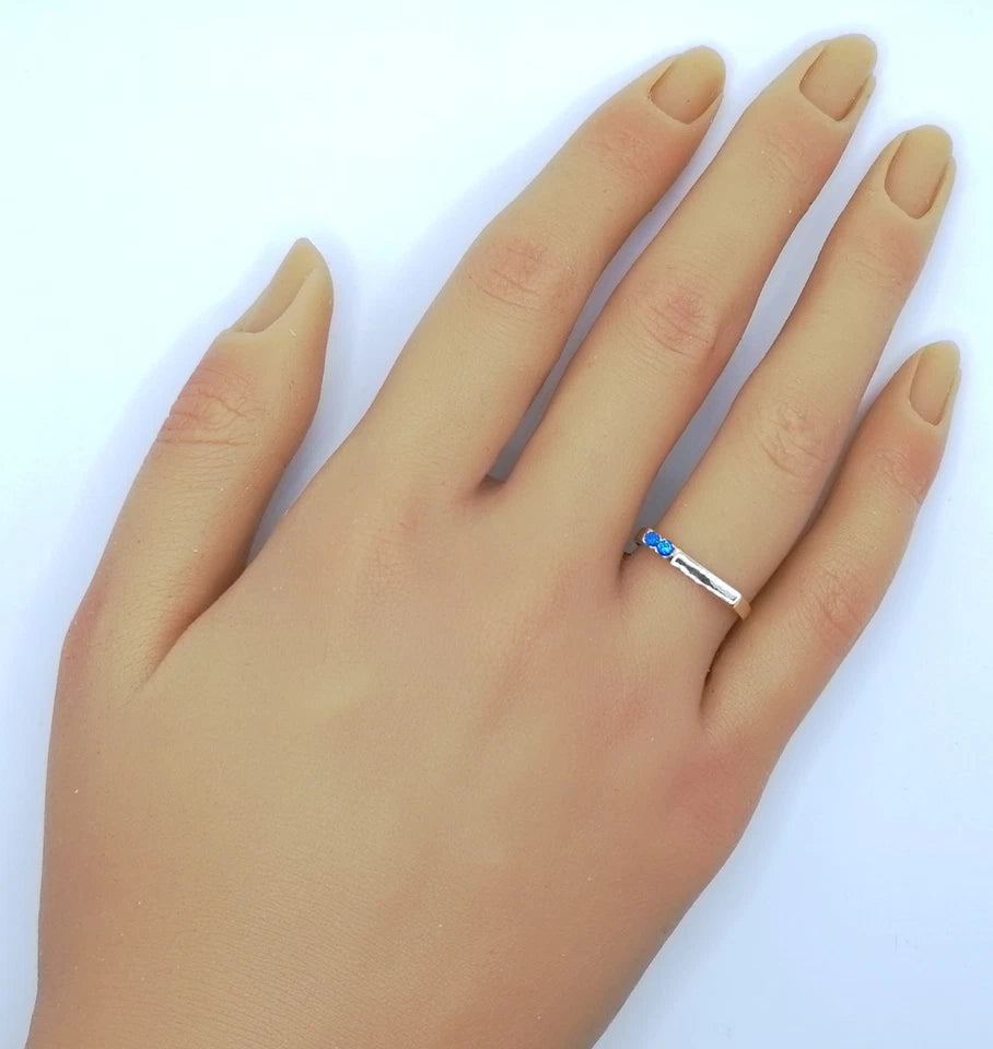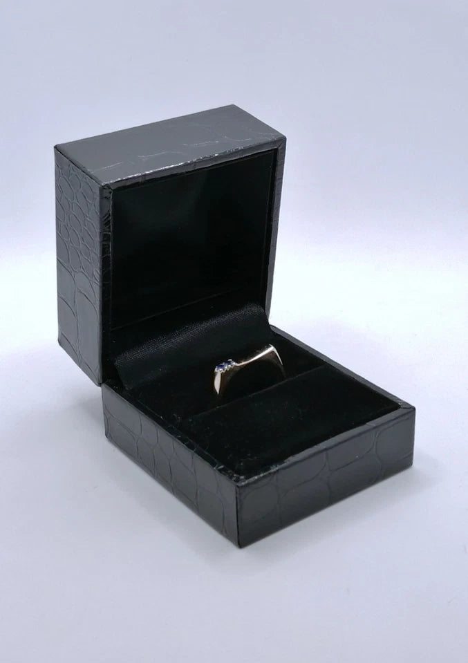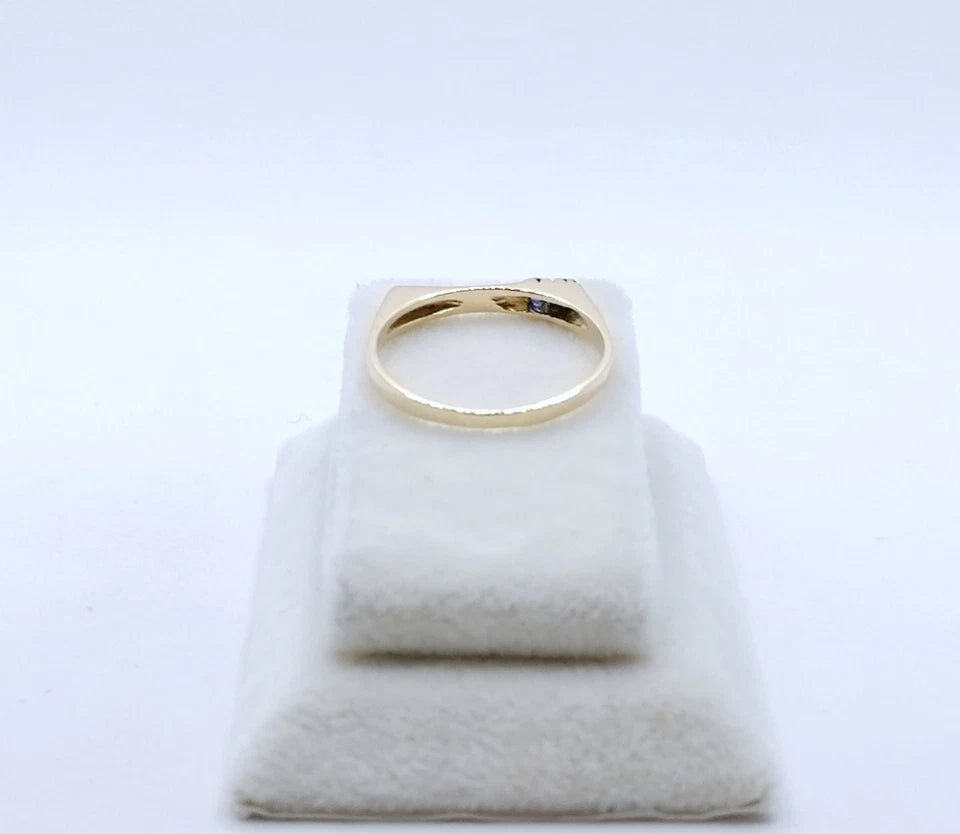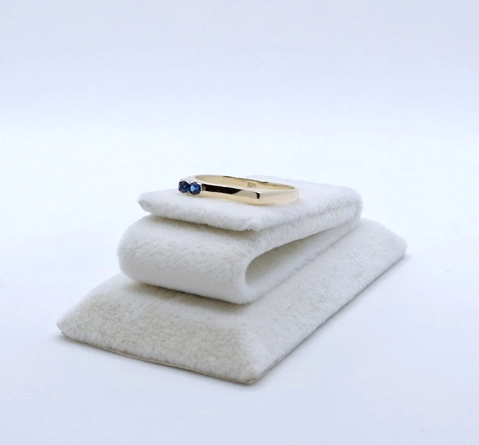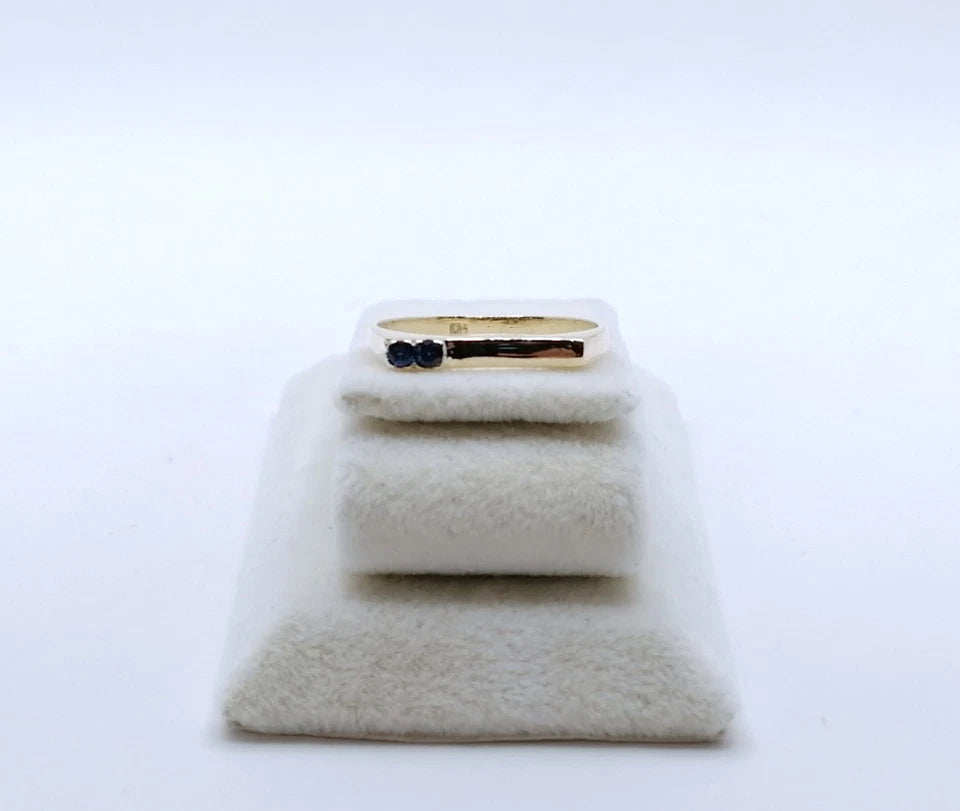 Feiner Gold Damenring mit zwei blauen Spinell Steinchen. Der Ring ist aus 585er 14 karat Gold gefertigt.