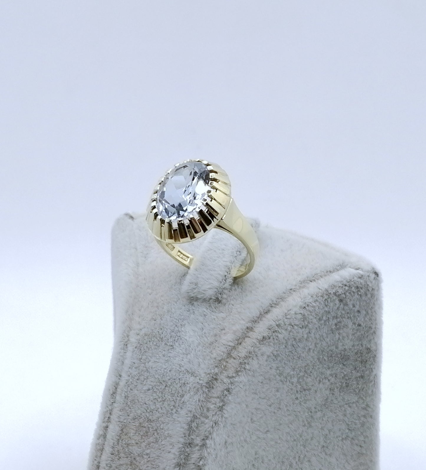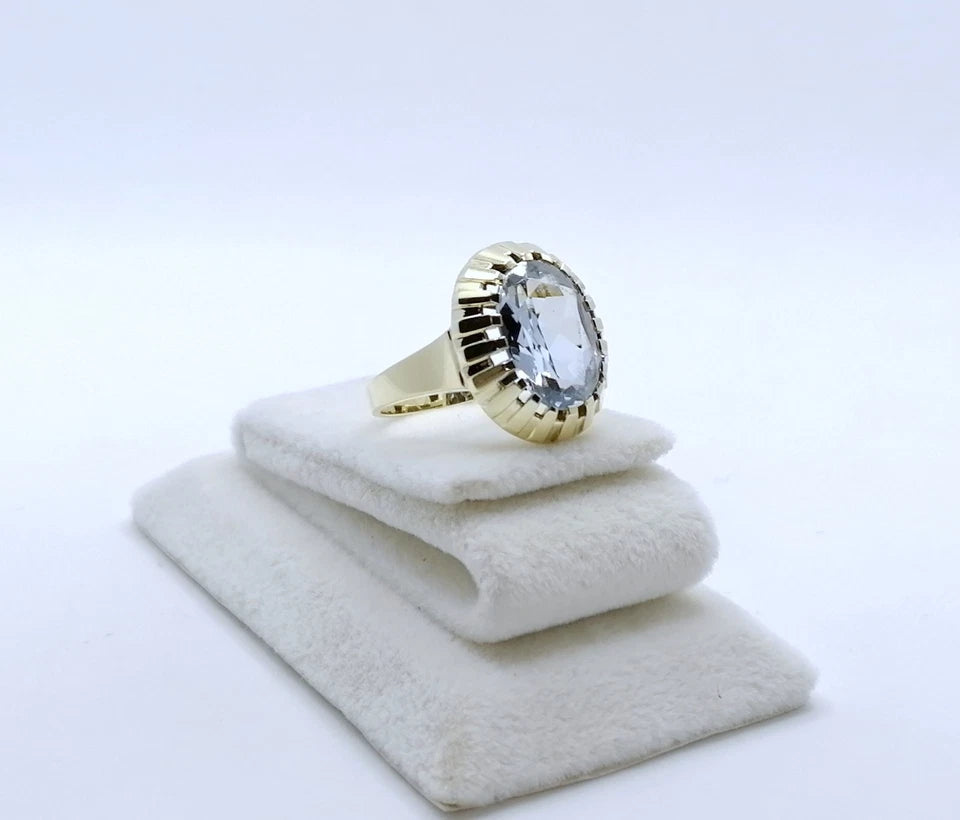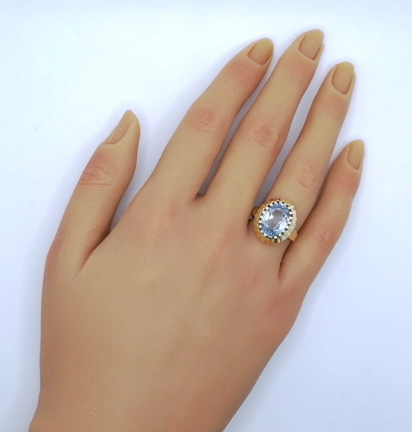 Neuwertiger Gold Damenring mit einem blauen Spinell. Der Ring ist aus 585er 14 Karat Gold gefertigt.