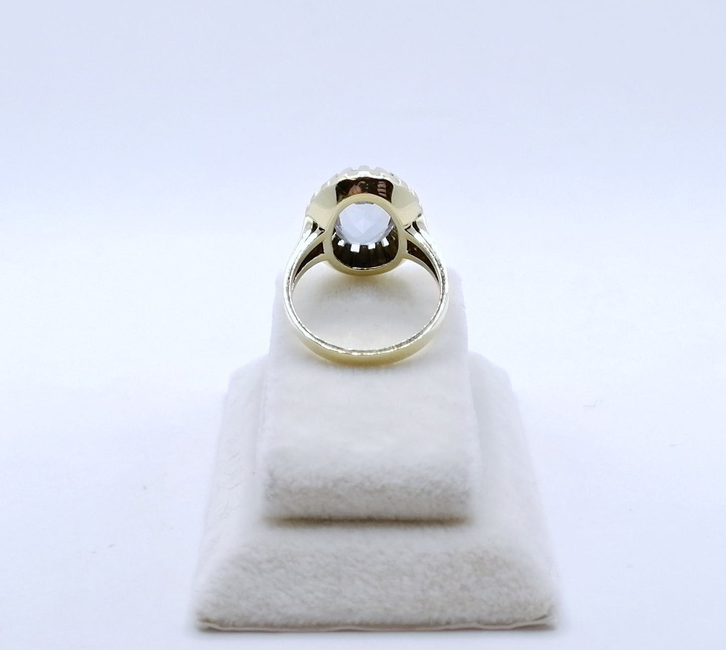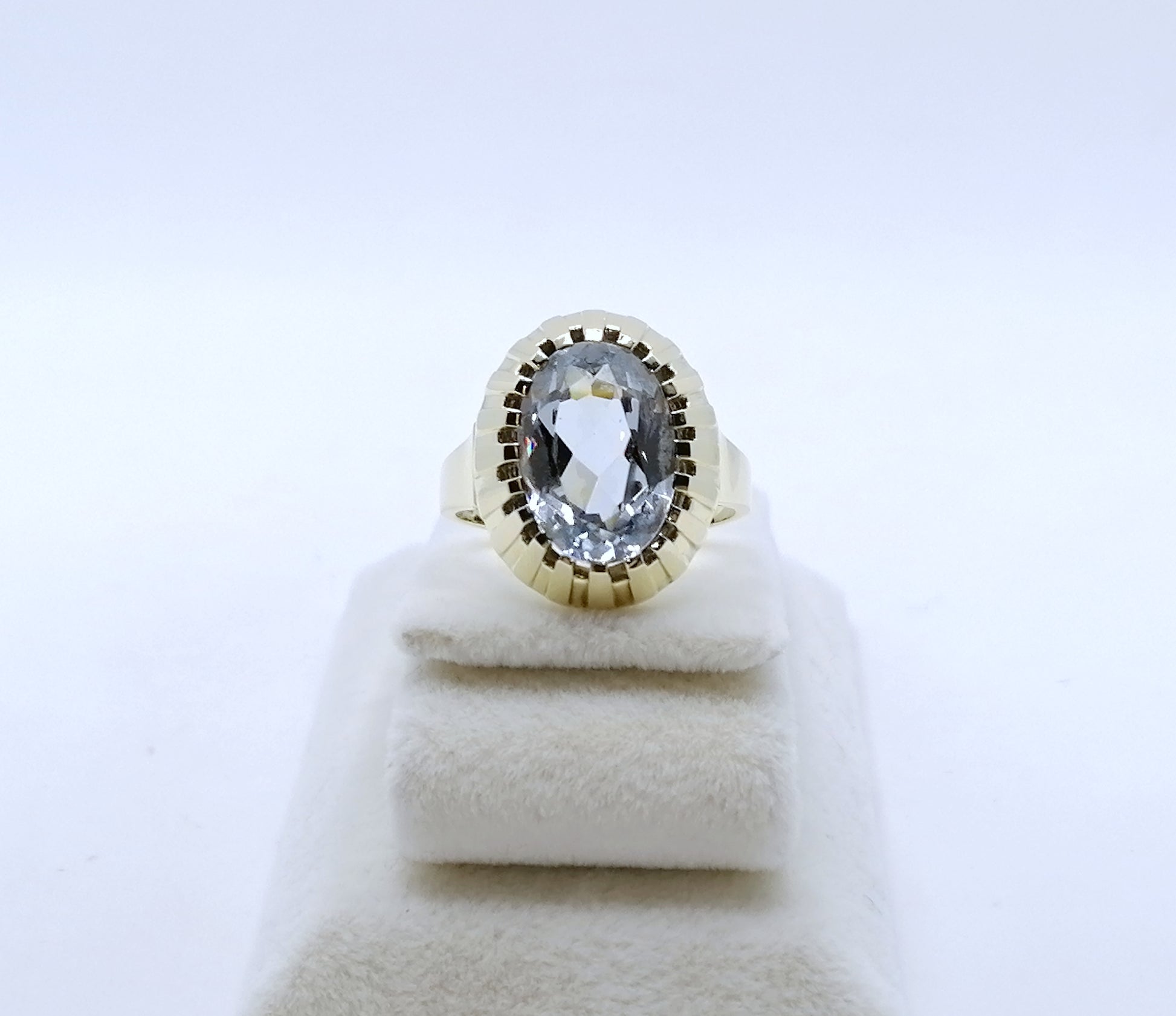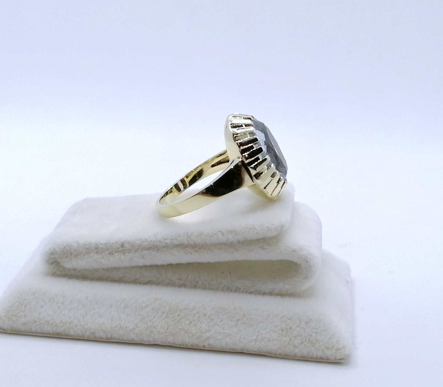 Neuwertiger Gold Damenring mit einem blauen Spinell. Der Ring ist aus 585er 14 Karat Gold gefertigt.