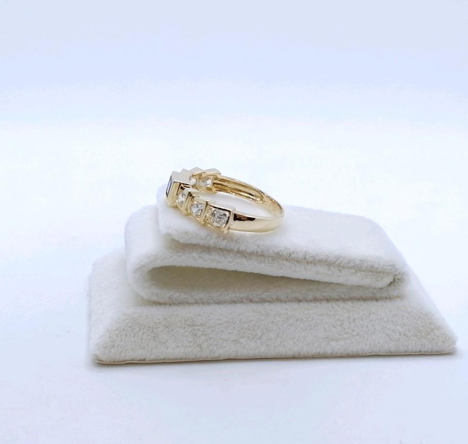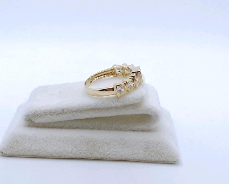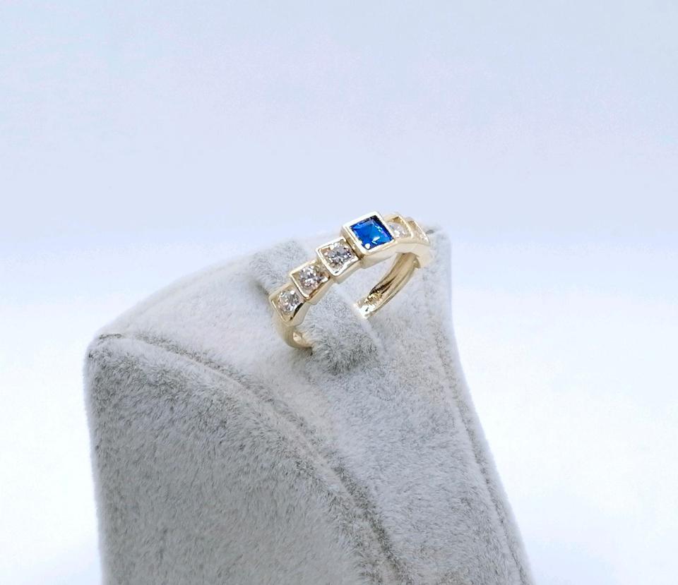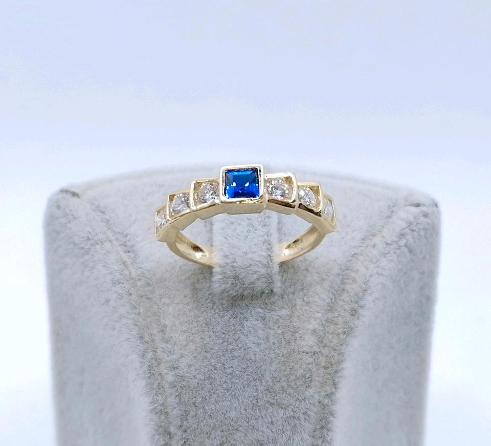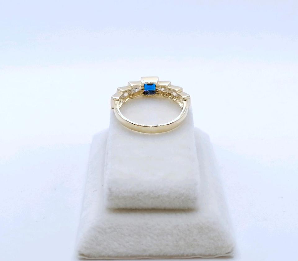 Neuwertige Gold Damenring mit einem Spinell und funkelnden Zirkonia. Der Ring ist aus 585er 14 Karat Gelbgold gefertigt.