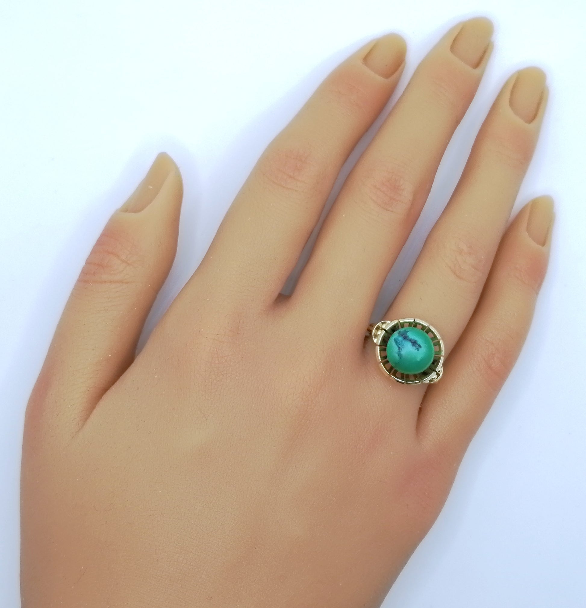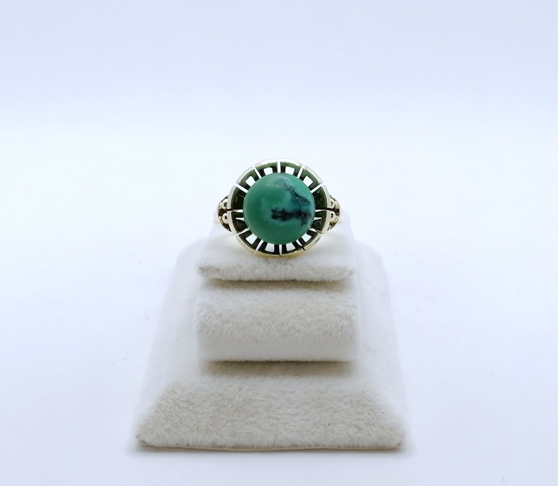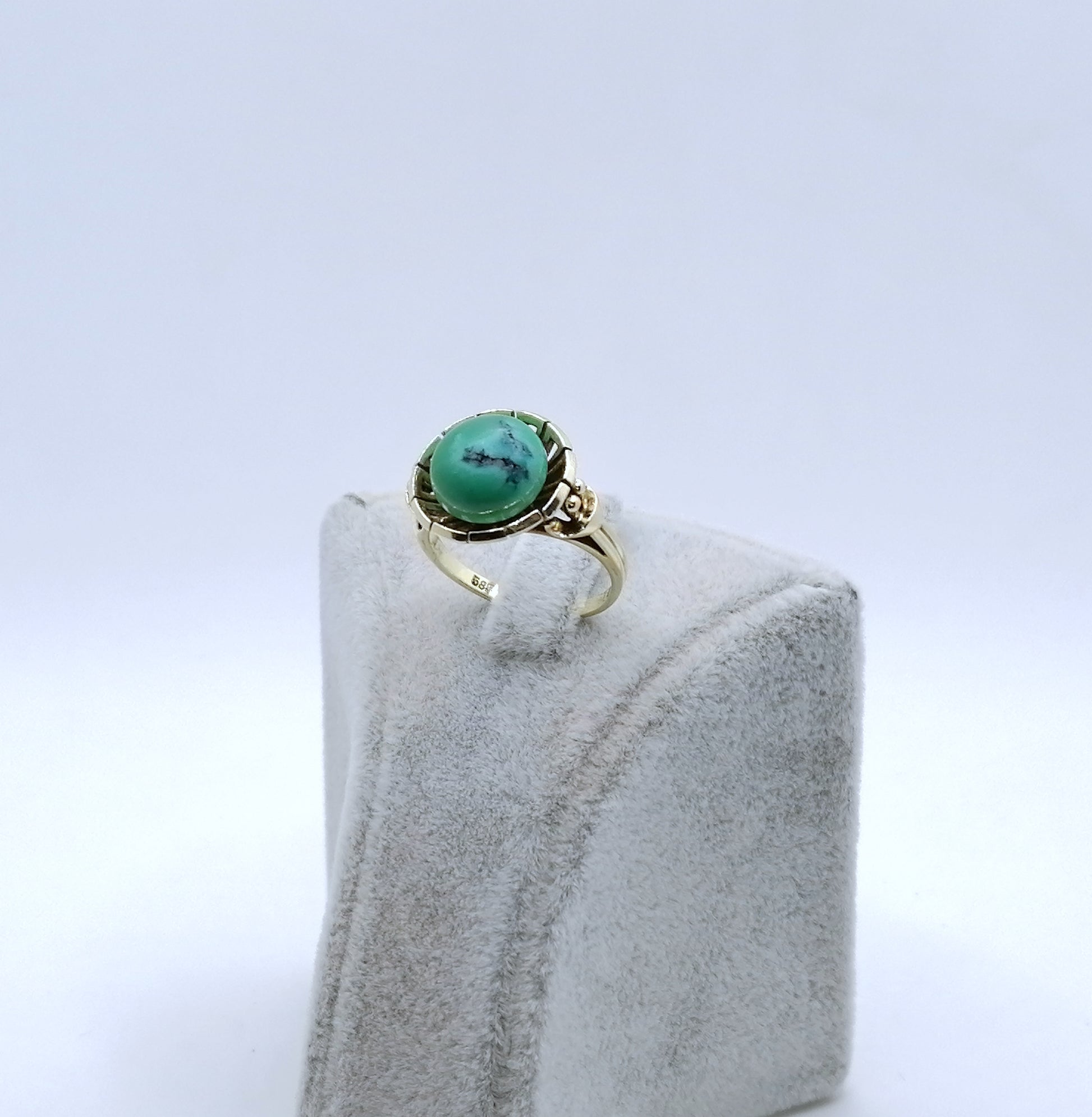 Traumhafter Gold Damenring mit einem Türkisstein. Der Ring ist aus 585er 14 Karat Gold gefertigt.
