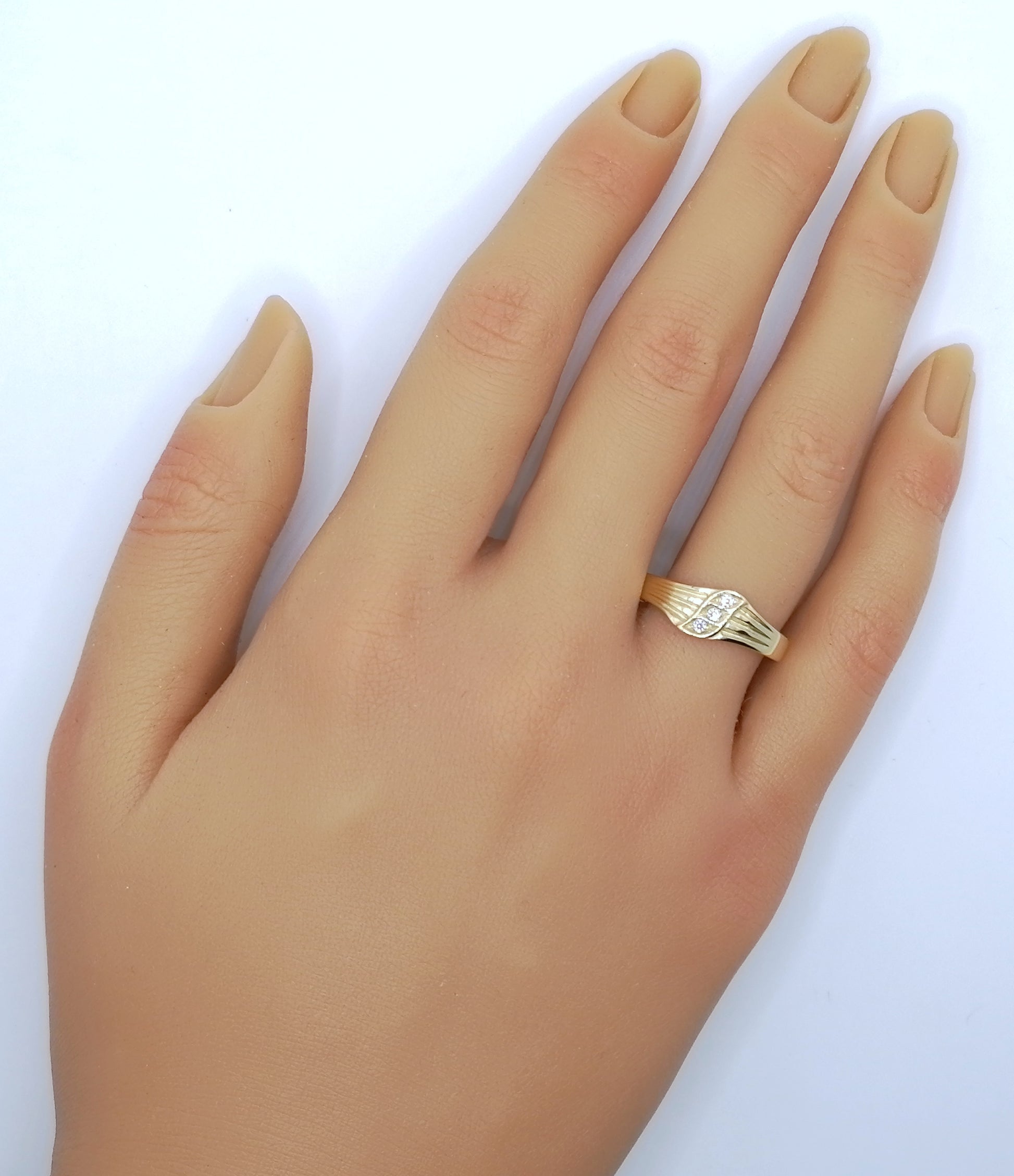 Neuwertiger Gold Damenring mit funkelnden Zirkonia. Der Ring ist aus 585er 14 Karat Gelbgold gefertigt.