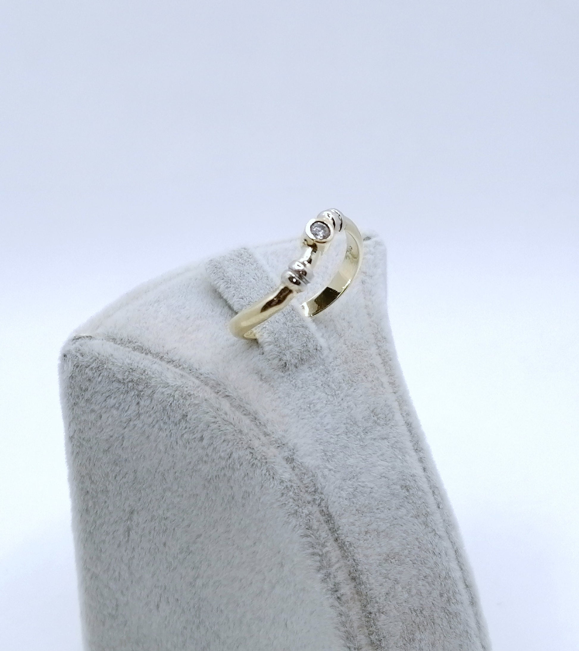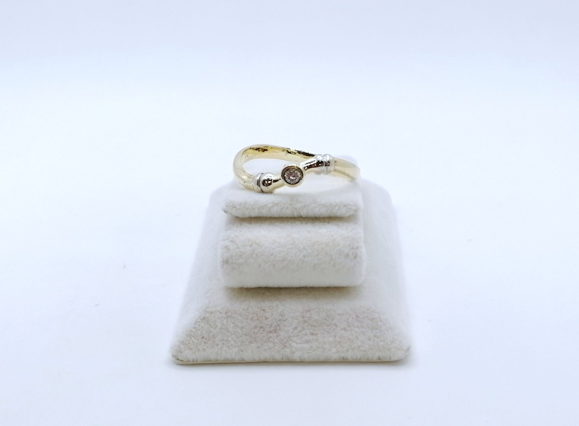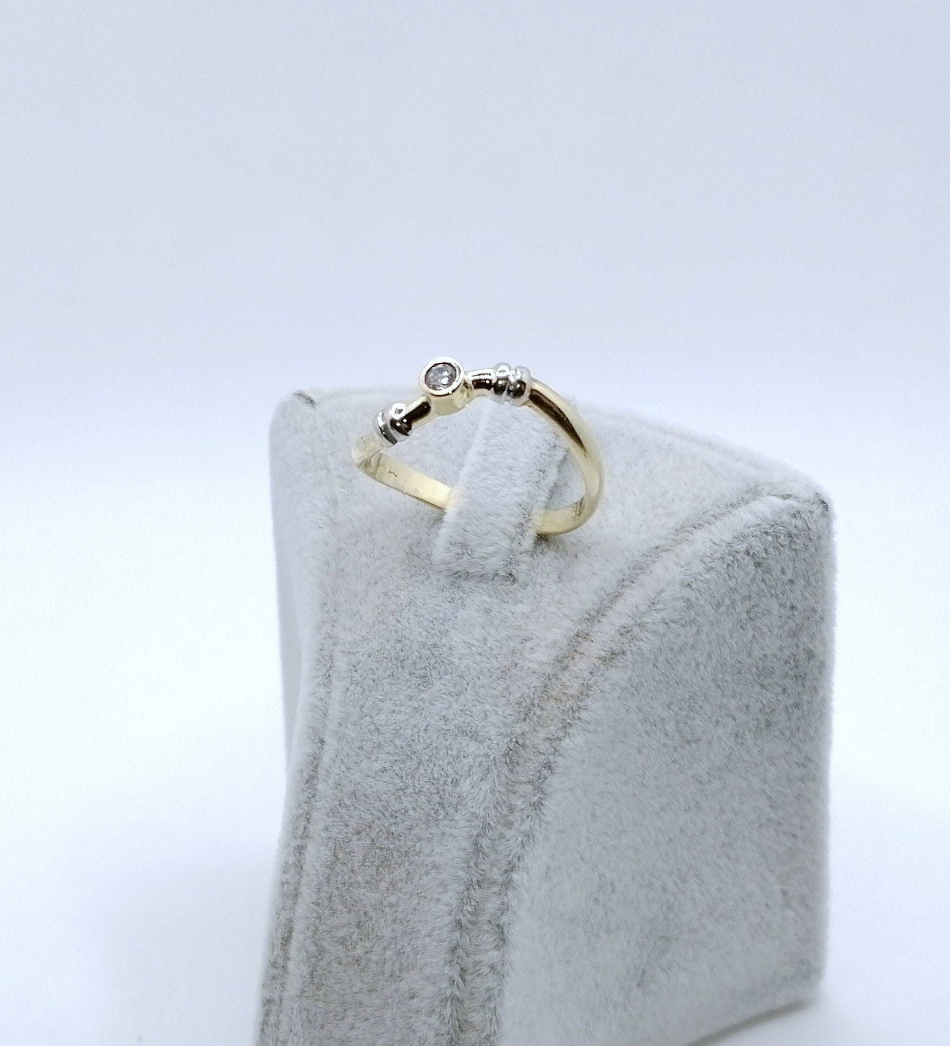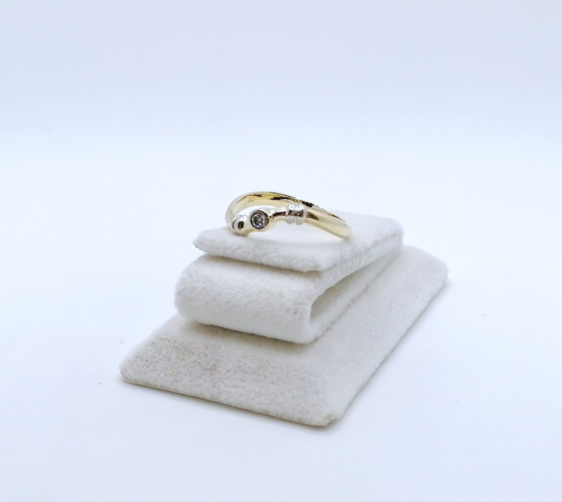 Geschwungener Gold Damenring mit funkelndem Zirkonia. Der Ring ist aus 585er 14 karat Gold gefertigt.