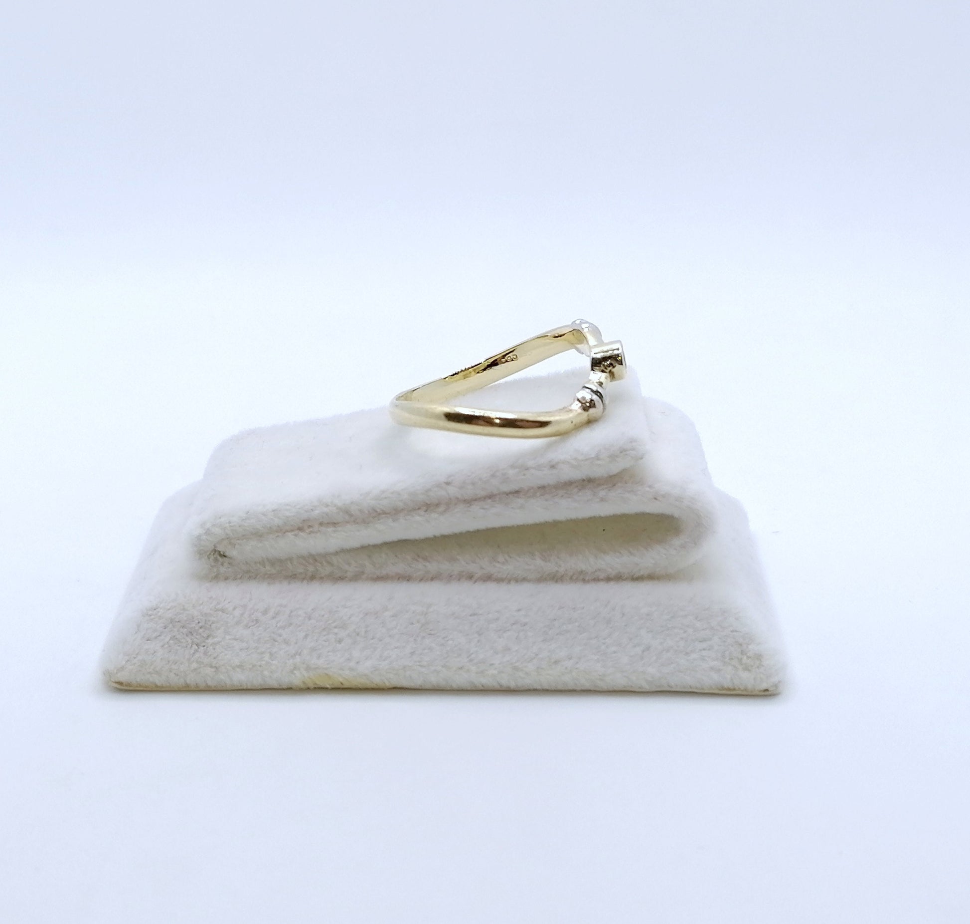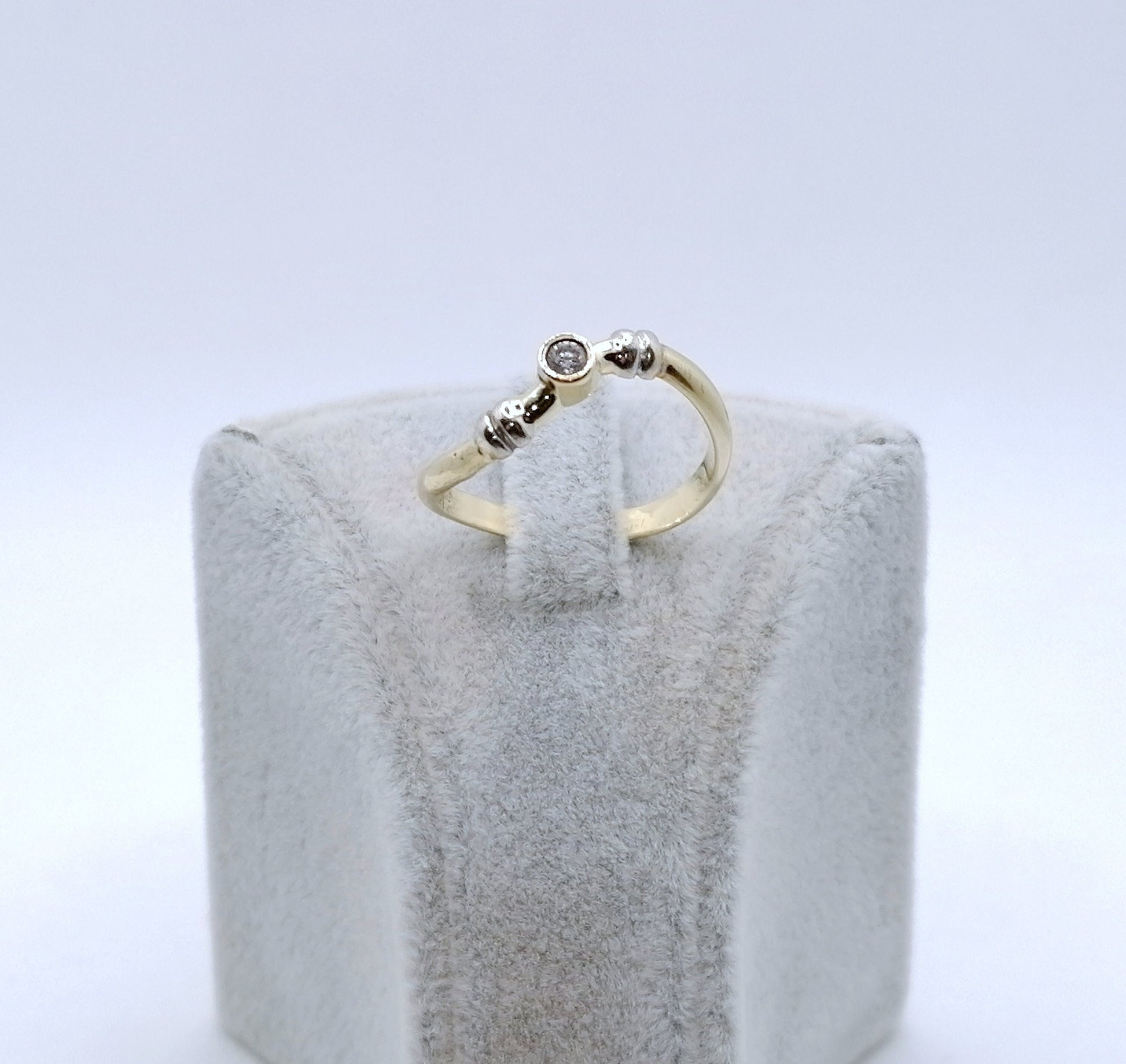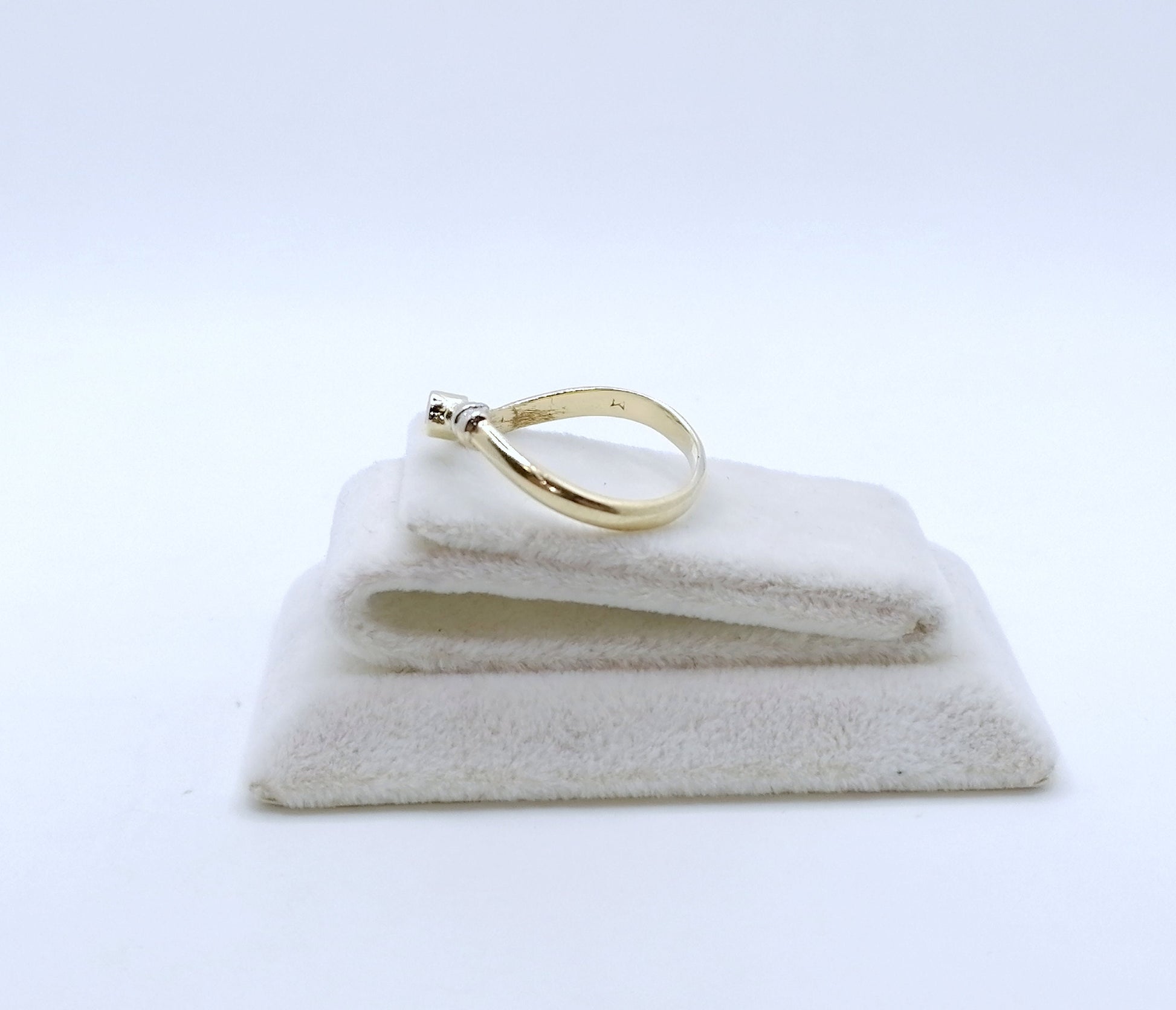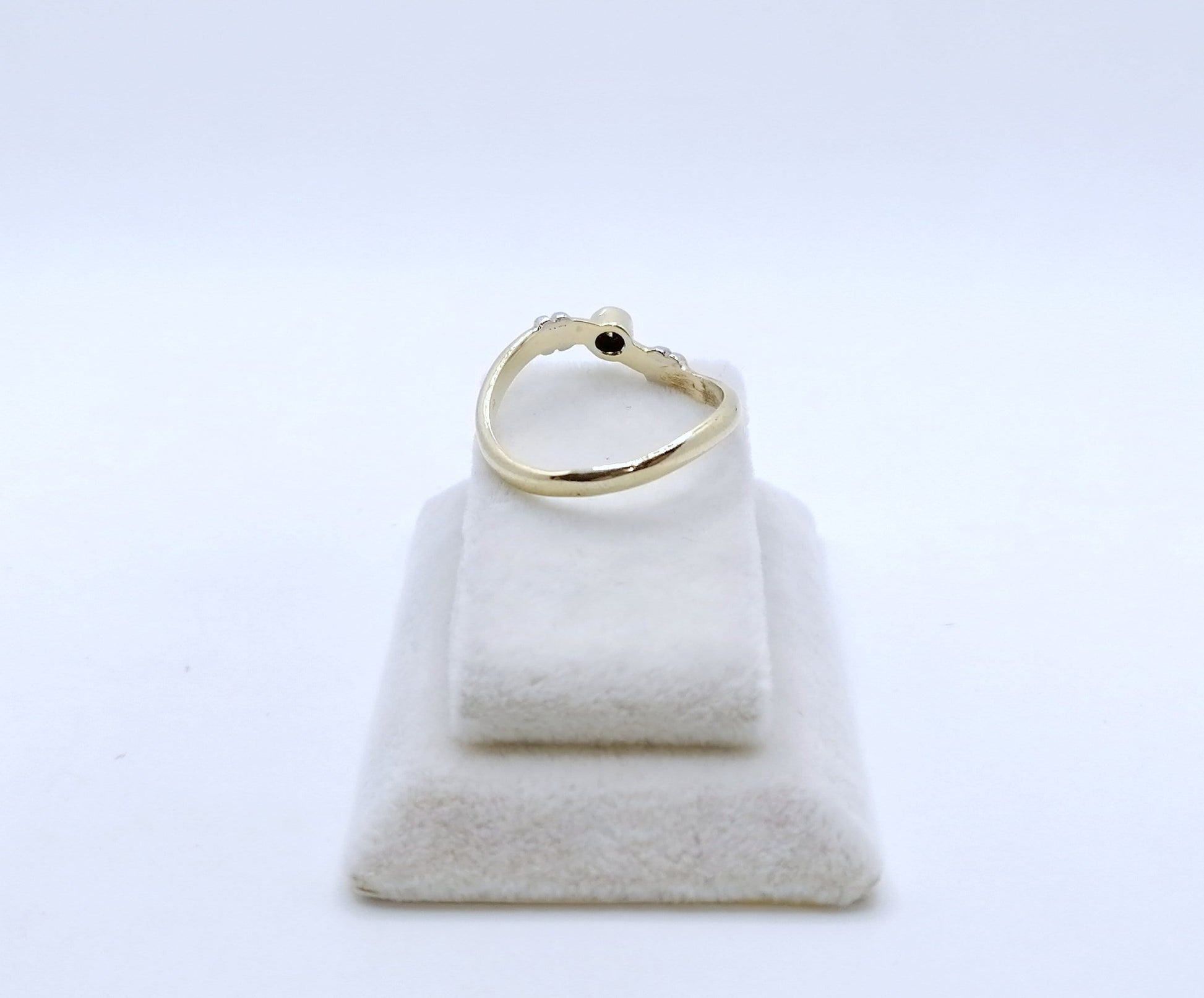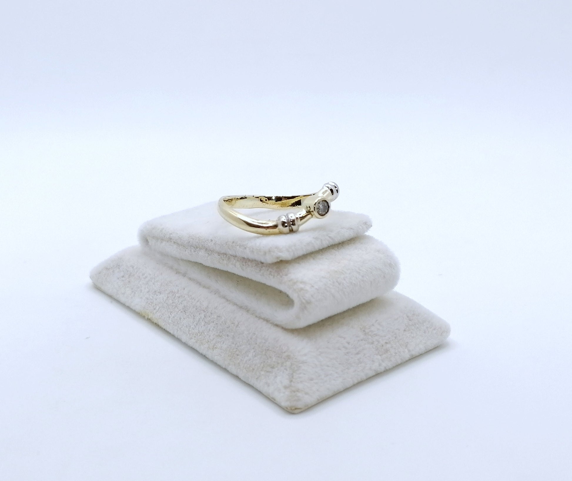 Geschwungener Gold Damenring mit funkelndem Zirkonia. Der Ring ist aus 585er 14 karat Gold gefertigt.