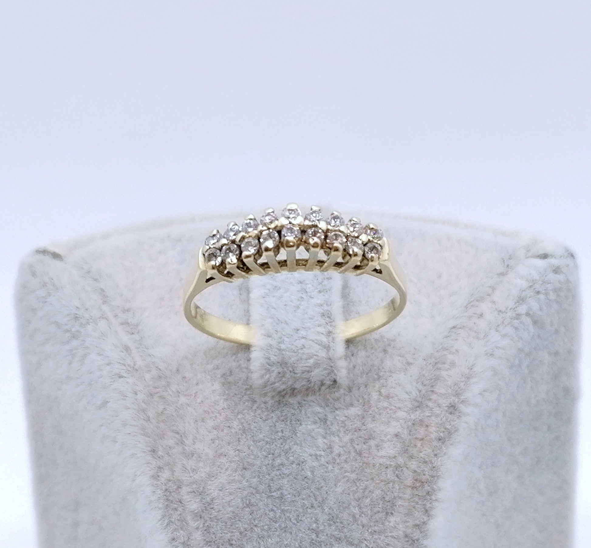 Vintage Gold Damenring mit funkelnden Zirkonia. Der Ring ist aus 585er 14 karat Gold gefertigt.