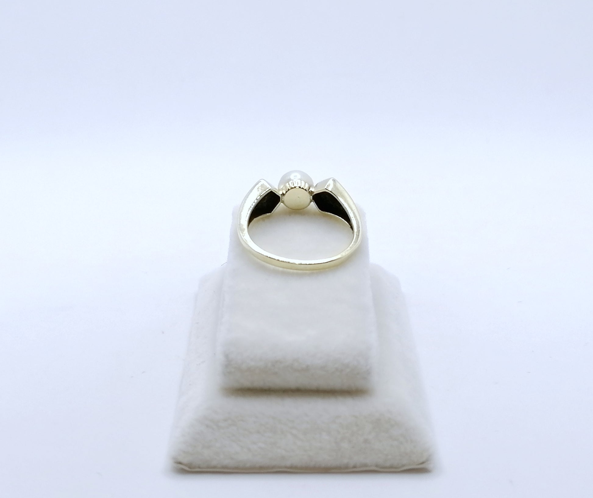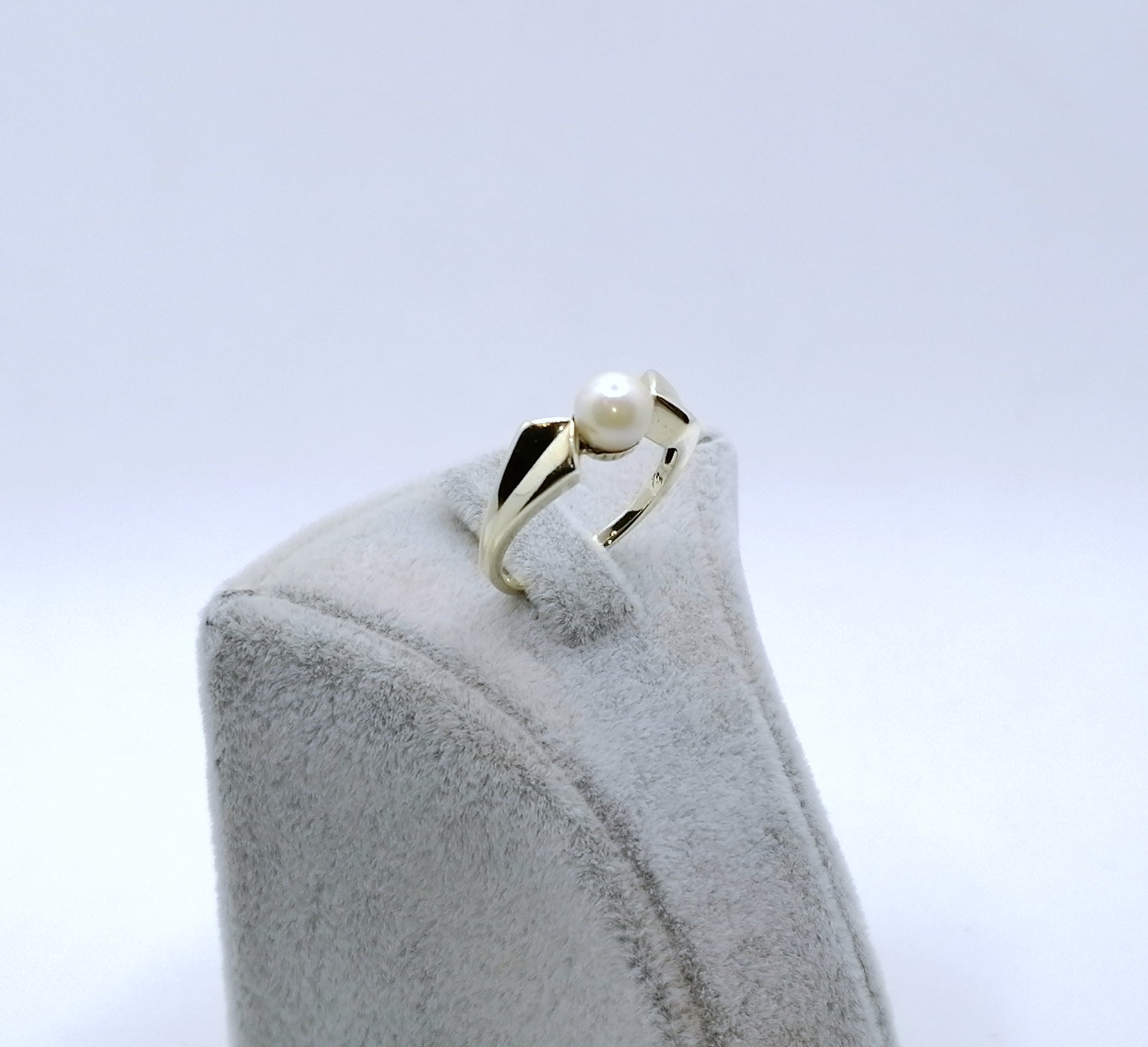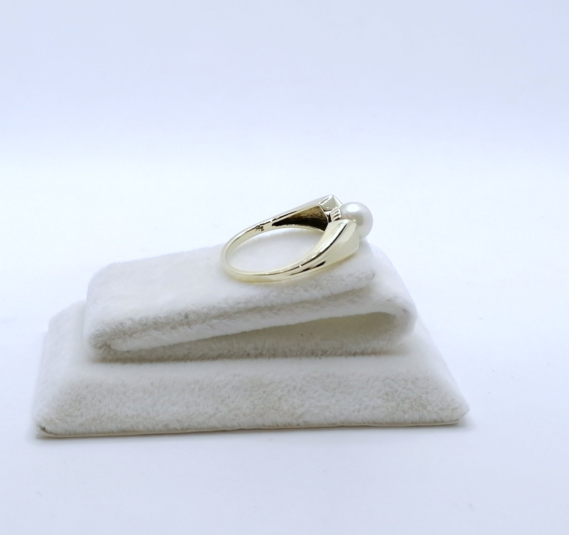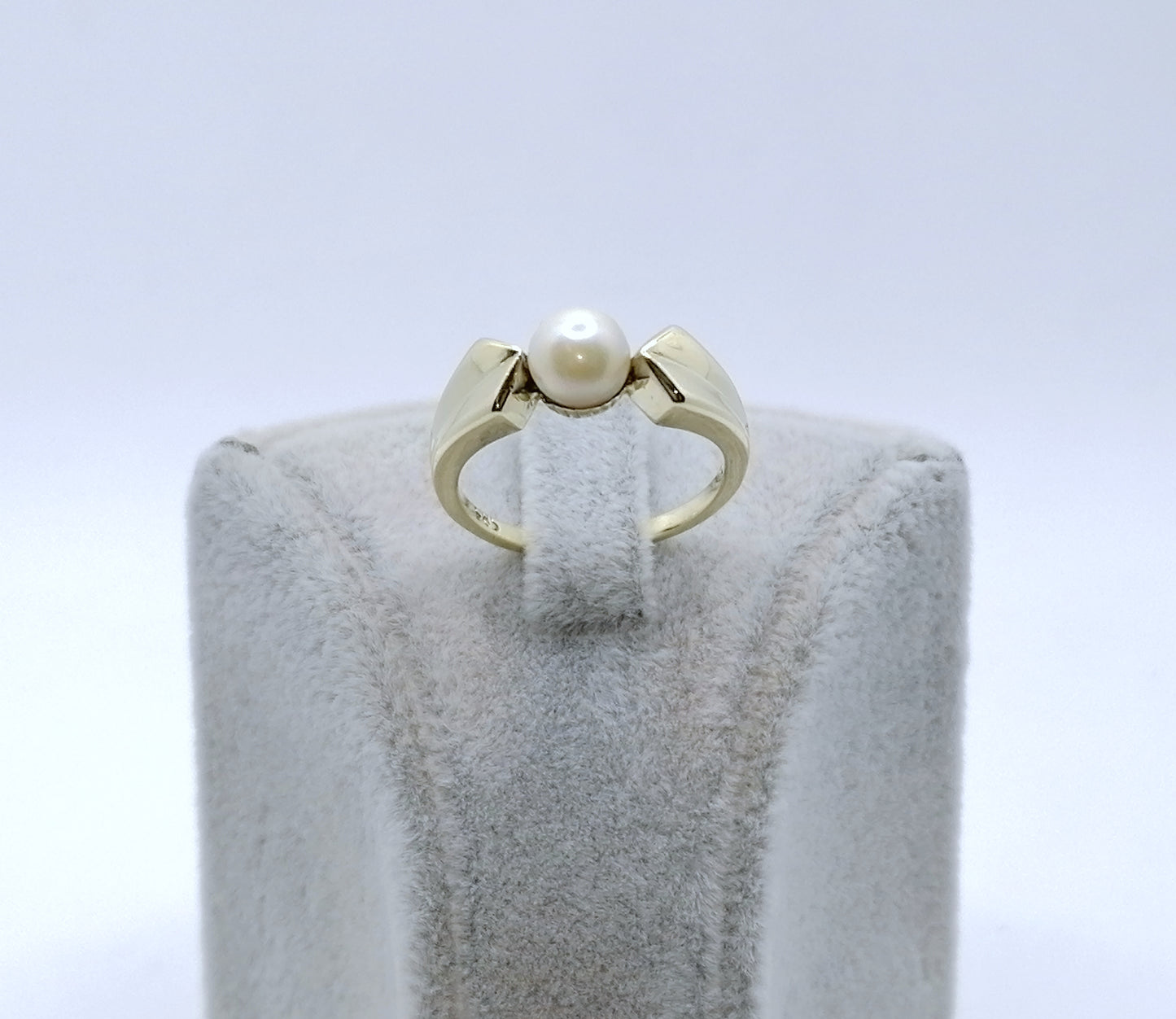 Neuwertiger Gelbgold Damenring mit einer entzückenden Perle. Das Schmuckstück ist aus 585er 14 Karat Gold gefertigt.