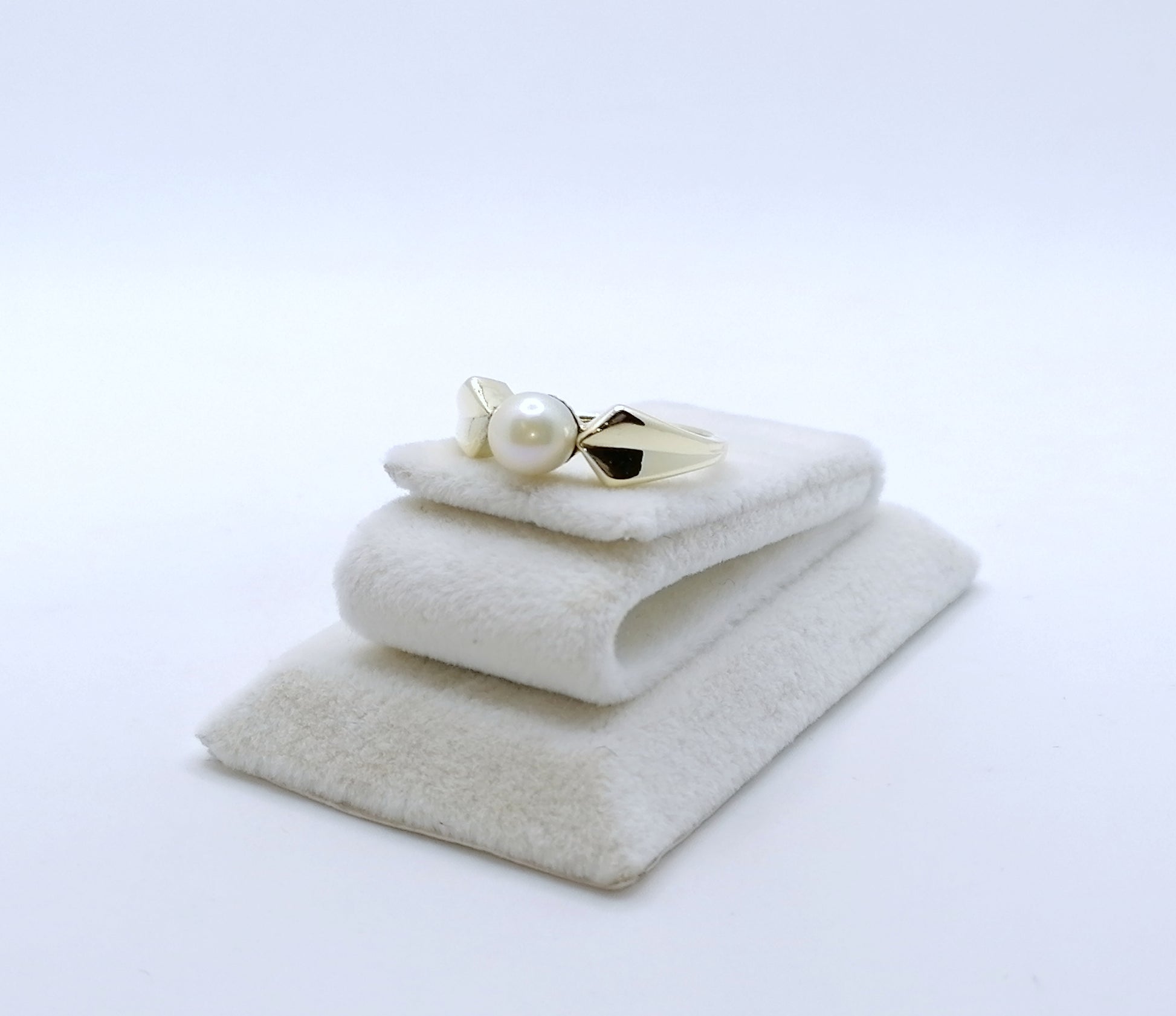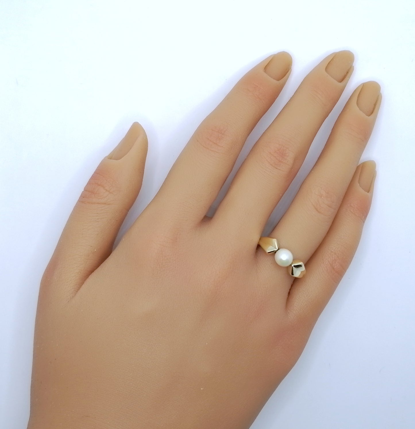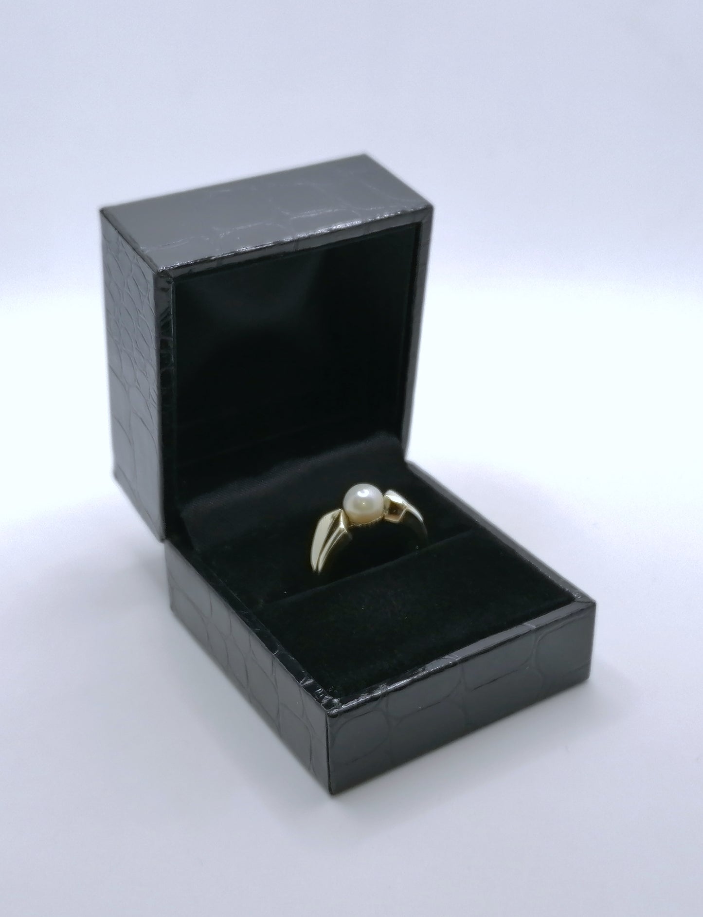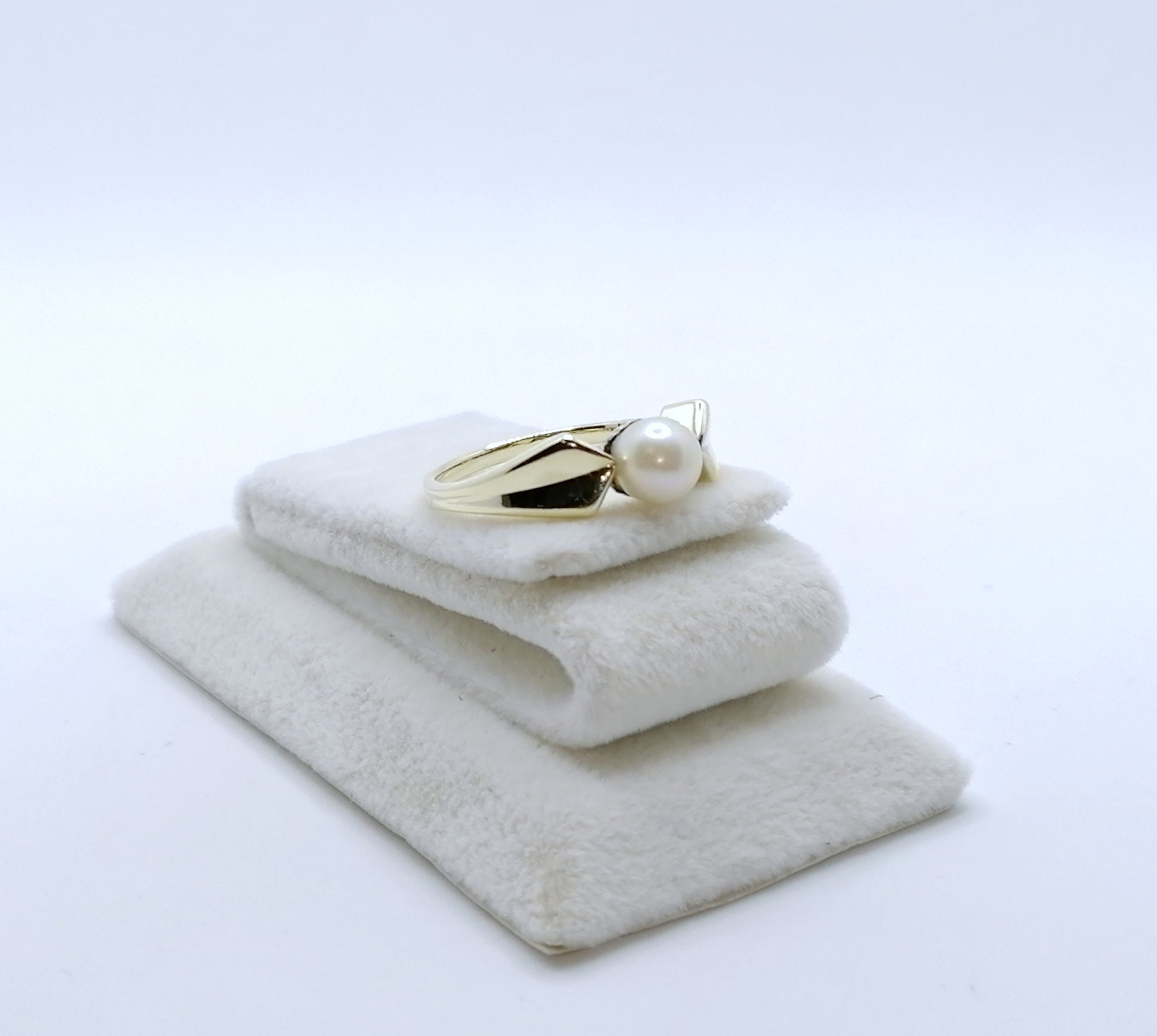 Neuwertiger Gelbgold Damenring mit einer entzückenden Perle. Das Schmuckstück ist aus 585er 14 Karat Gold gefertigt.