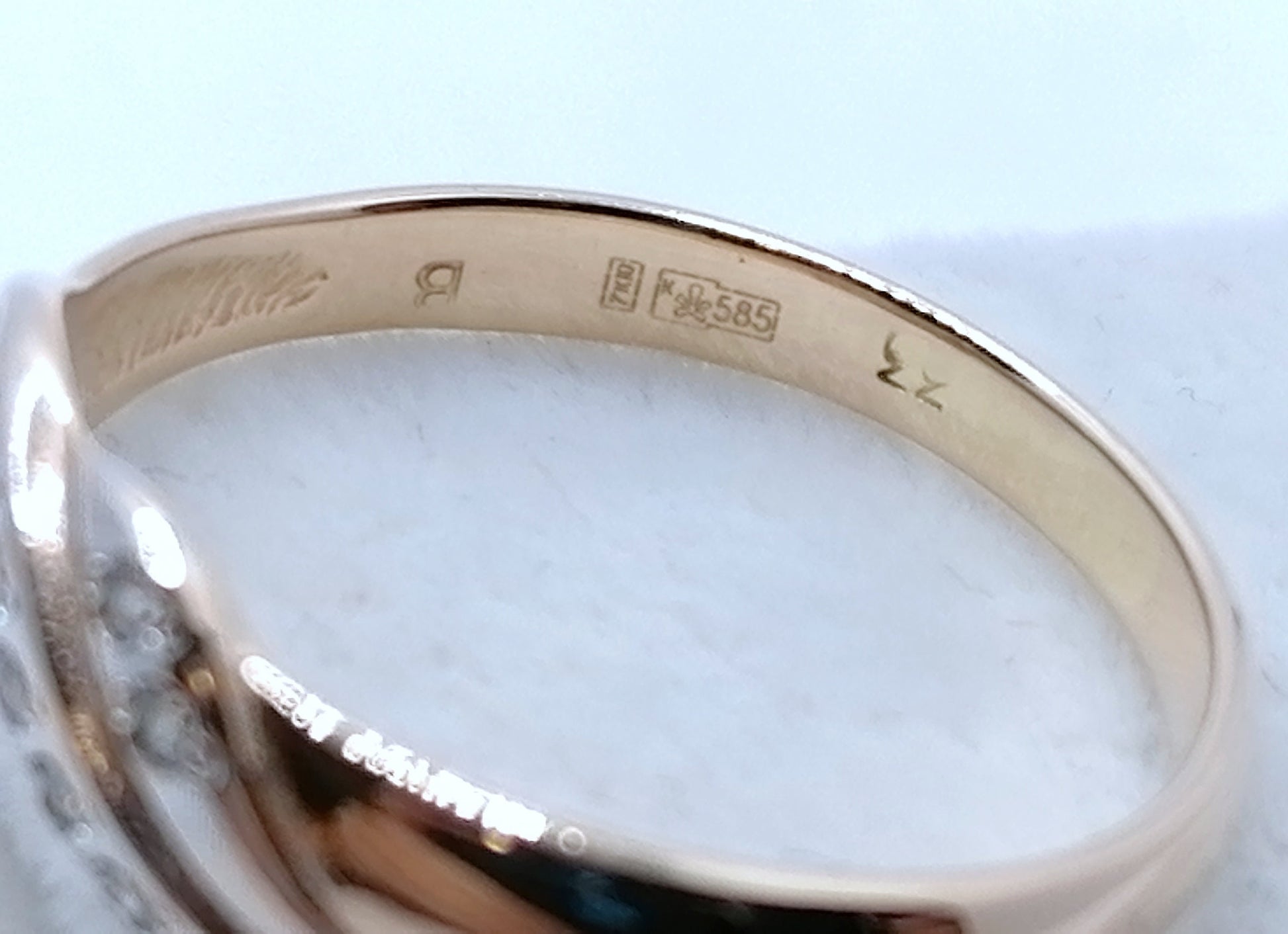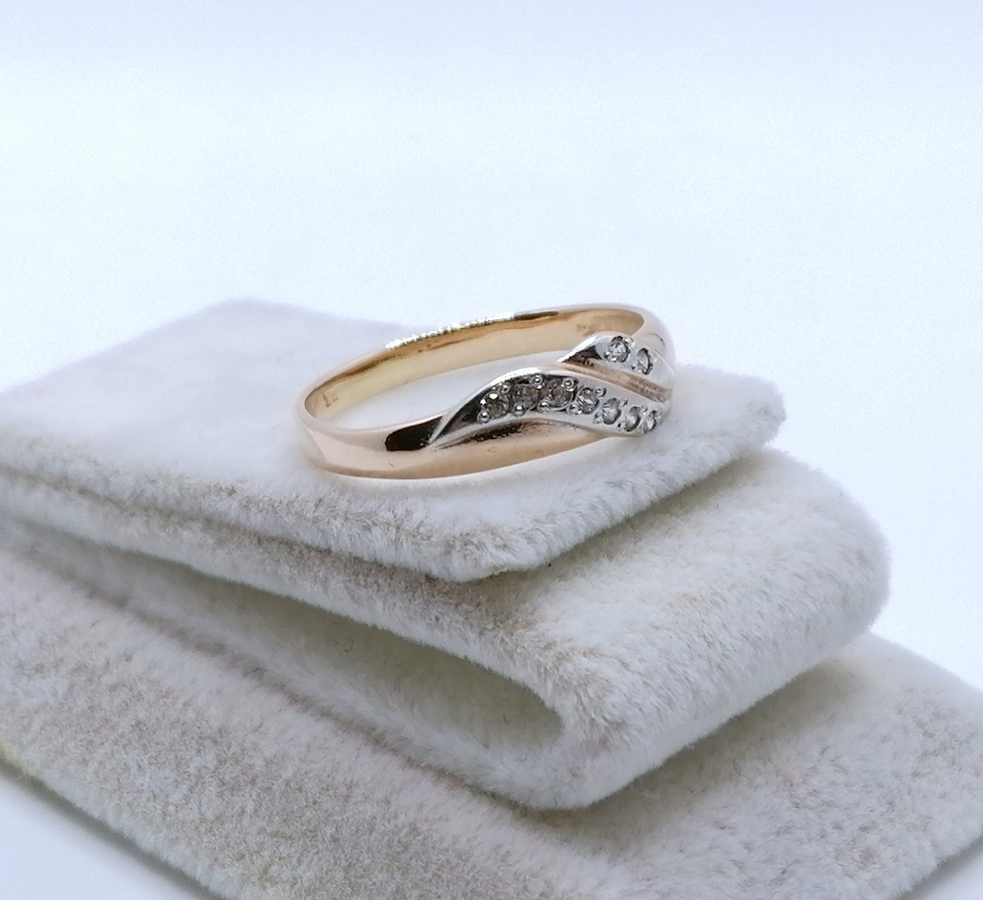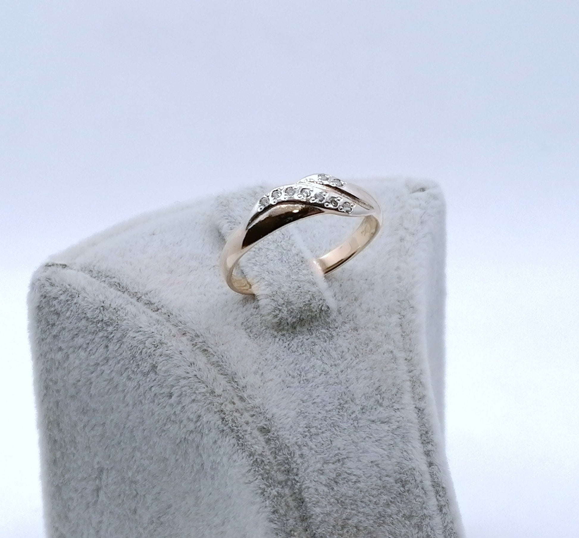 Neuwertiger Rotgold Damenring mit funkelnden Zirkonia. Der Ring ist aus 585er 14 karat Gold gefertigt.