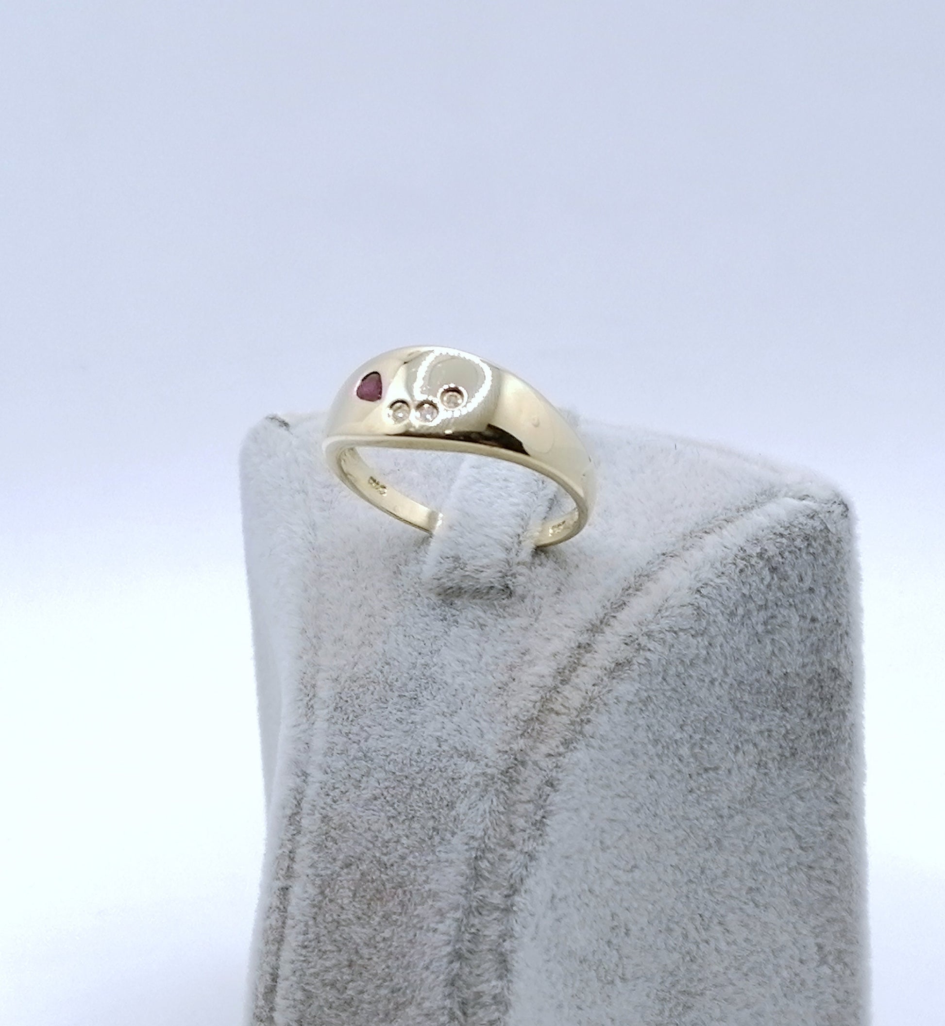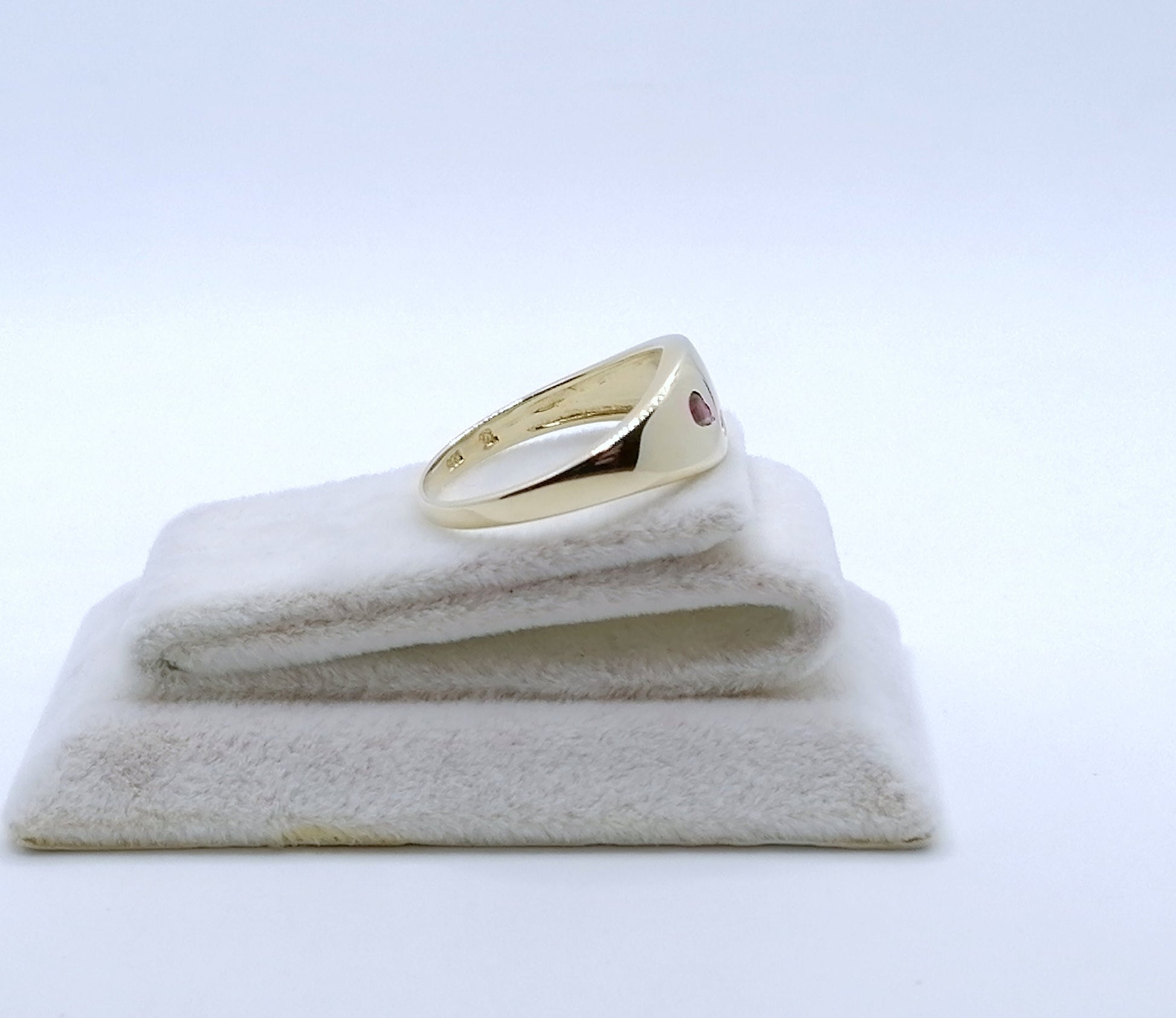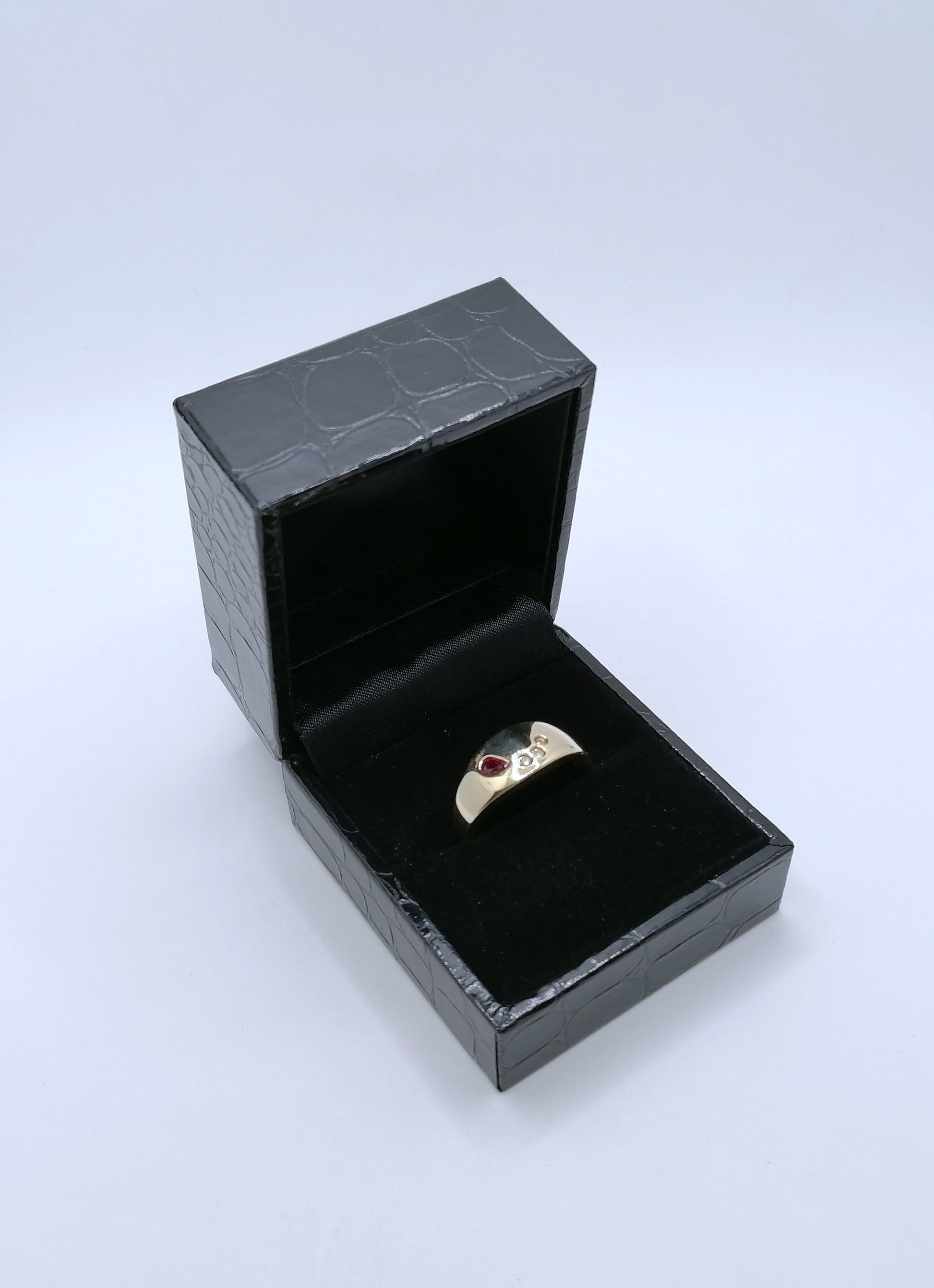 Gold Damenring mit einem Rubin und funkelnden Diamantsplitter. Der Ring ist aus 585er 14 karat Gold.