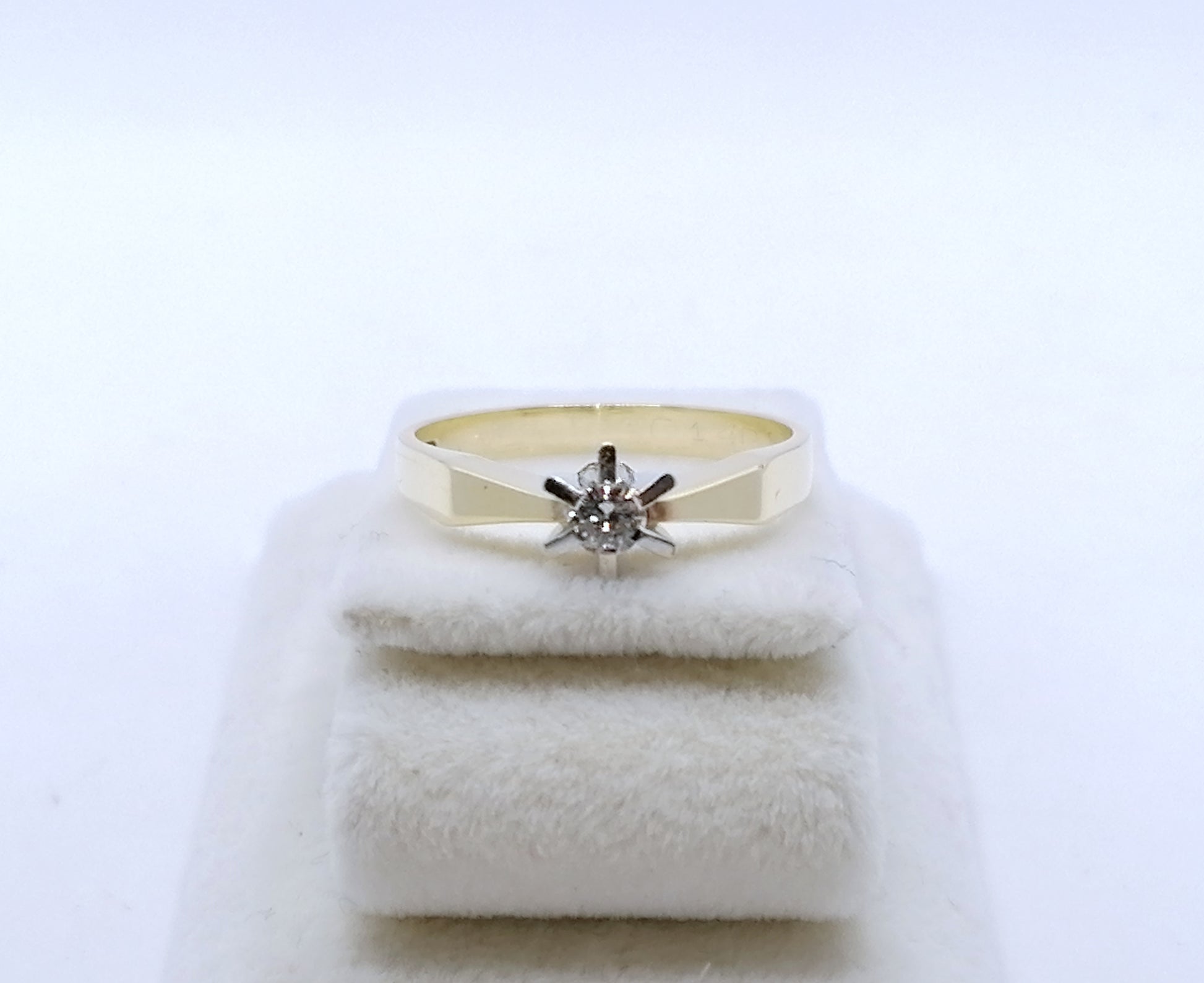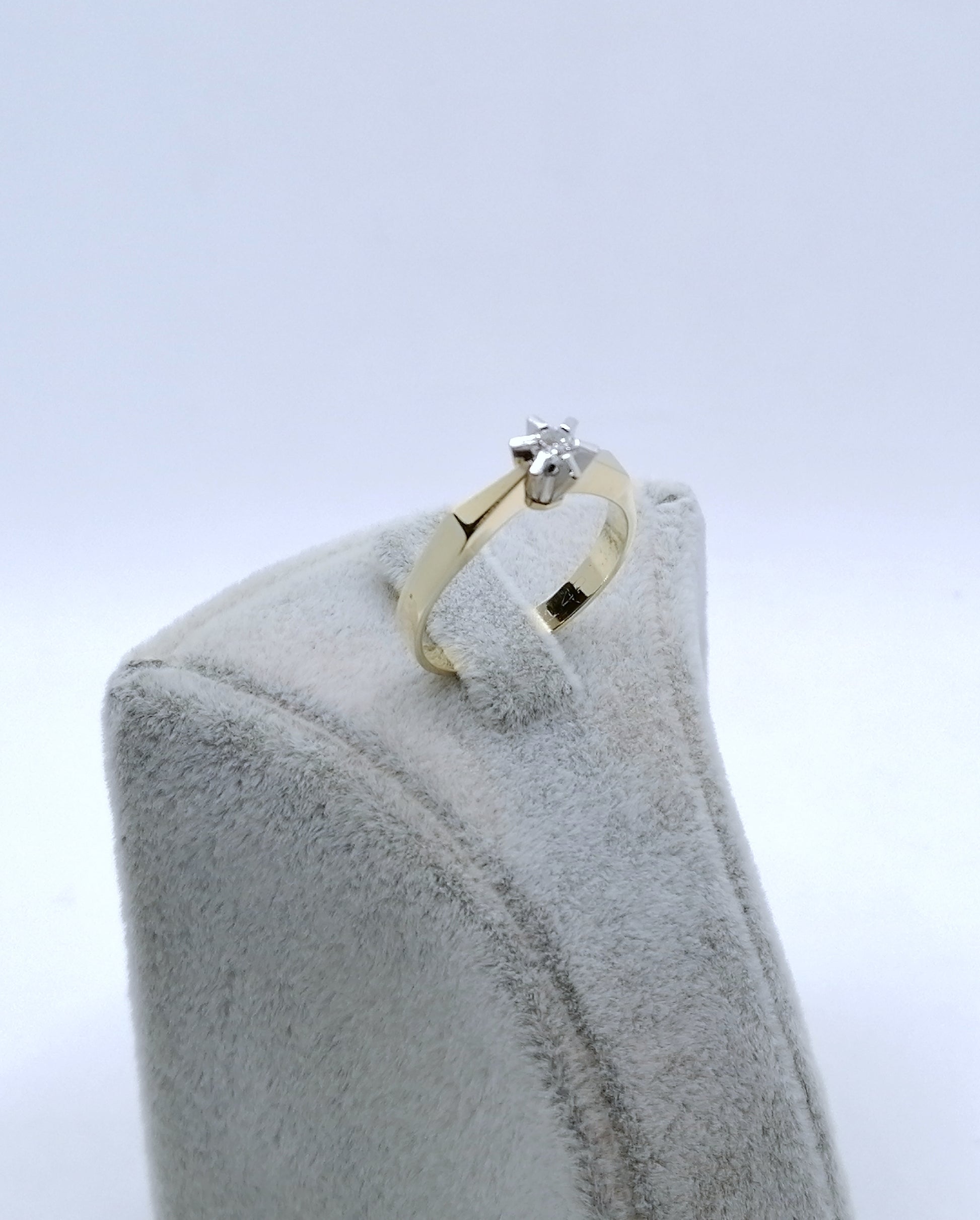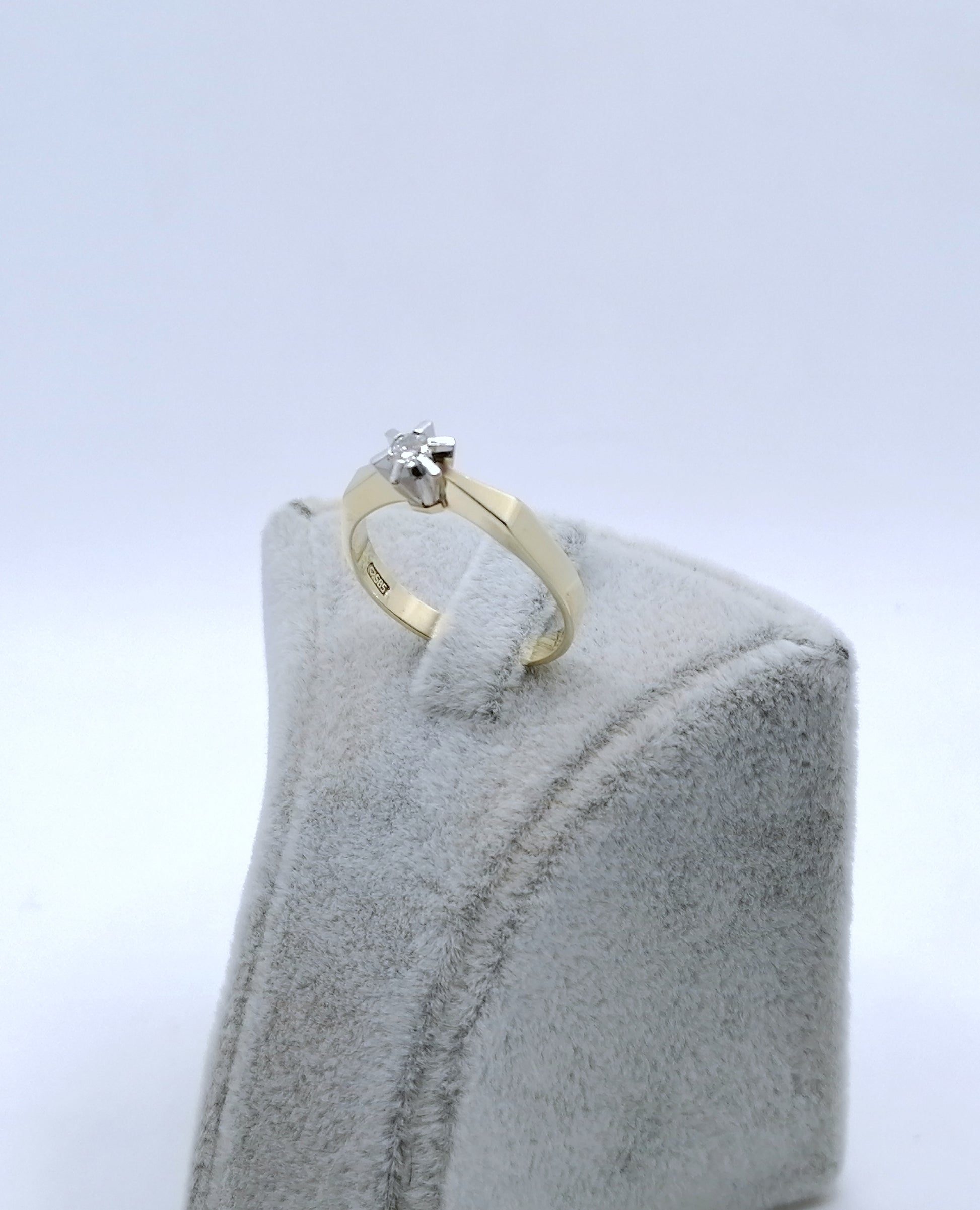 Neuwertiger Gold Solitärring mit einem 0,1ct Brillant. Der Ring ist aus 585er 14 karat Gold gefertigt.