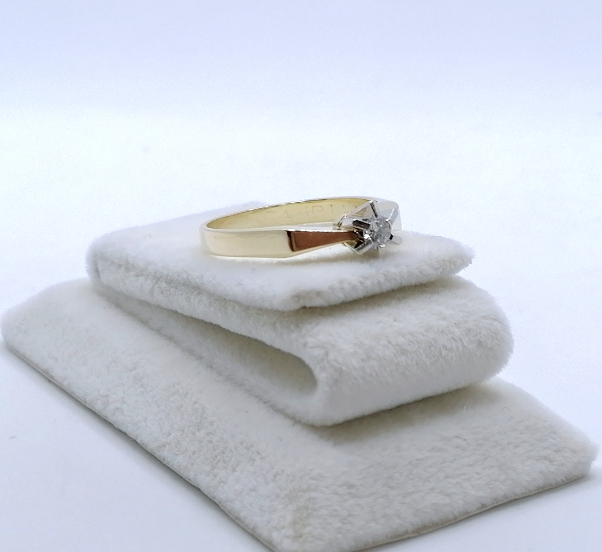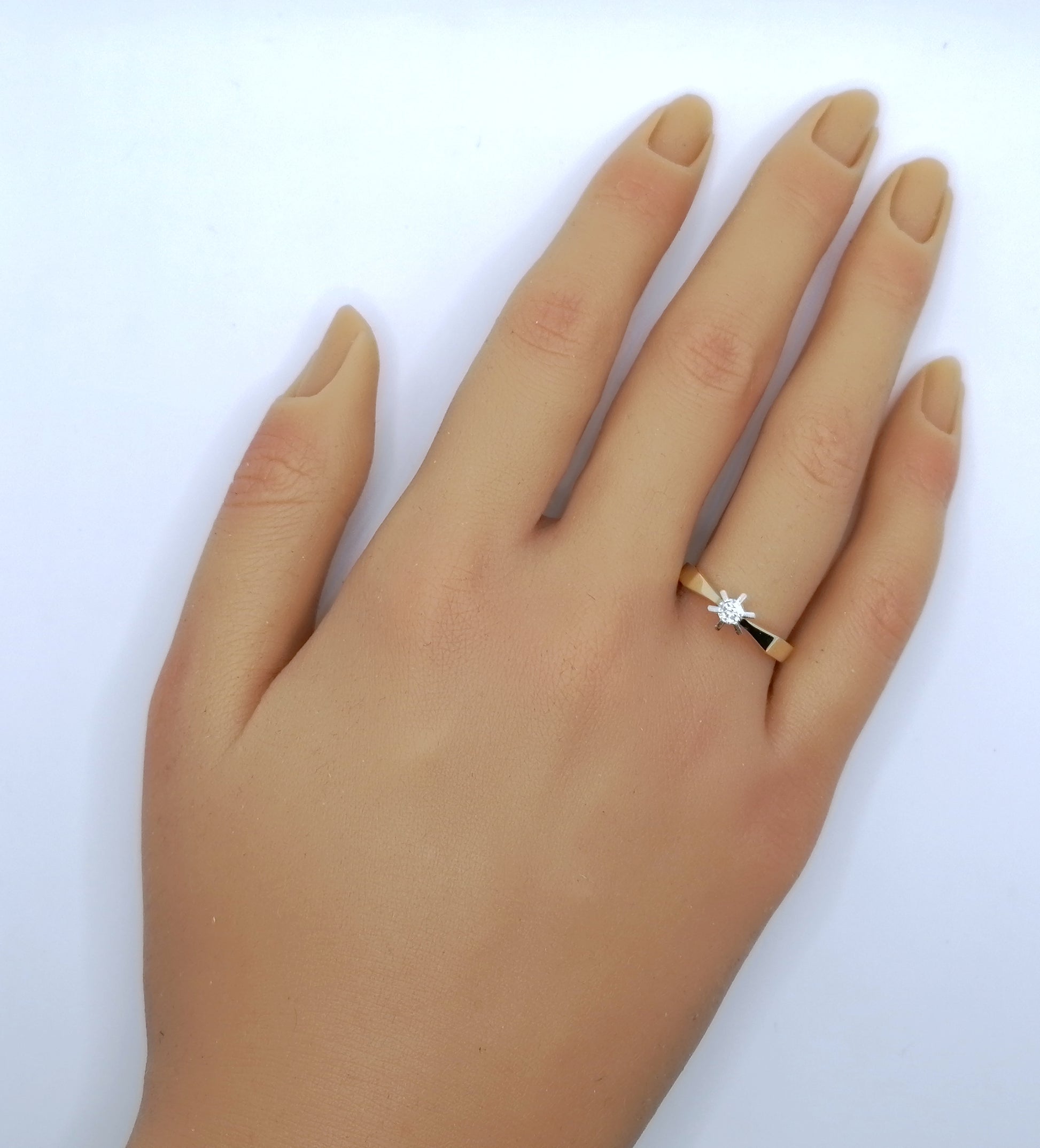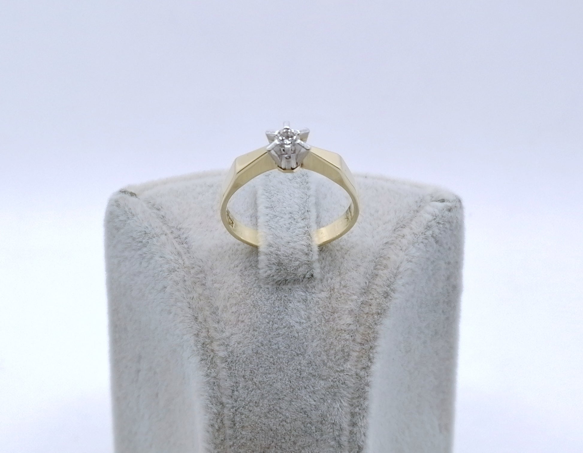 Neuwertiger Gold Solitärring mit einem 0,1ct Brillant. Der Ring ist aus 585er 14 karat Gold gefertigt.