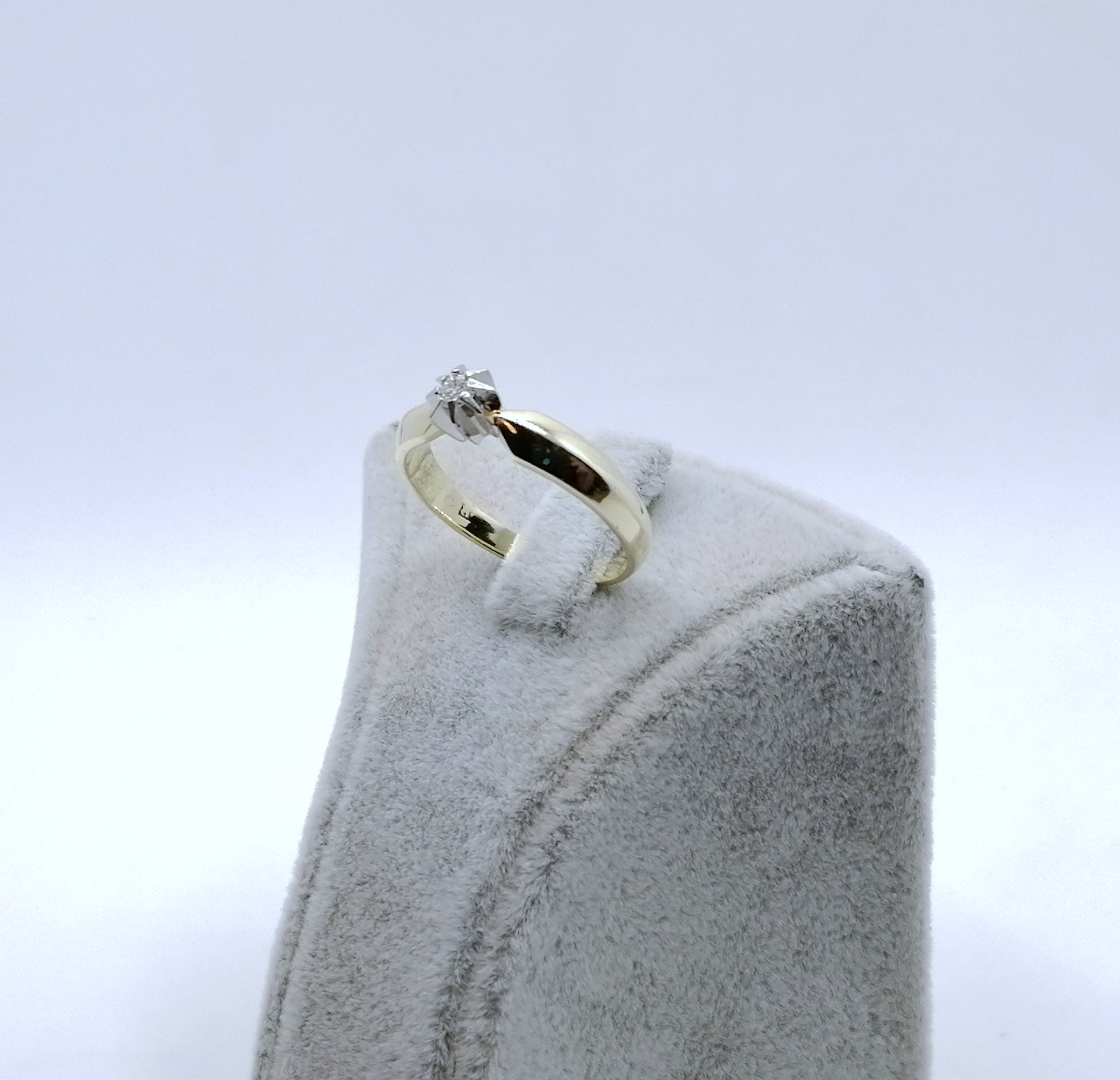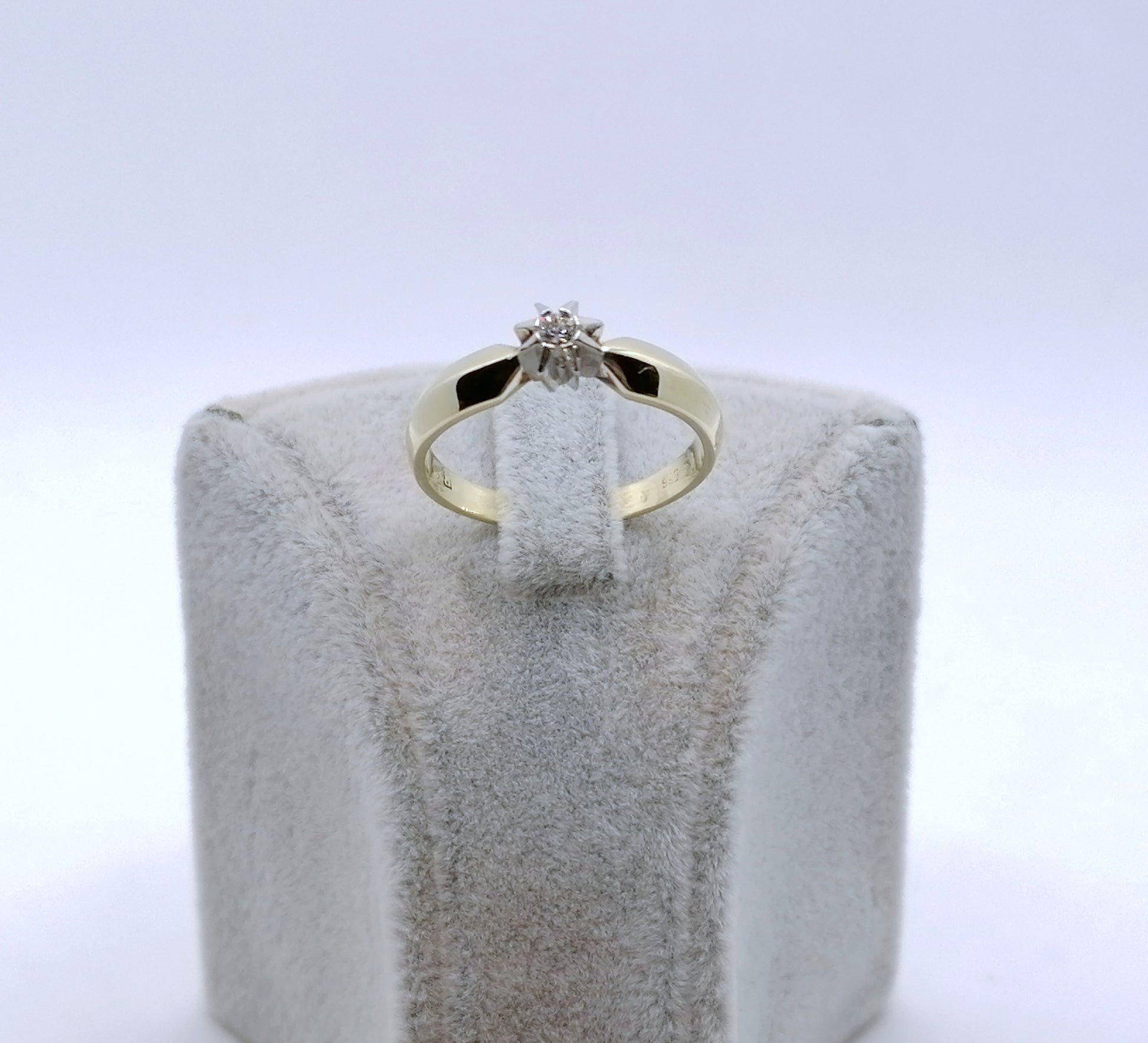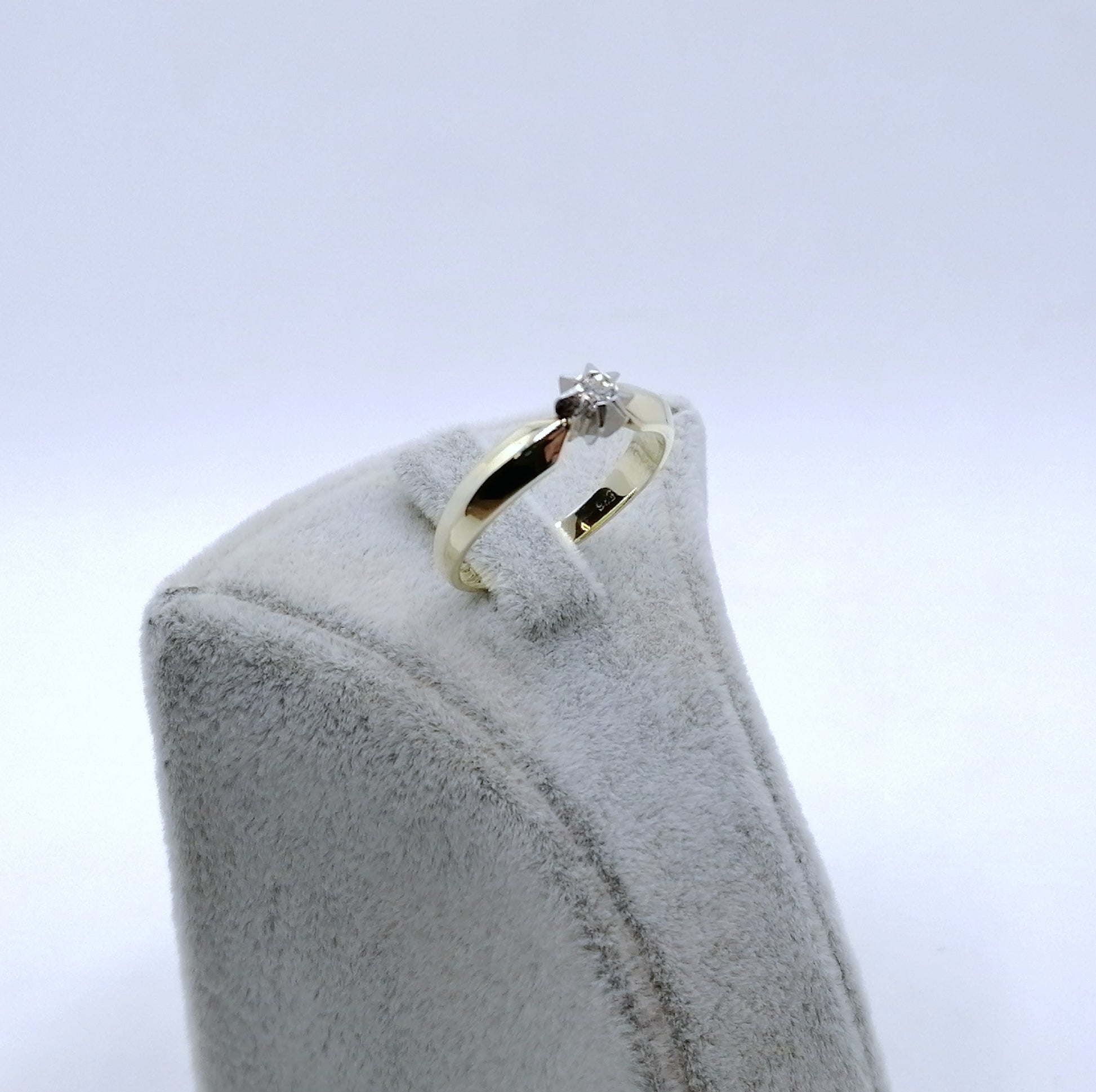 Neuwertiger Gold Solitärring mit einem 0,1ct Brillant. Der Ring ist aus 585er 14 karat Gold gefertigt.