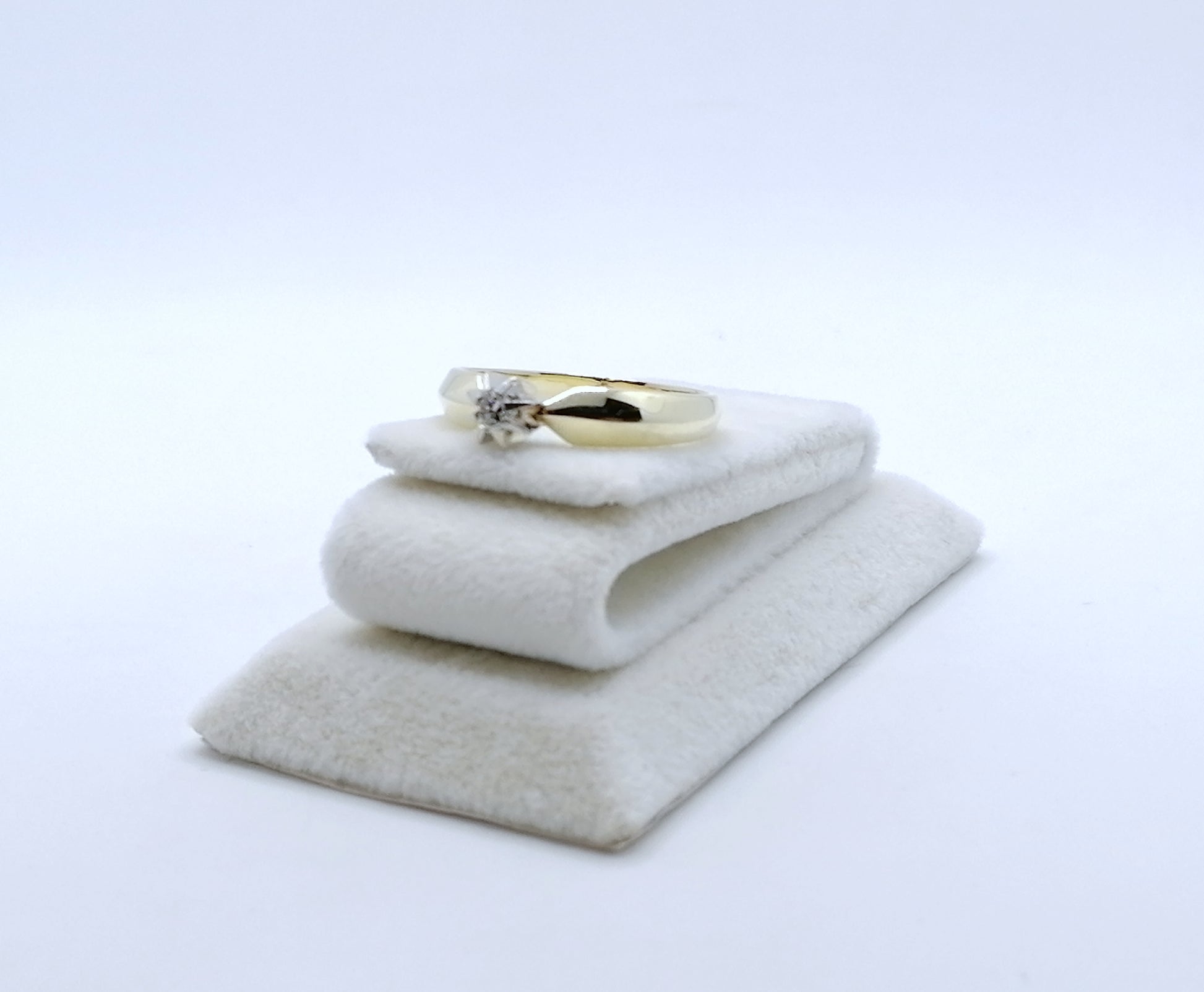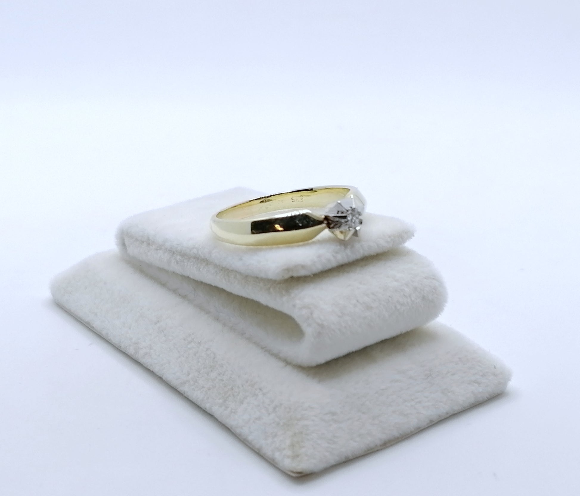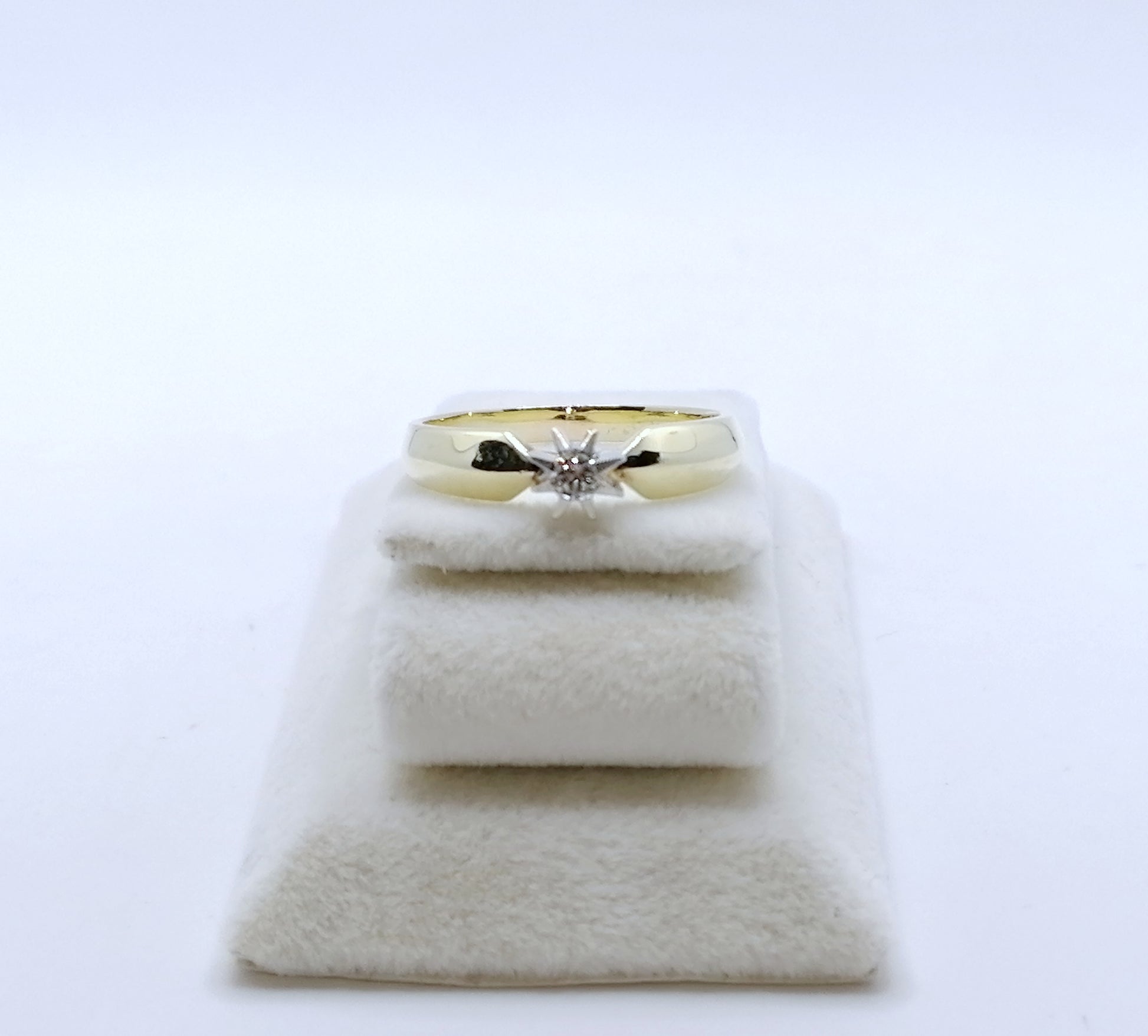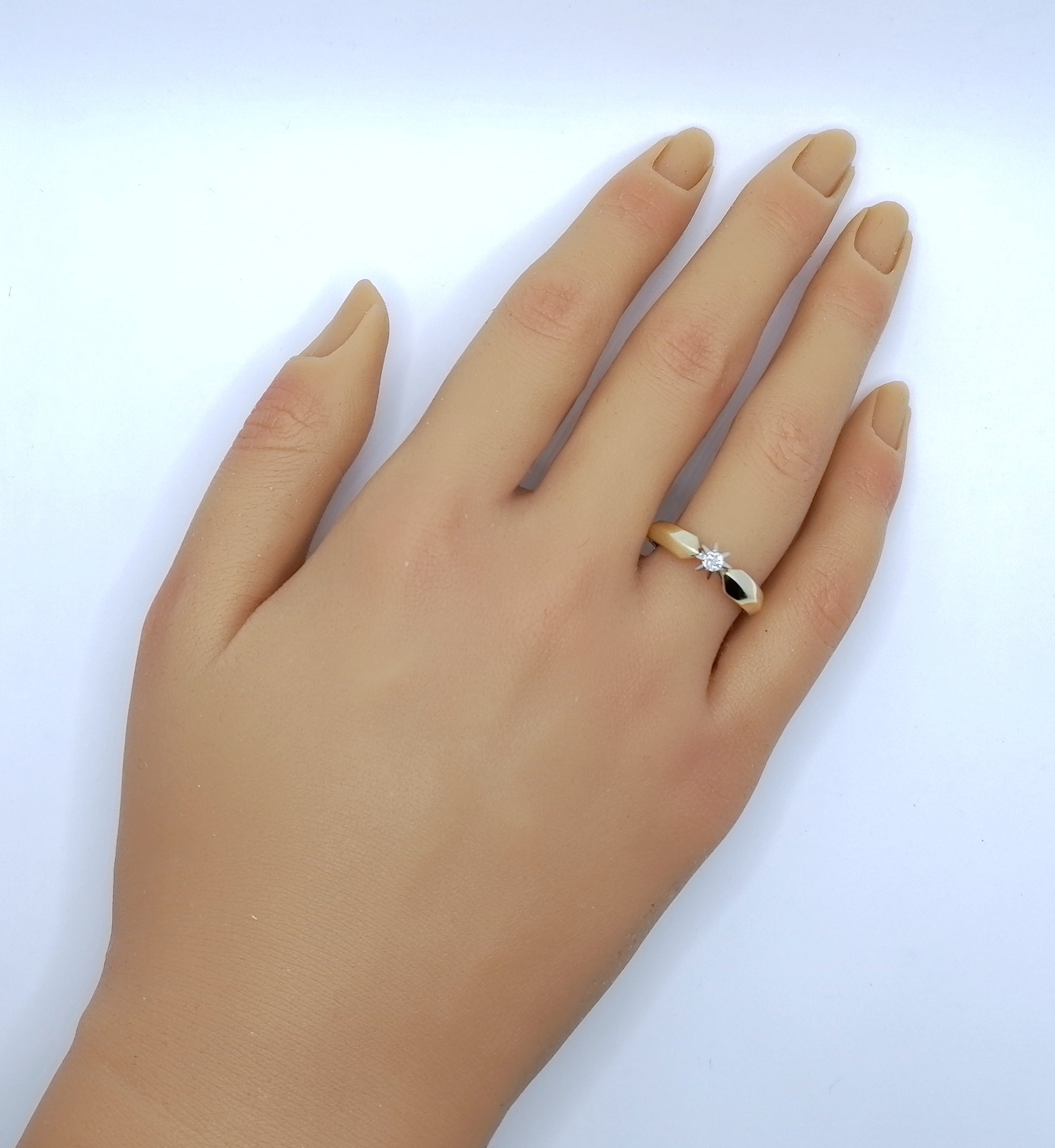 Neuwertiger Gold Solitärring mit einem 0,1ct Brillant. Der Ring ist aus 585er 14 karat Gold gefertigt.