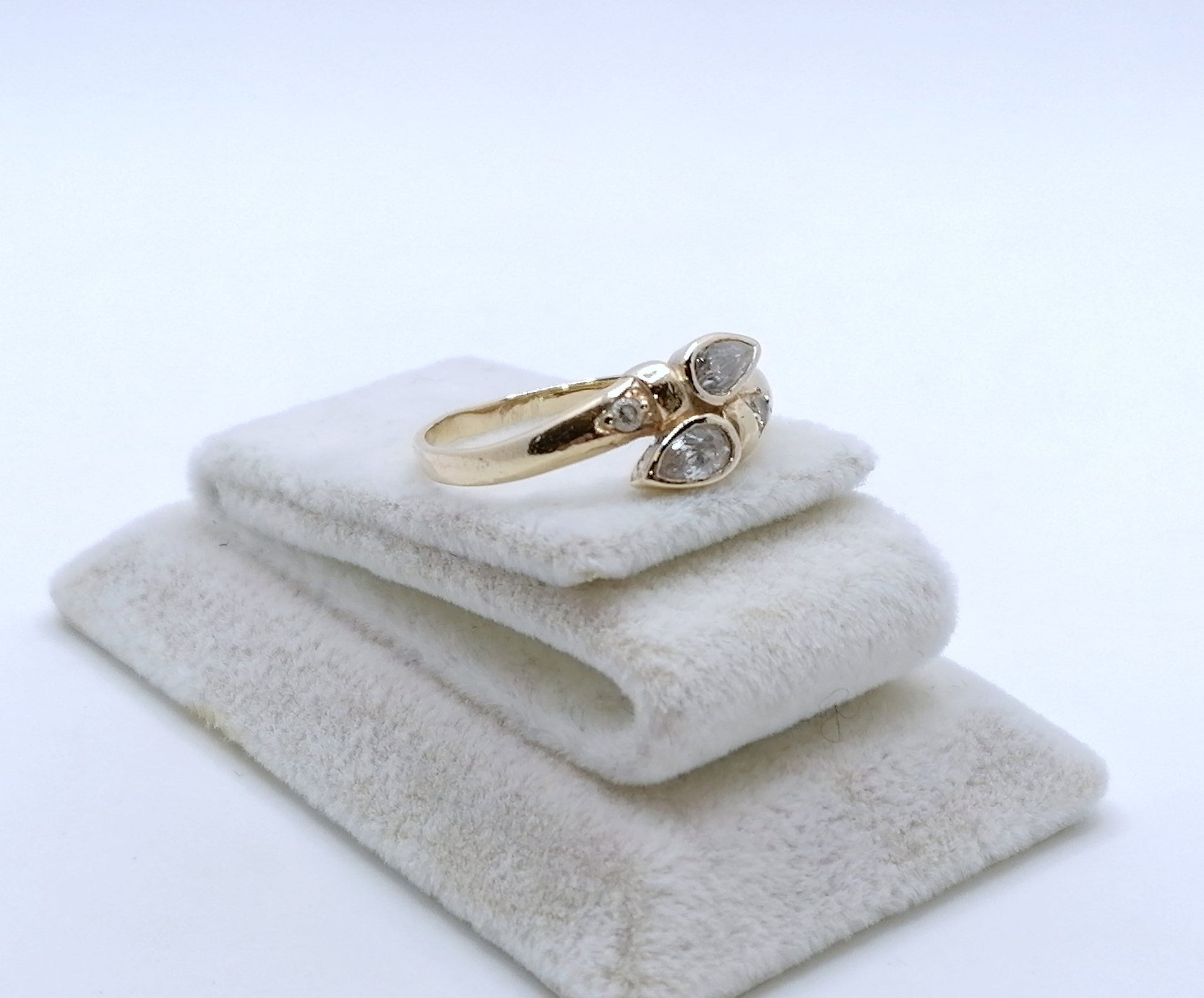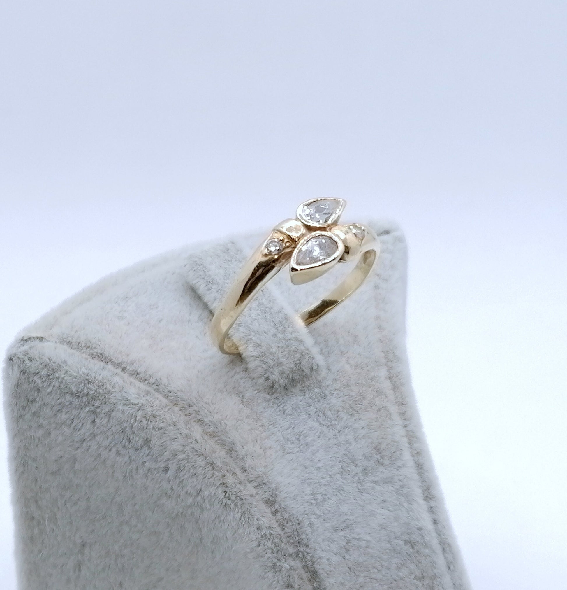 Vintage Gold Damenring mit funkelnden Zirkonia. Der Ring ist aus 585er 14 karat Gold gefertigt.