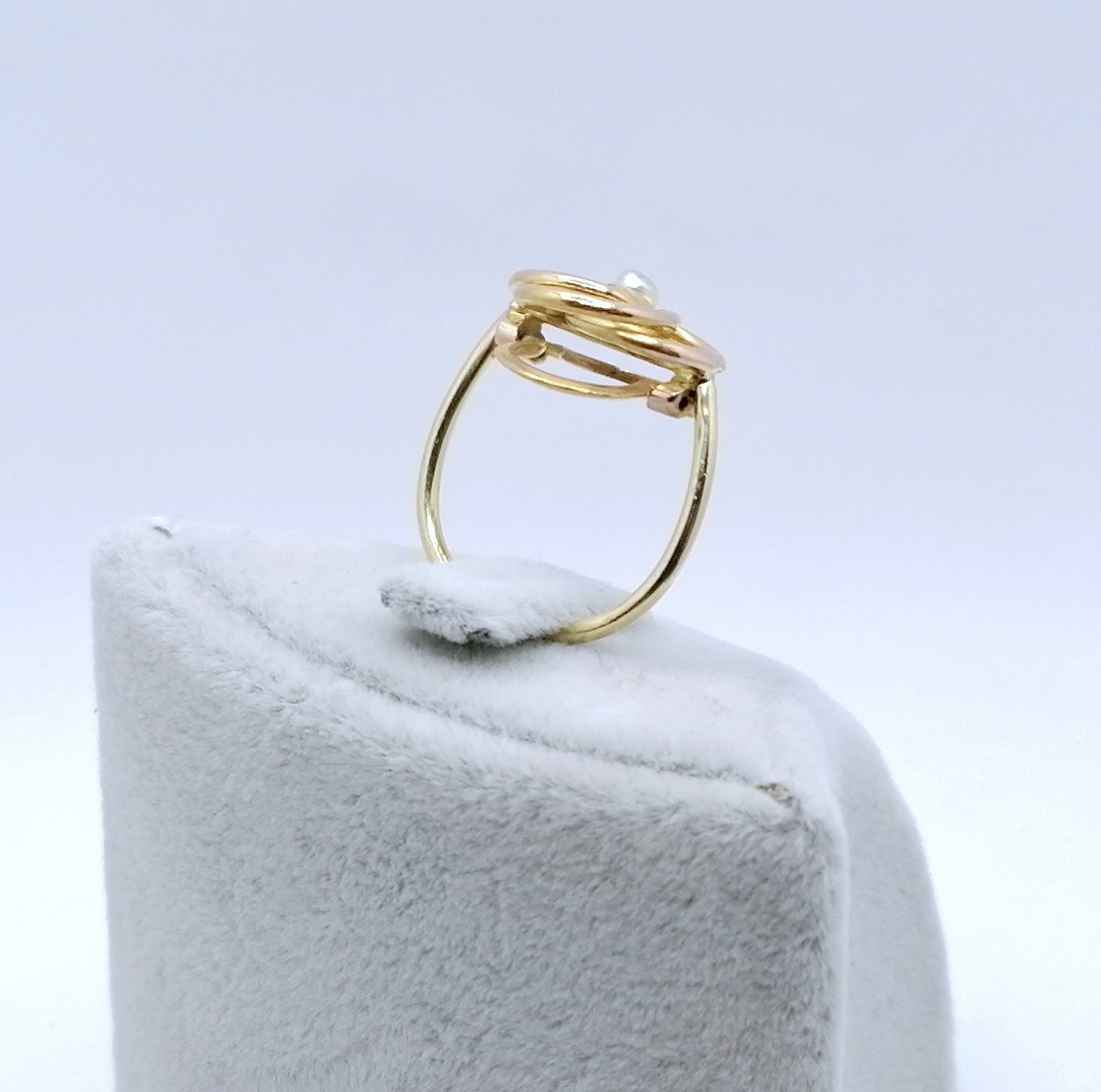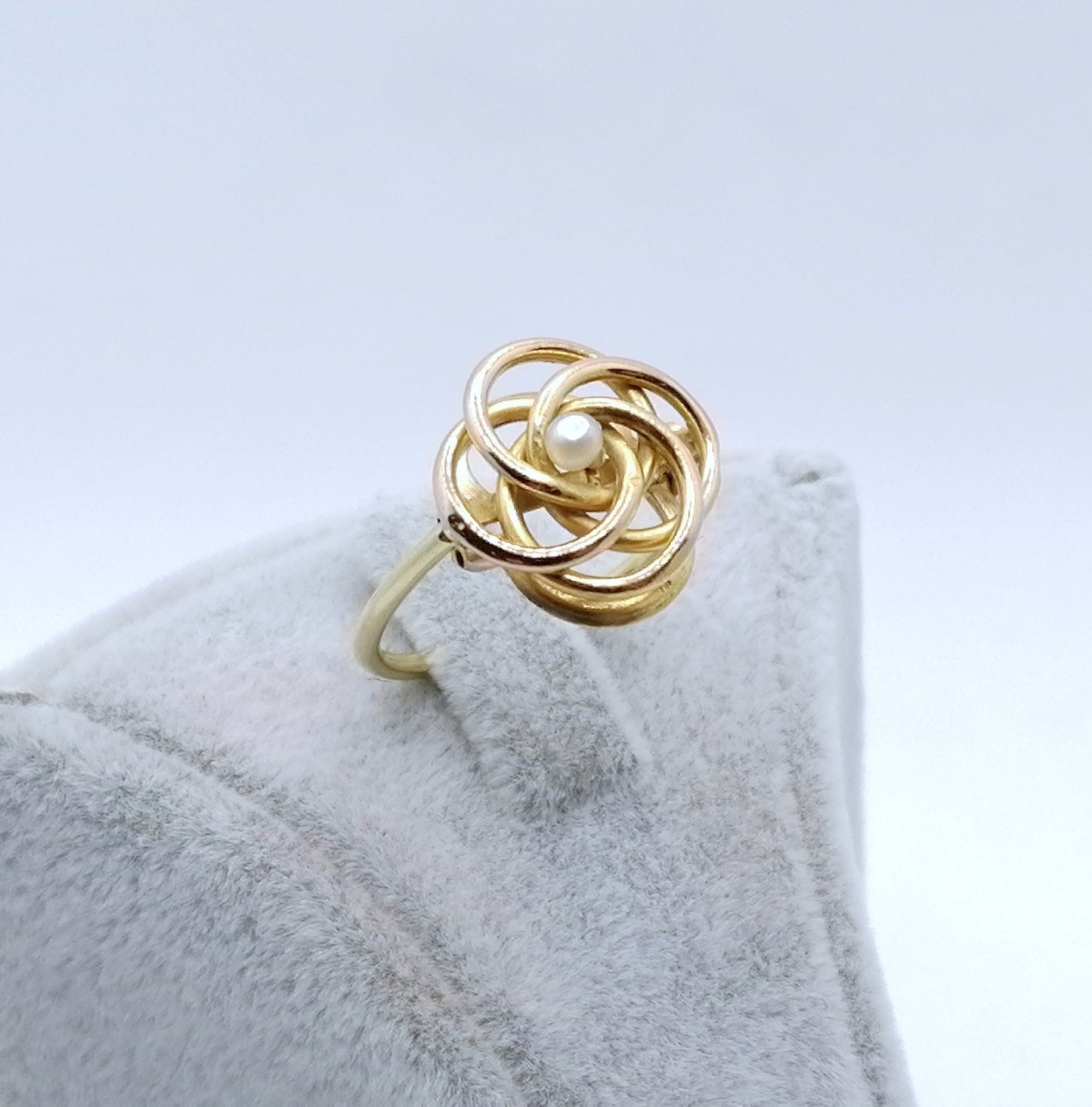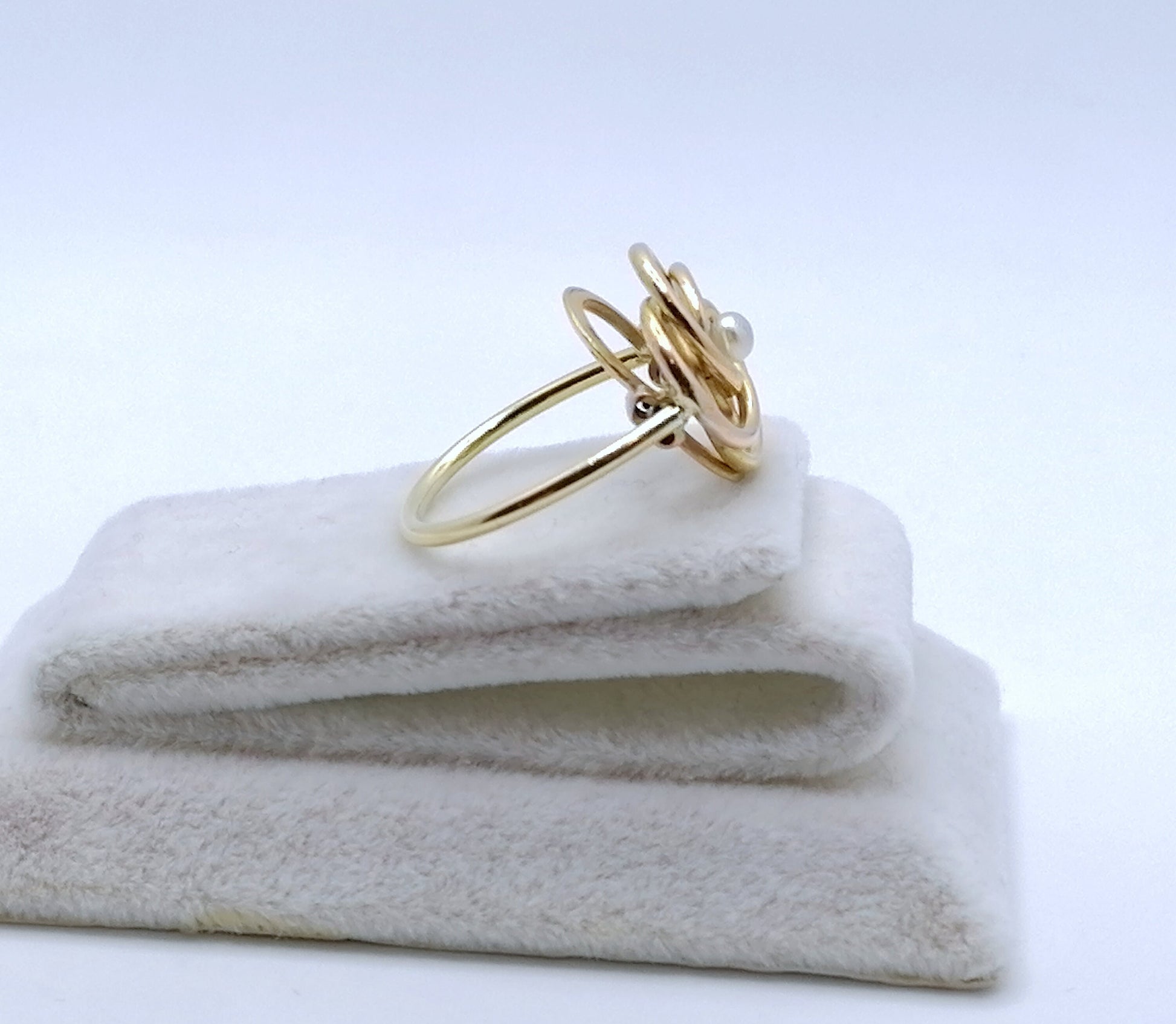 Handgefertigter Gold Damenring mit einer Saatperle. Der Ring ist aus 750er 18 Karat Gold gefertigt.