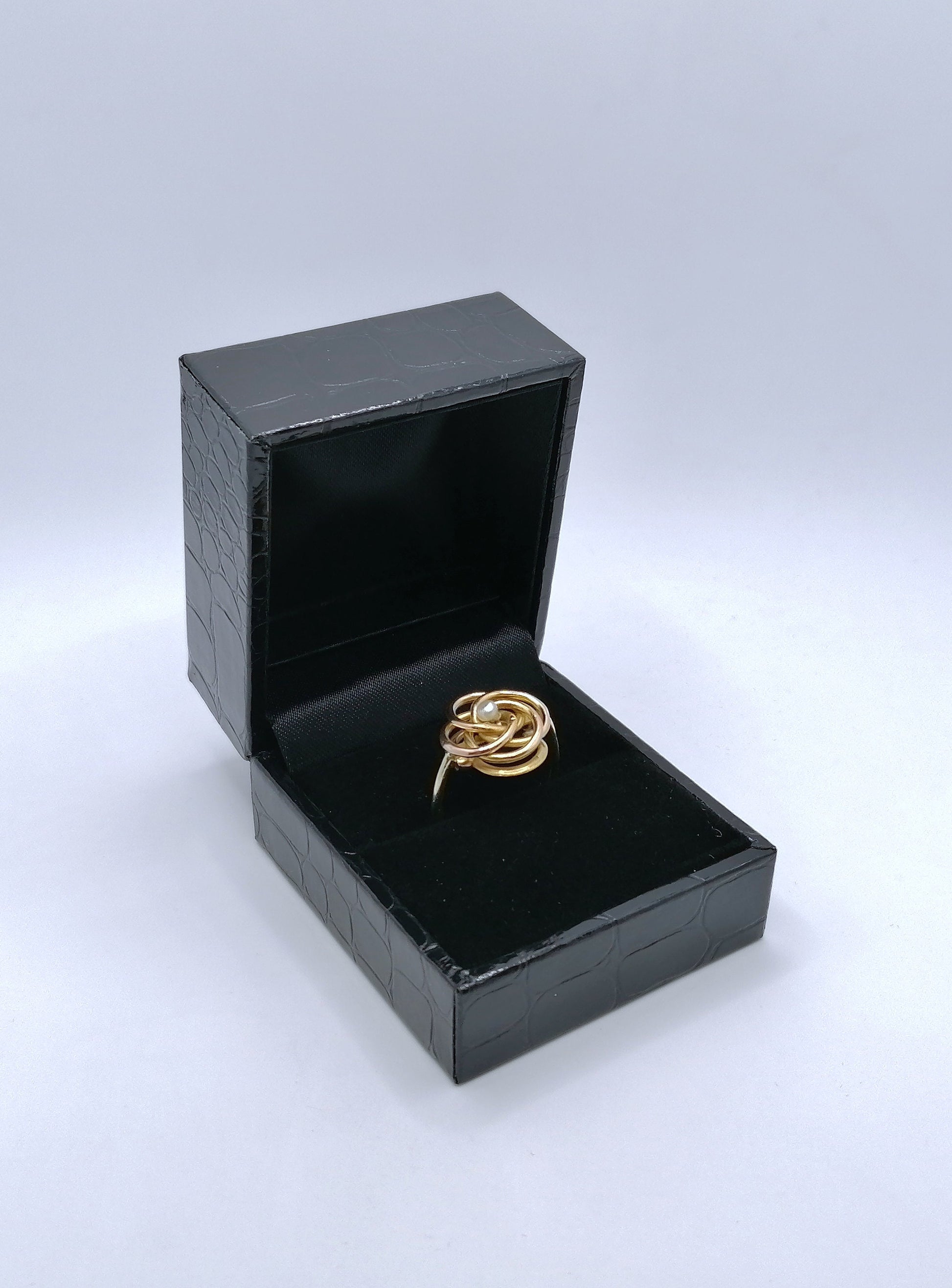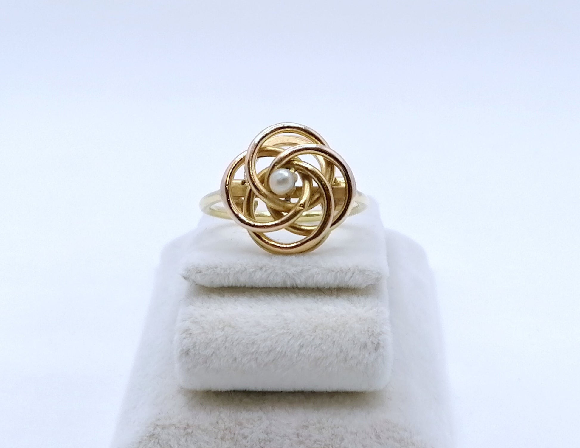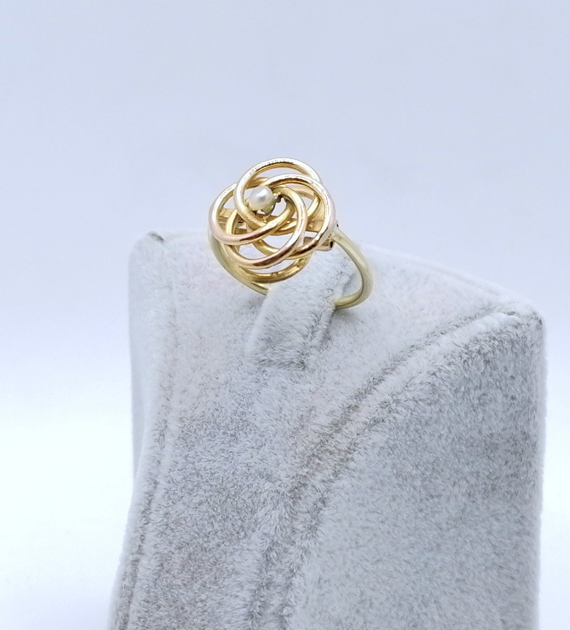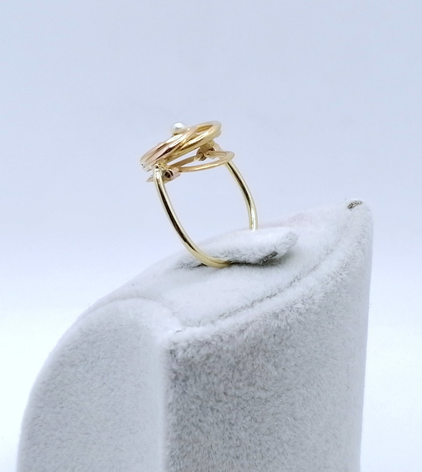 Handgefertigter Gold Damenring mit einer Saatperle. Der Ring ist aus 750er 18 Karat Gold gefertigt.