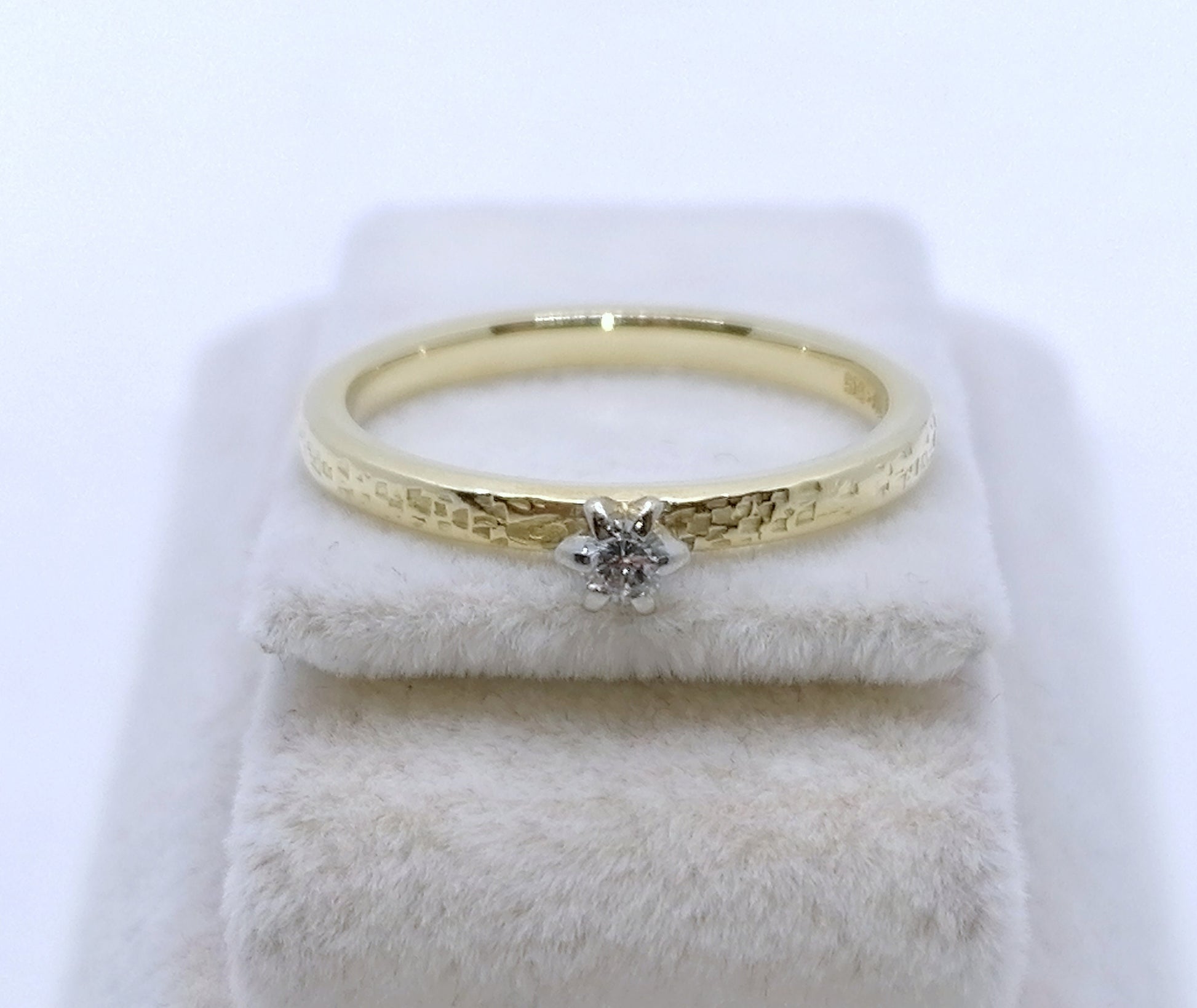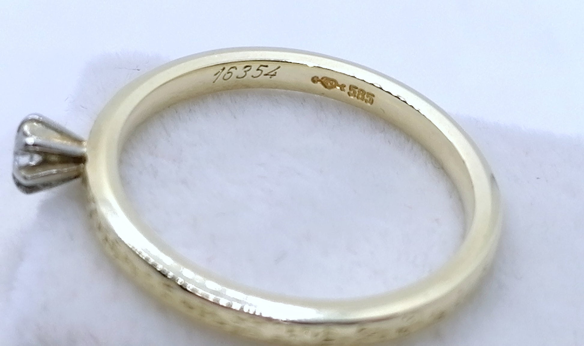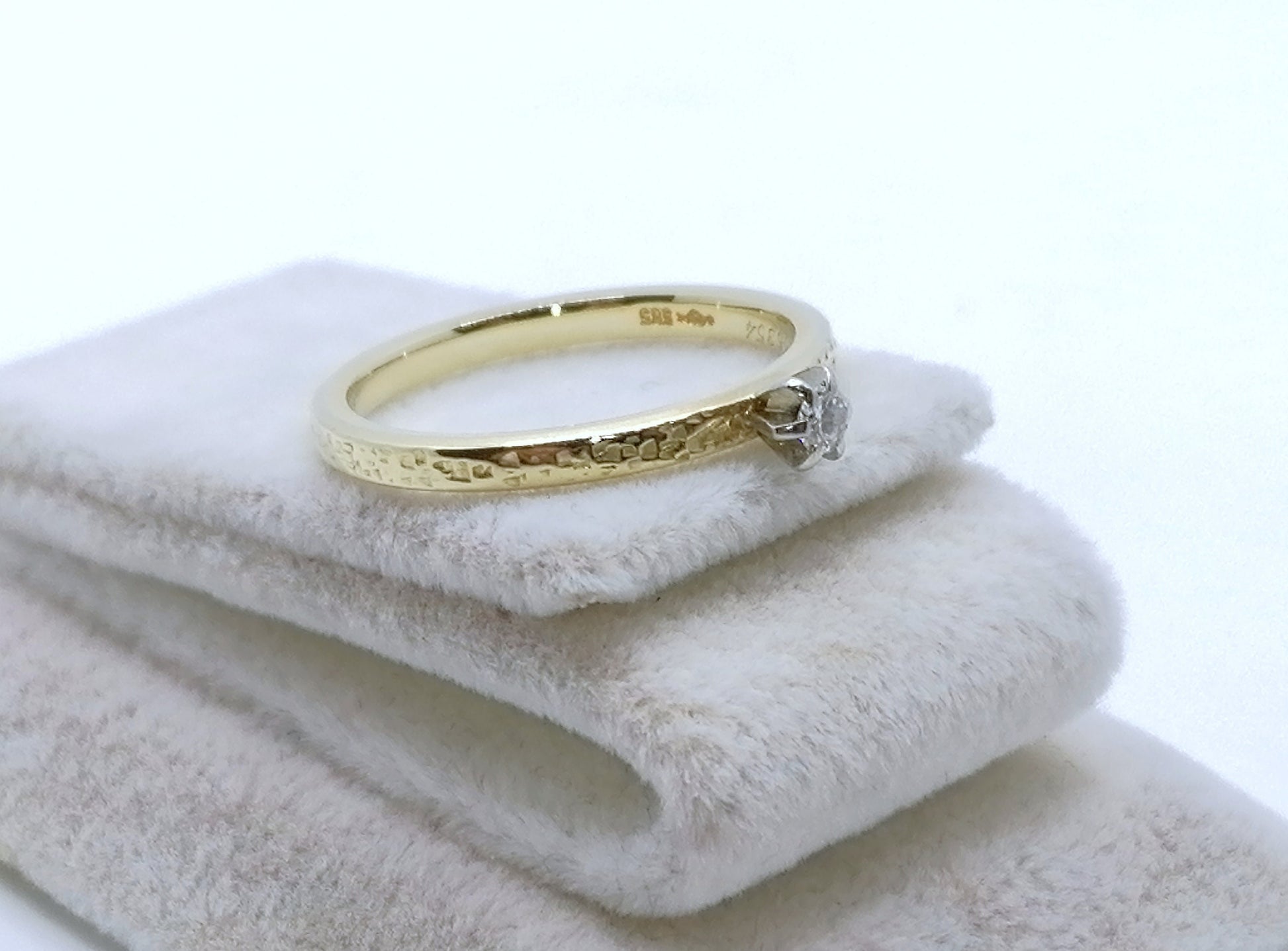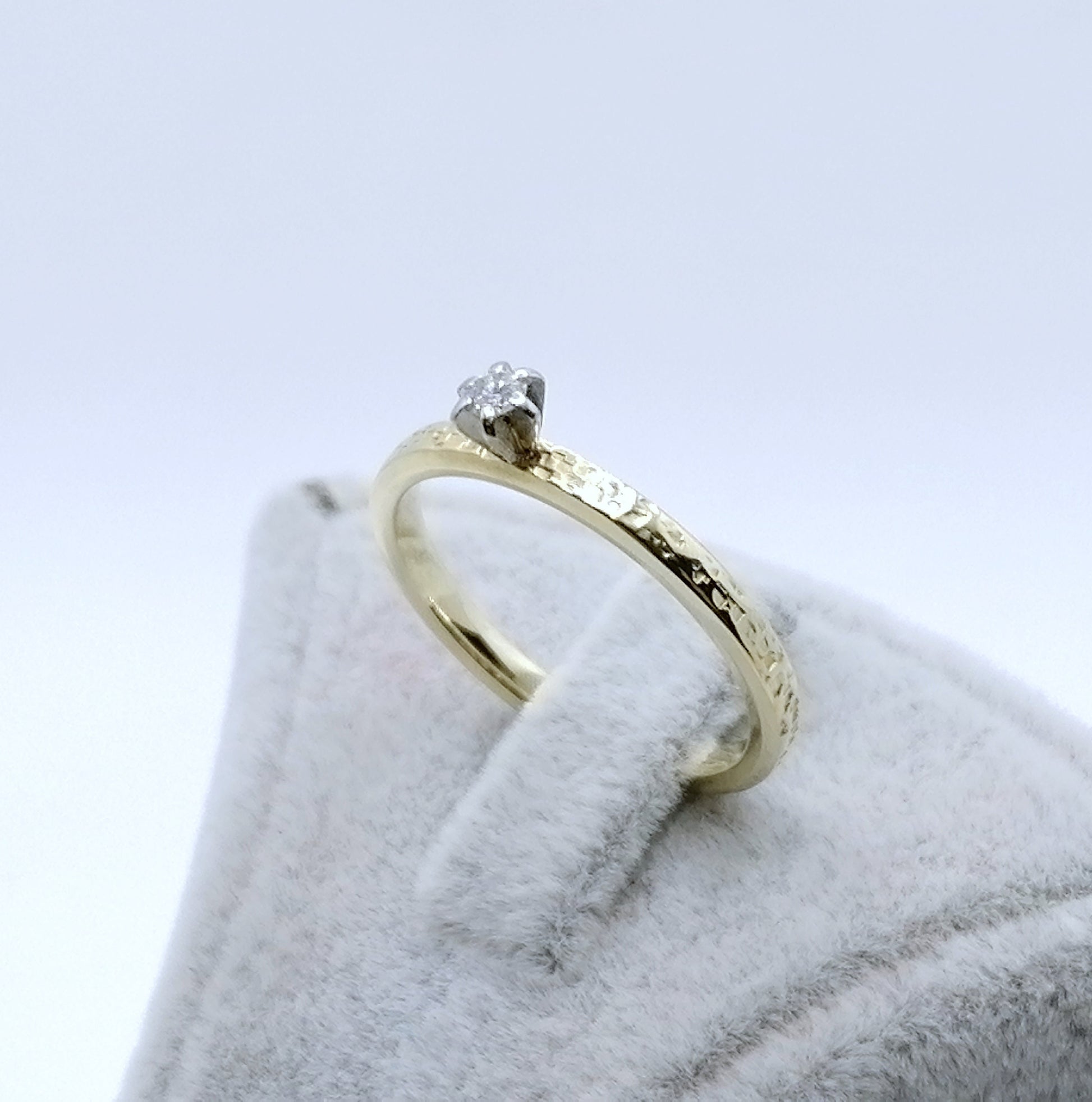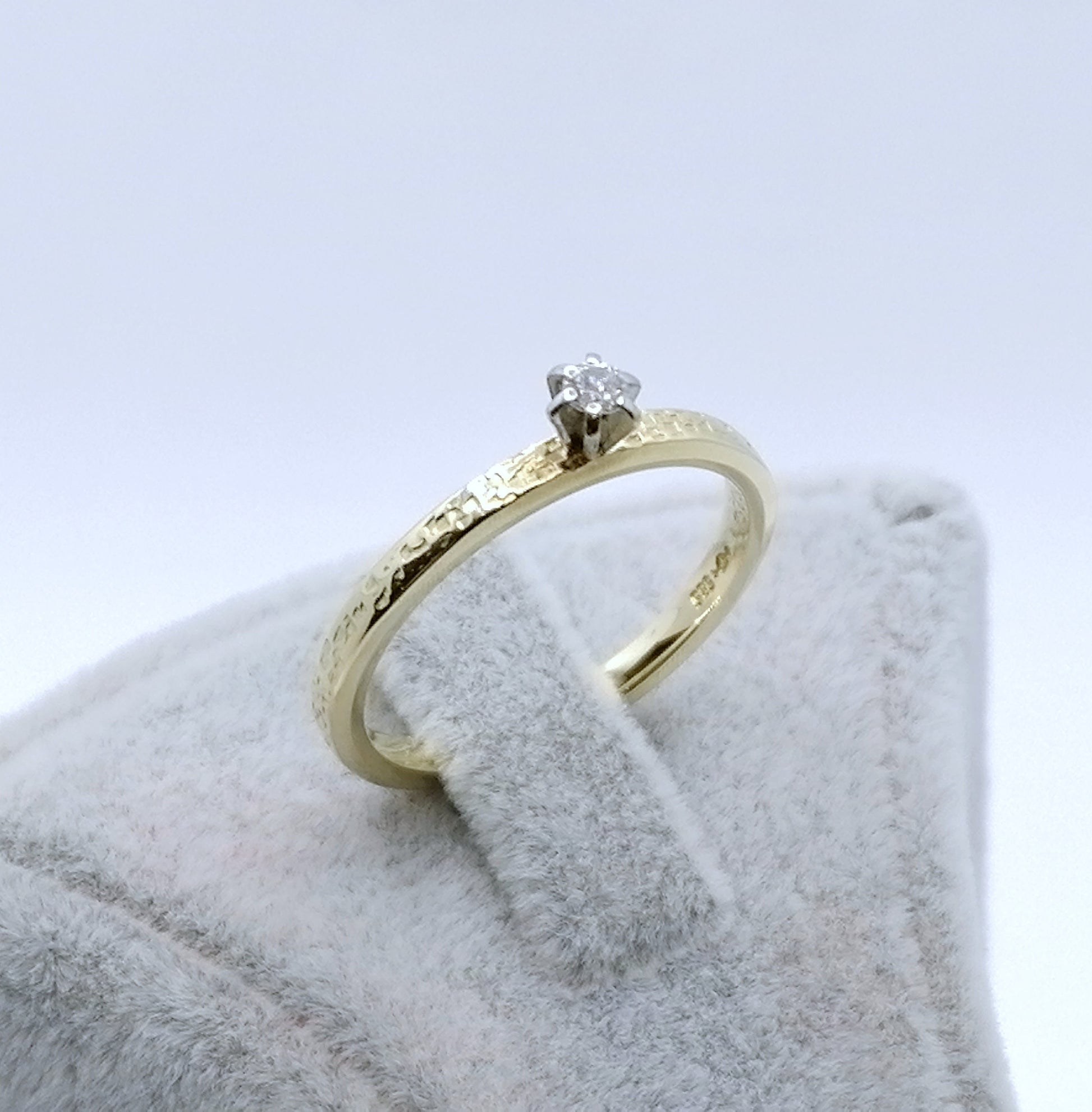 Gold Solitärring mit einem 0,05ct VSI Brillanten. Der Ring ist aus 585er 14 karat Gold gefertigt.