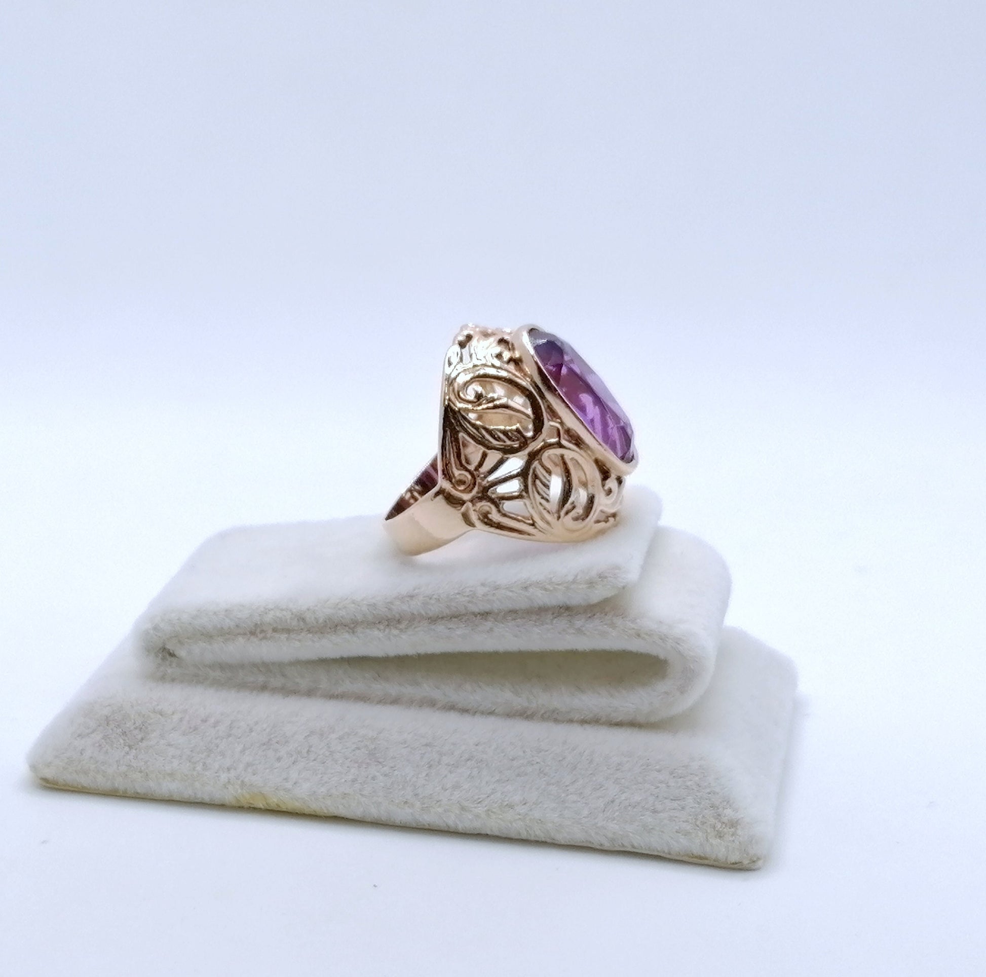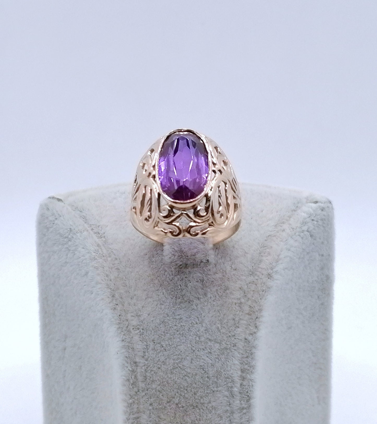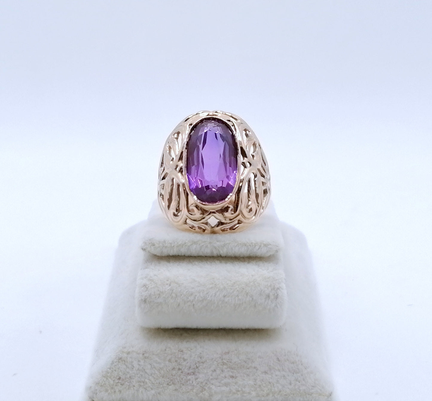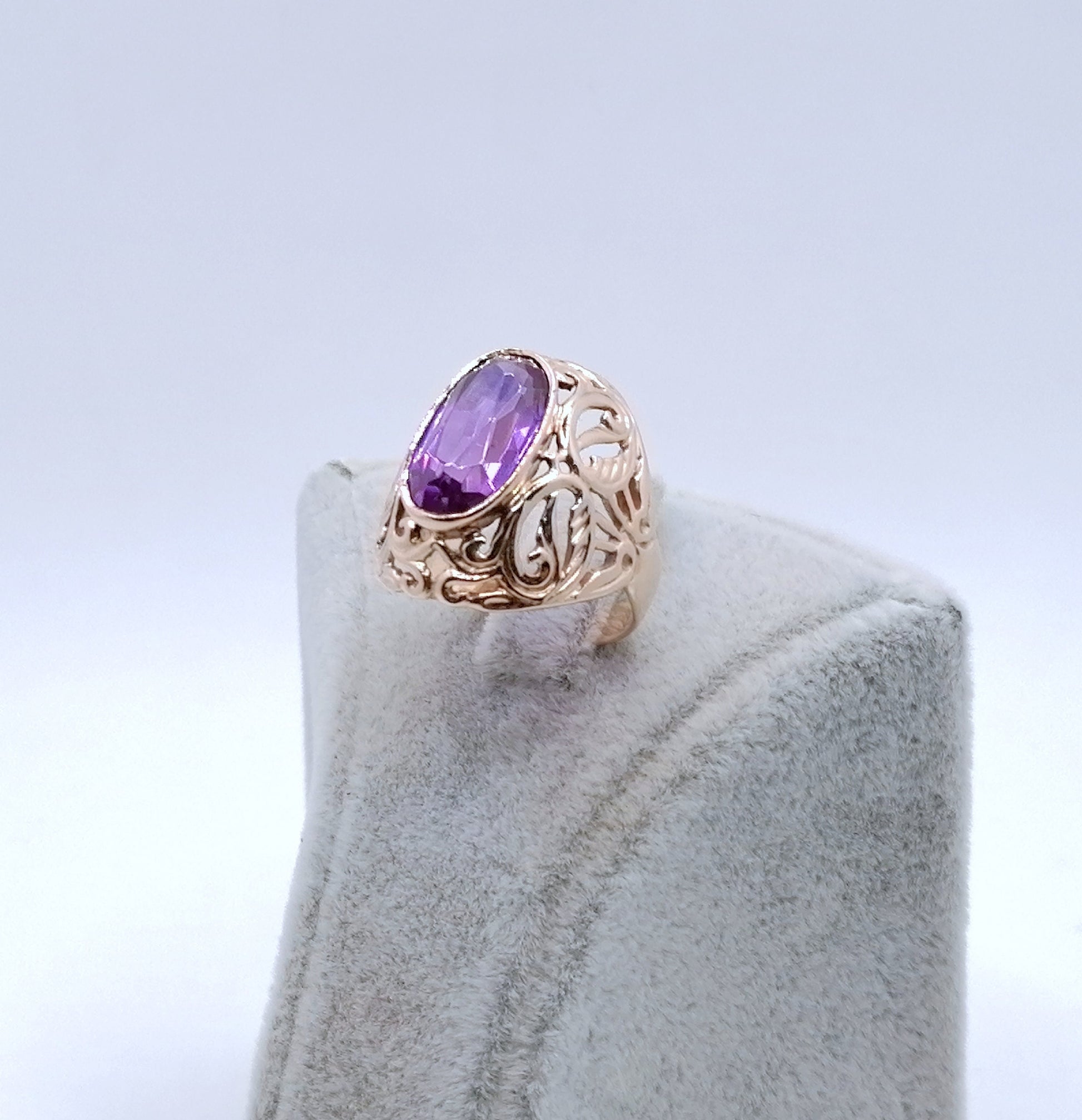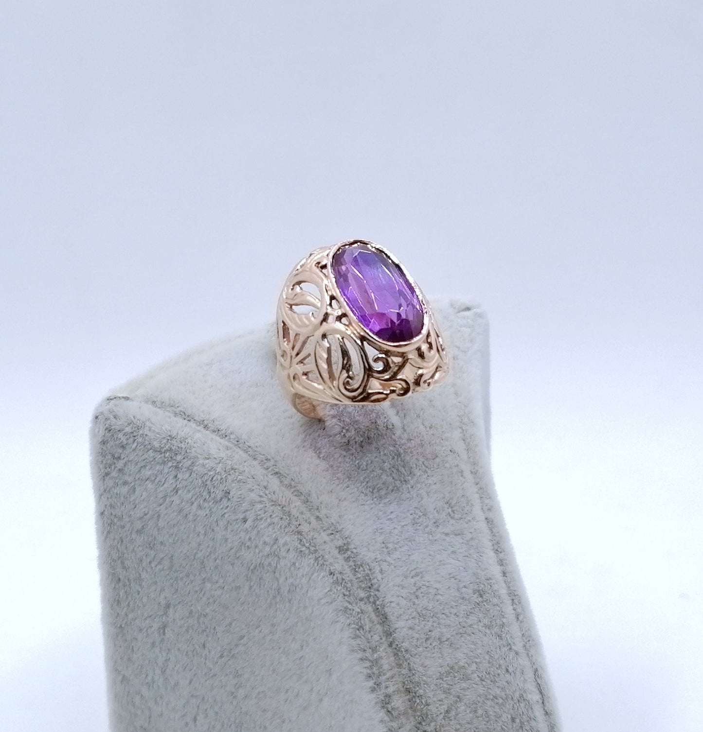 Vintage Rotgold Damenring mit einem Alexandrit Edelstein. Der Ring ist aus 583er 14 Karat Gold gefertigt.