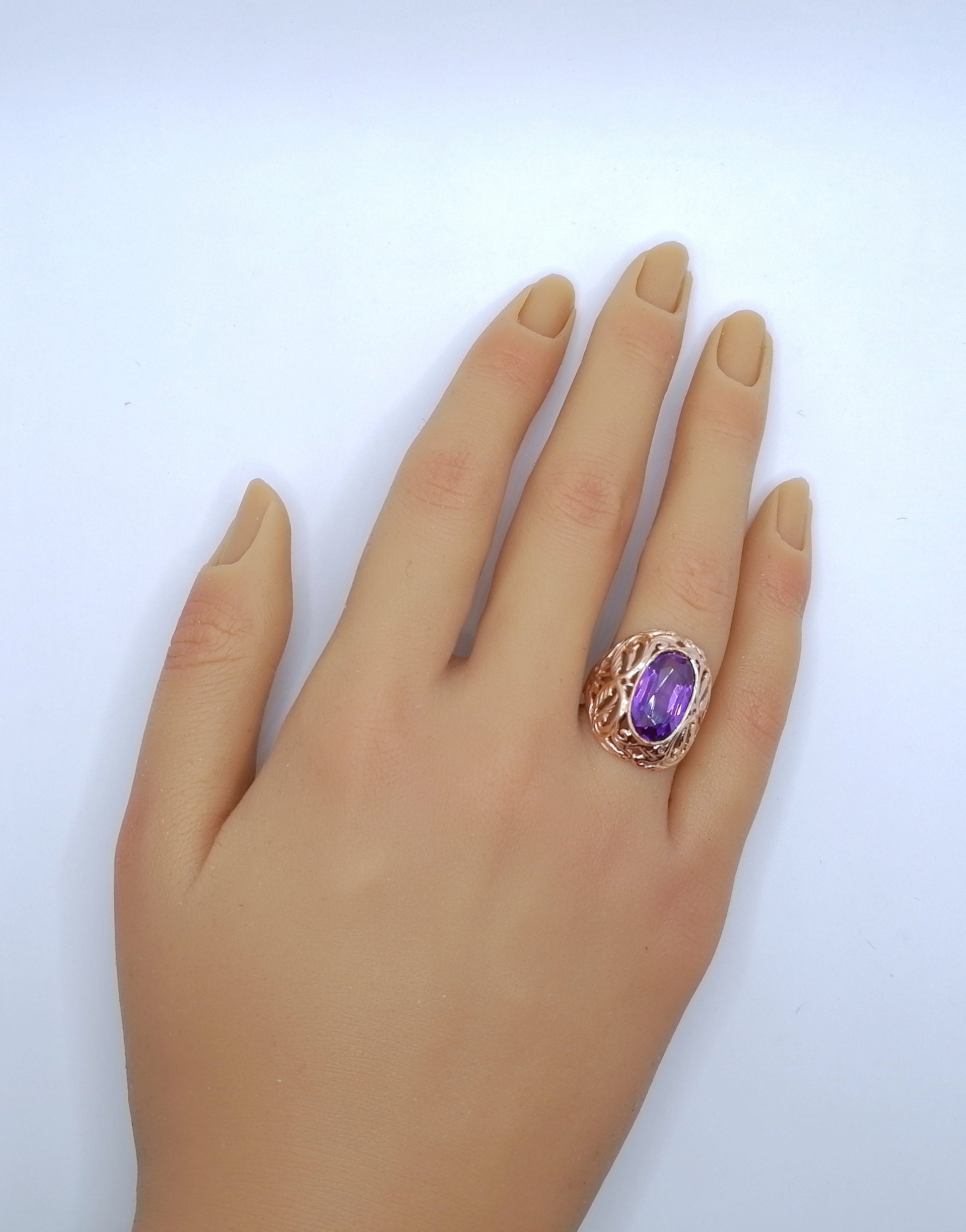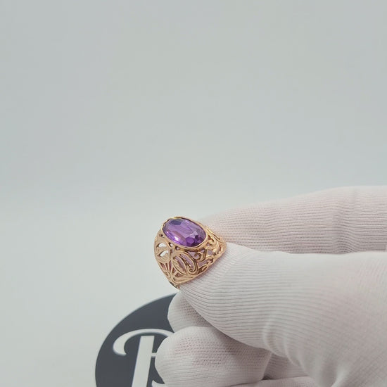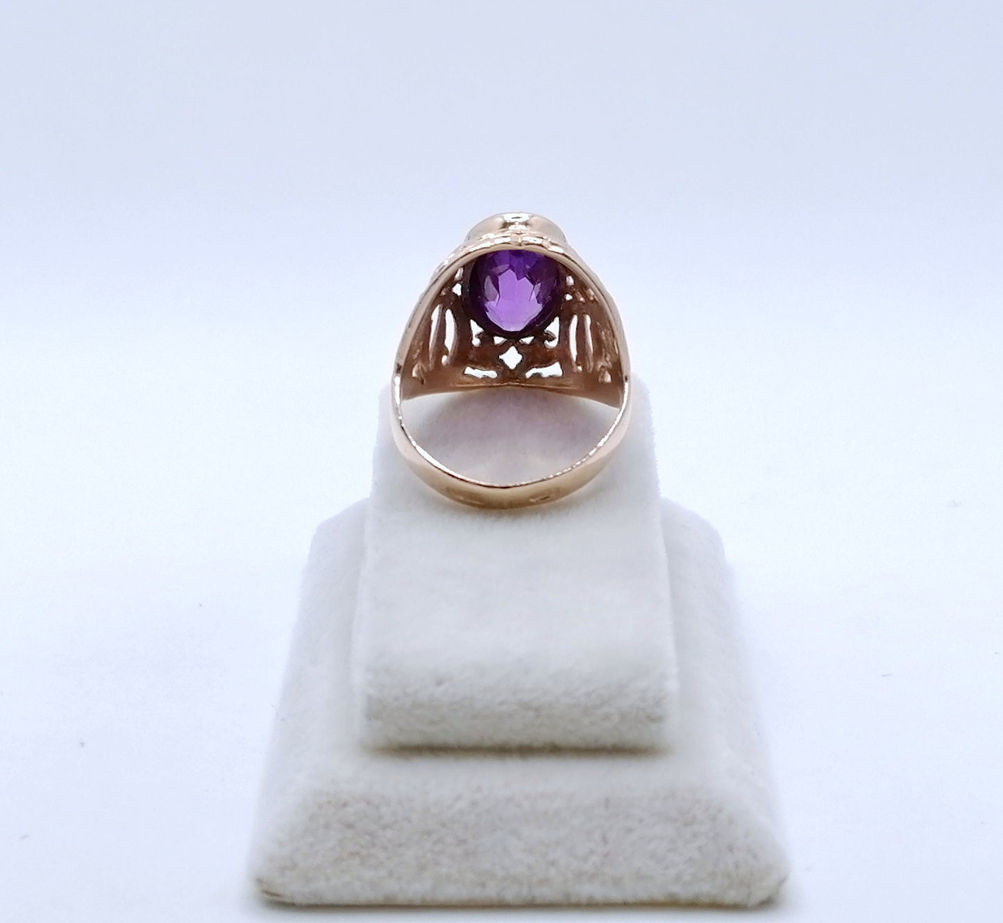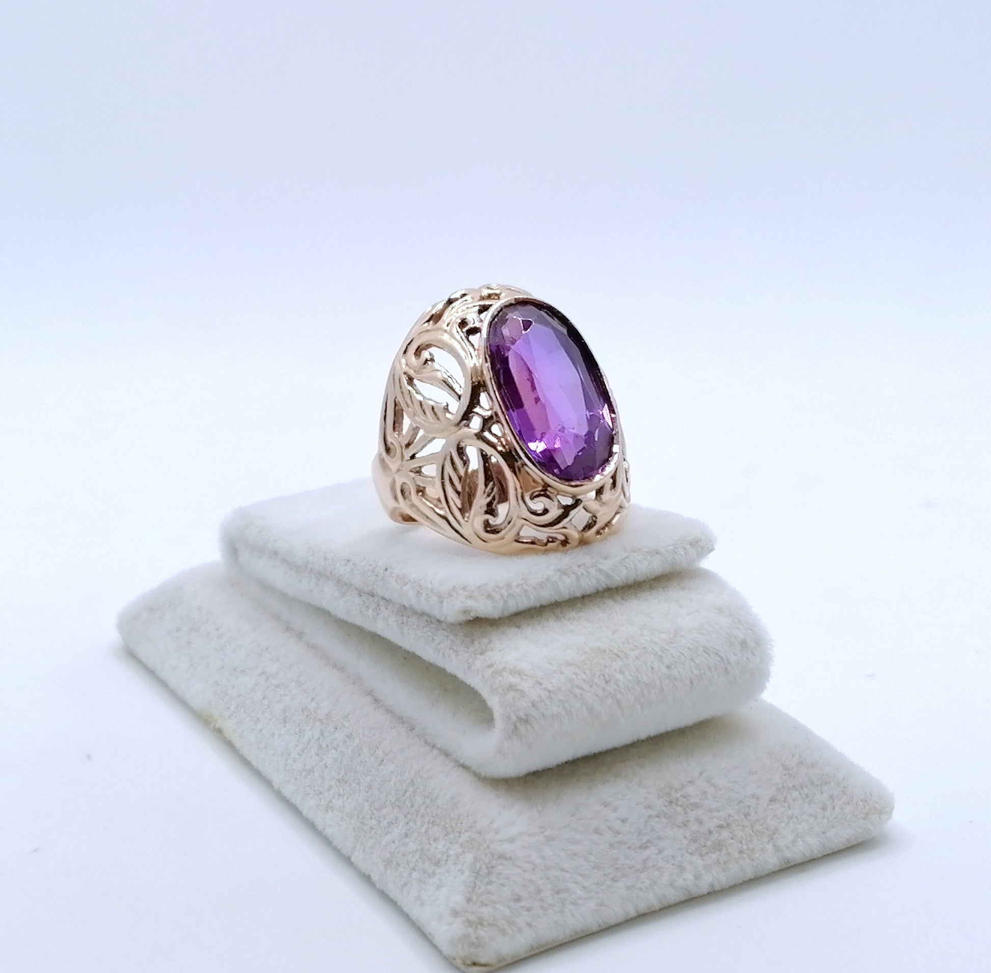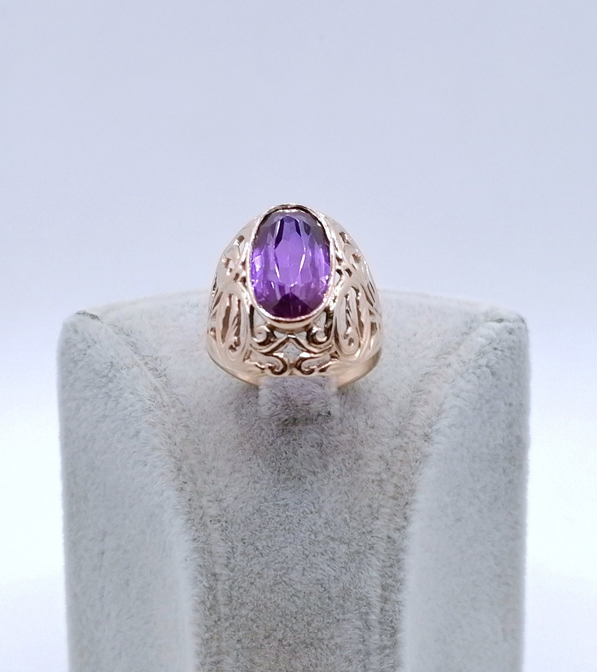 Vintage Rotgold Damenring mit einem Alexandrit Edelstein. Der Ring ist aus 583er 14 Karat Gold gefertigt.