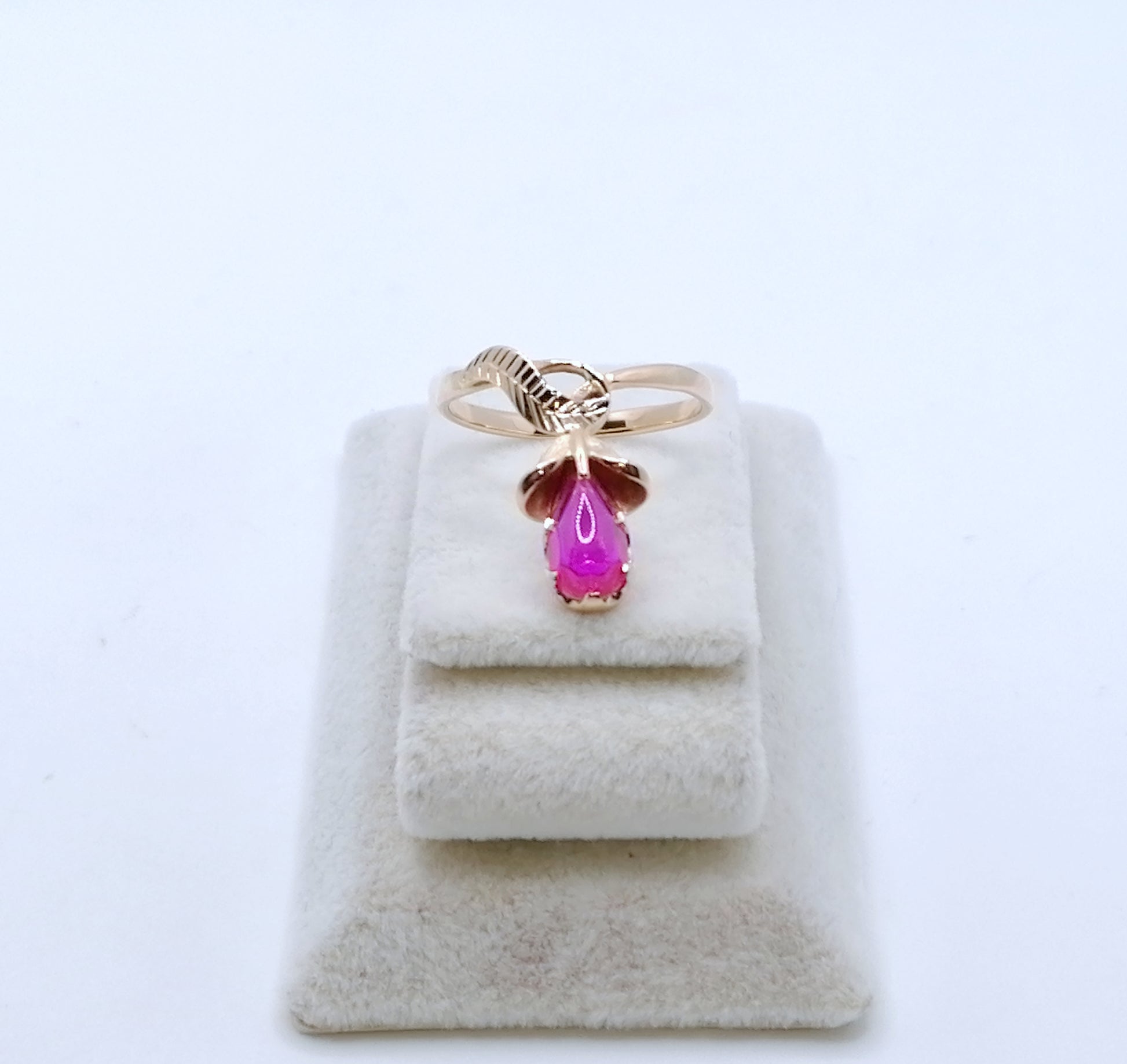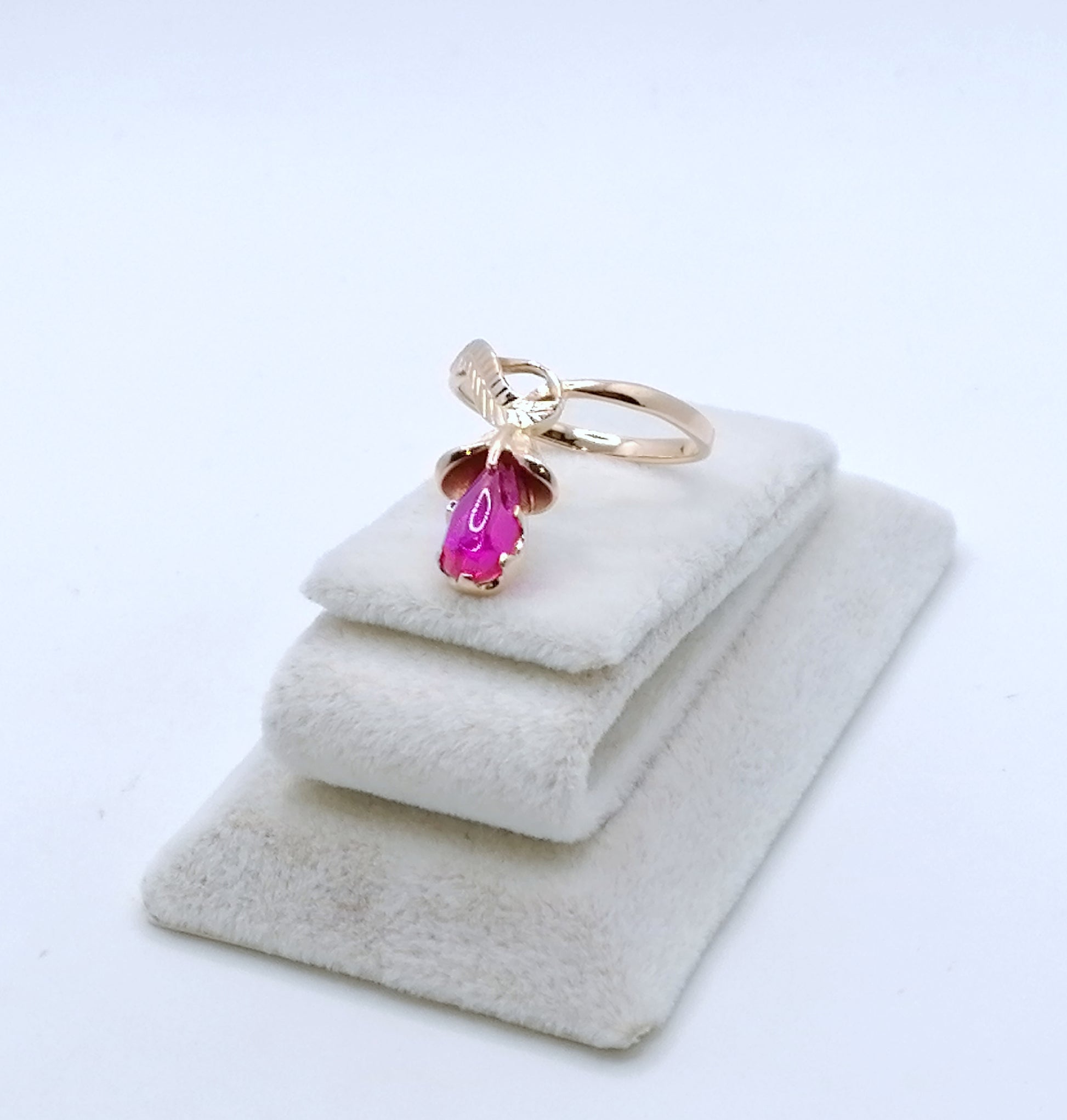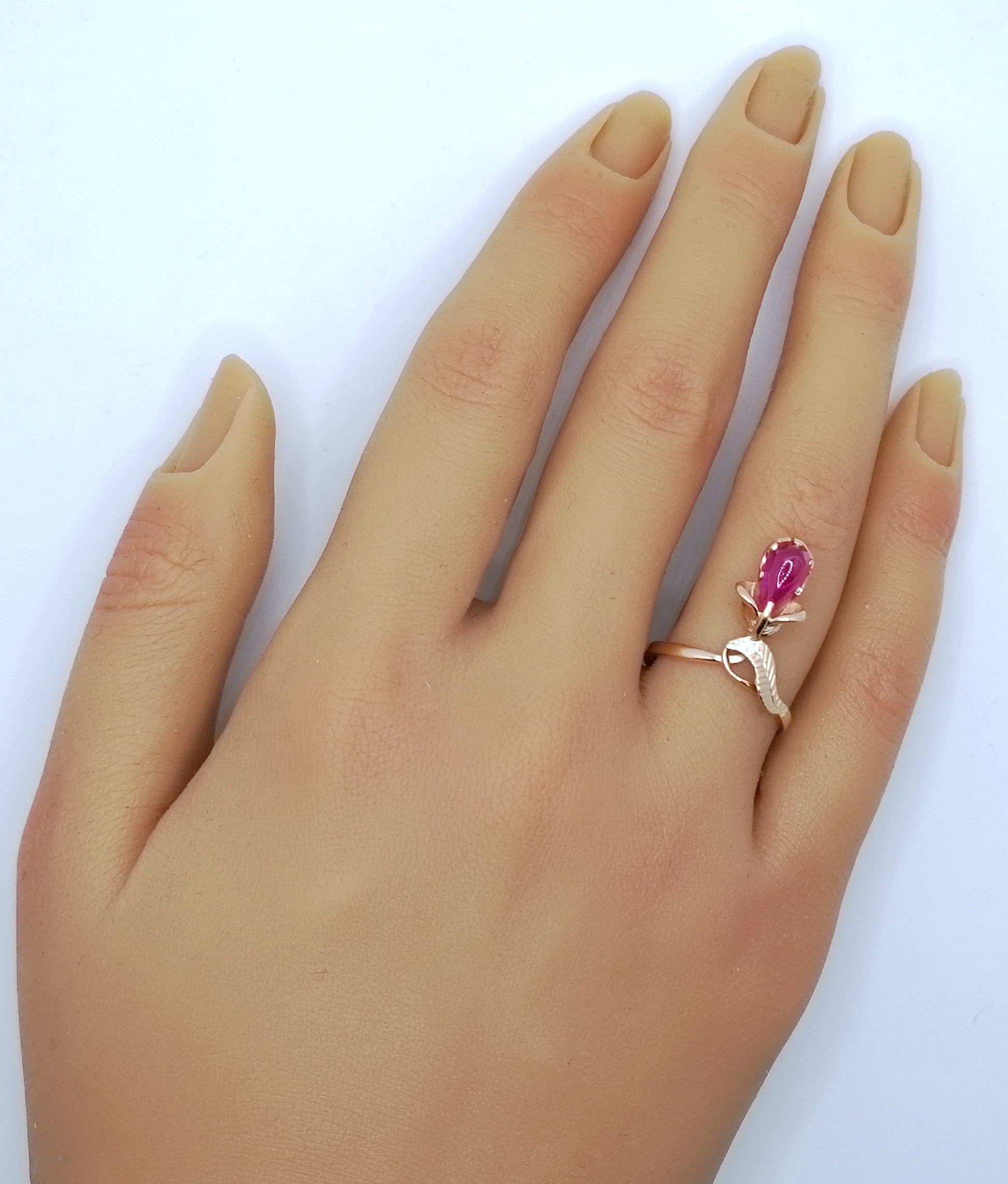 UdSSR Rotgold Damenring mit einem Rubin Cabochon. Der Ring ist aus 583er 14 Karat Gold gefertigt und befindet sich in einem neuwertigen Zustand.