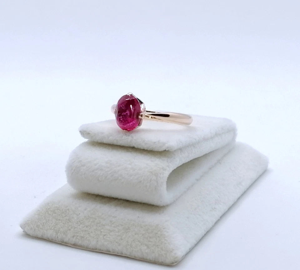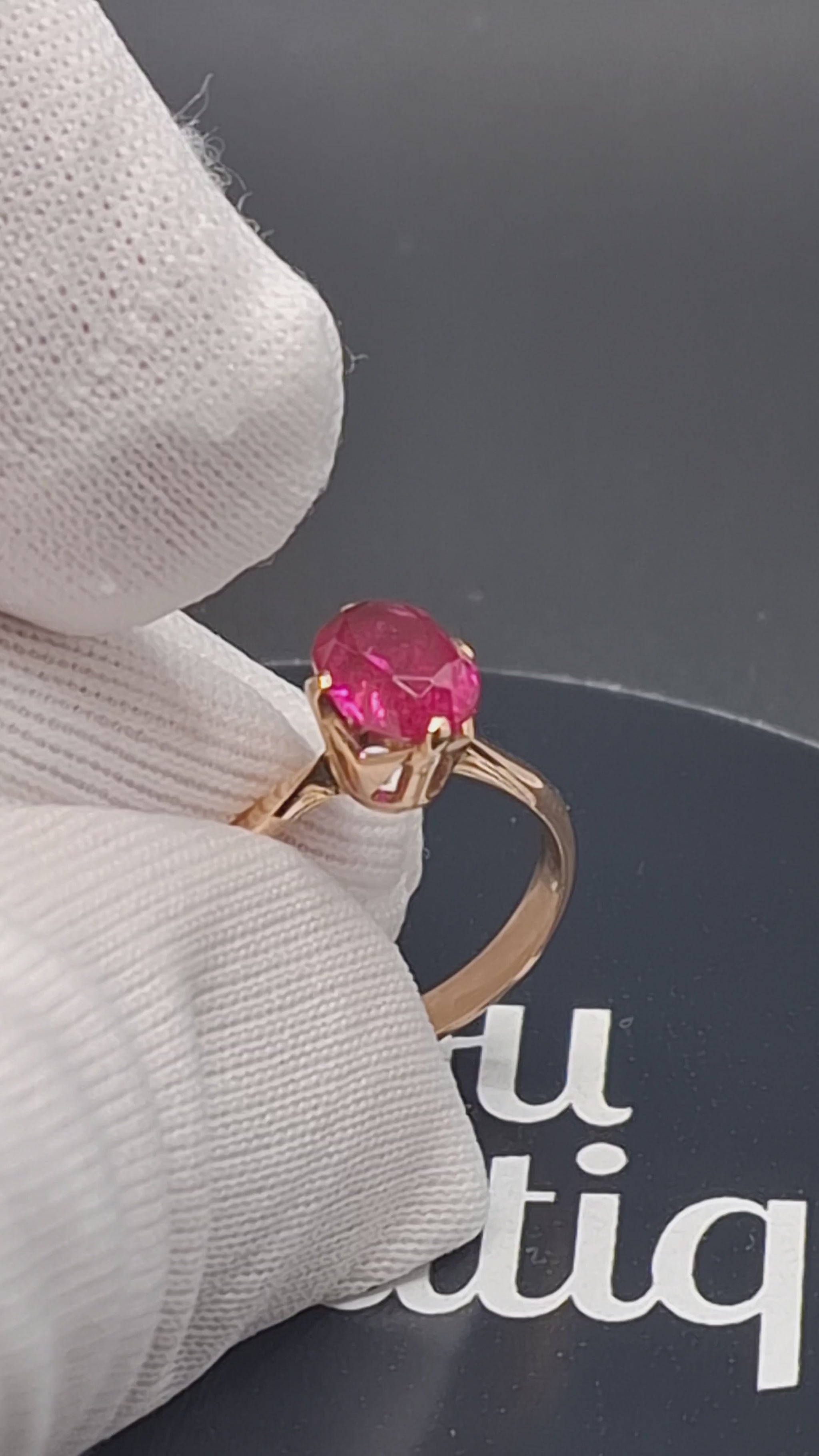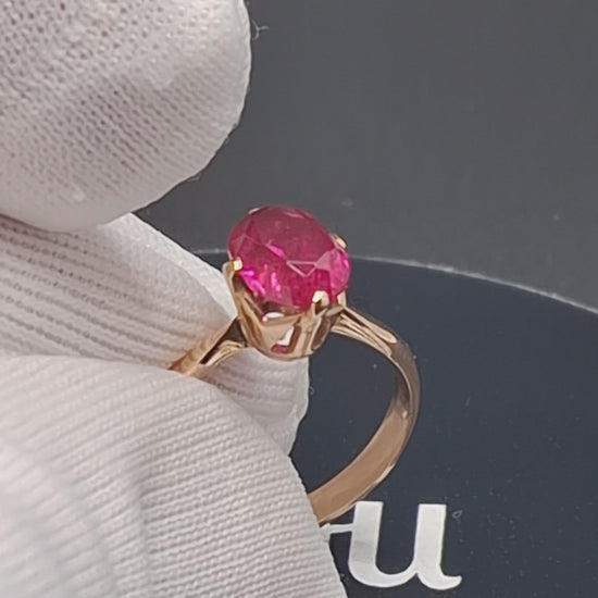 UdSSR Sowjet Rotgold Damenring mit einem Rubin Edelstein. Der Ring ist aus 583er 14 Karat Gold gefertigt.