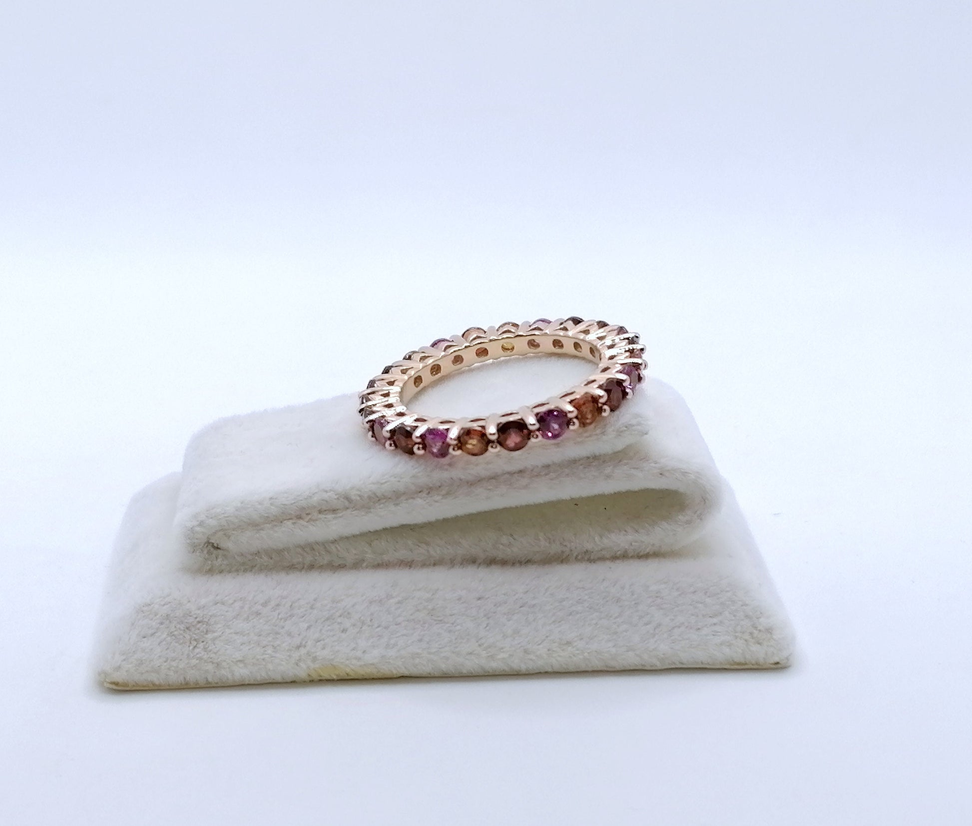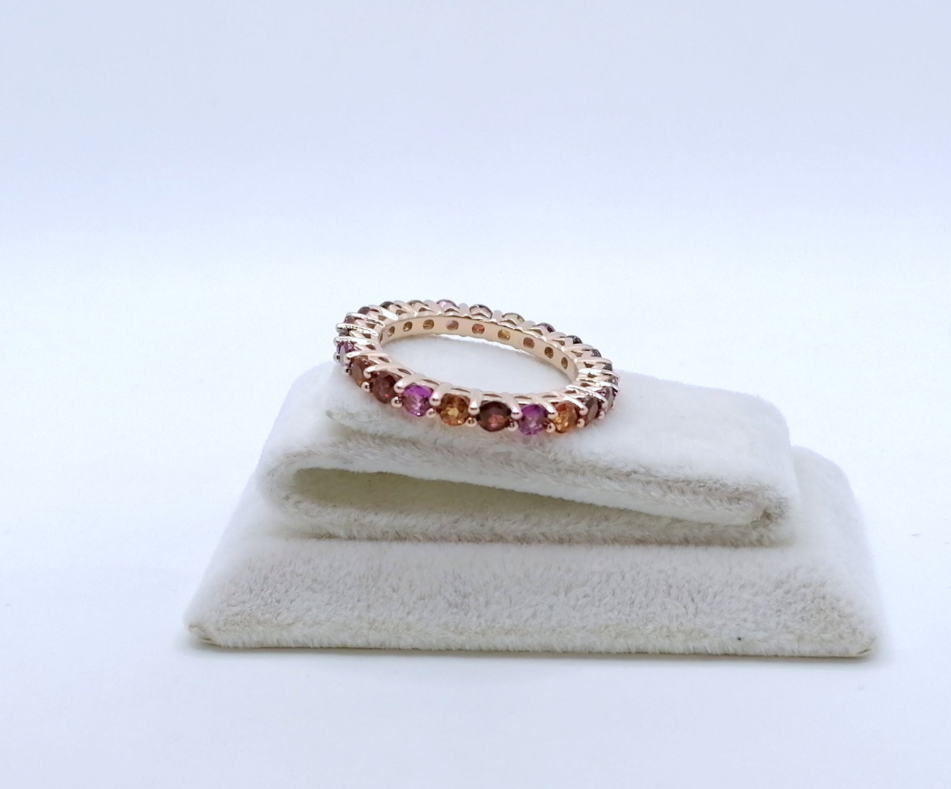 Damenring mit zahlreichen Tourmalin Edelsteinen. Der Ring ist aus 925er Silber Vergoldet gefertigt.
