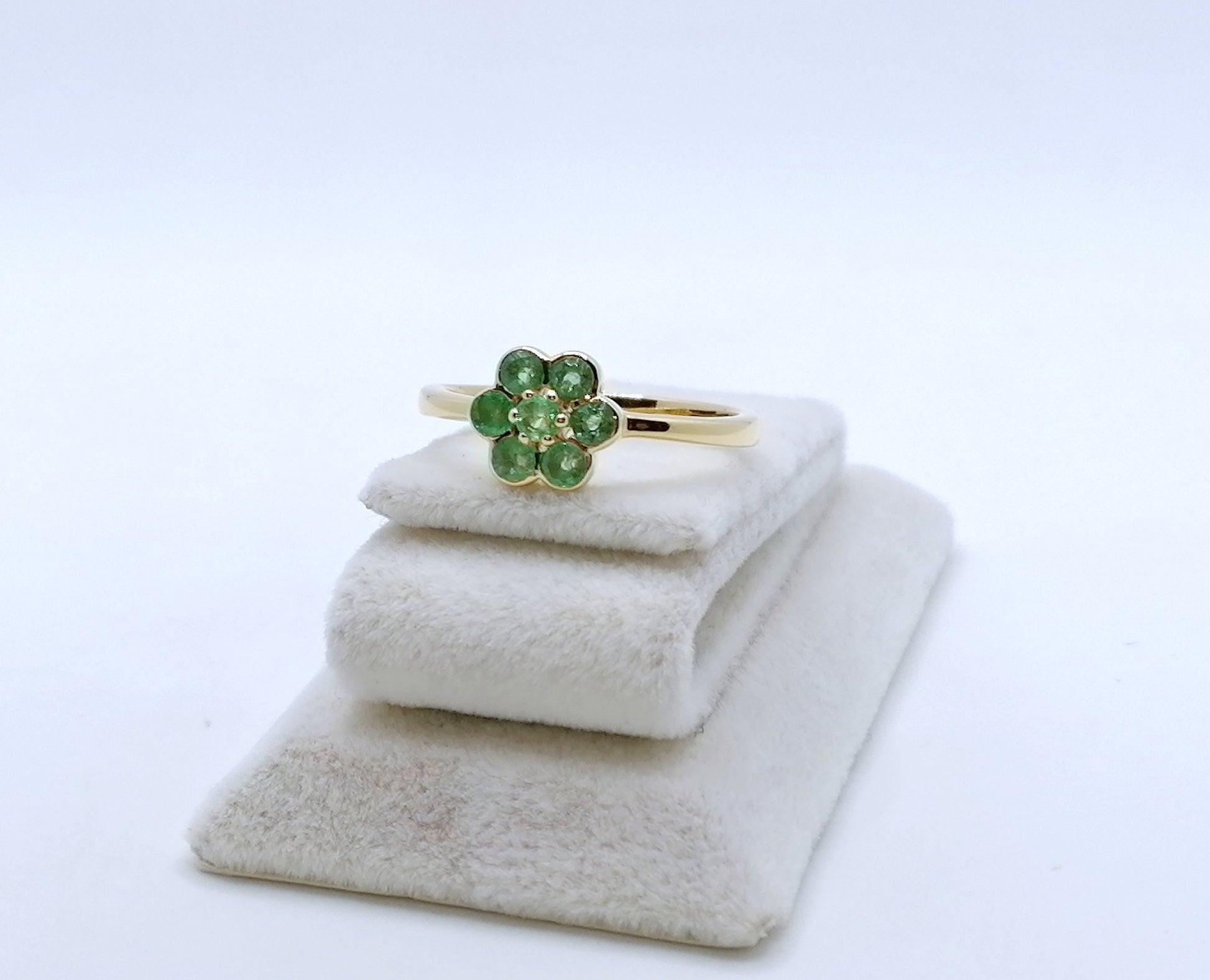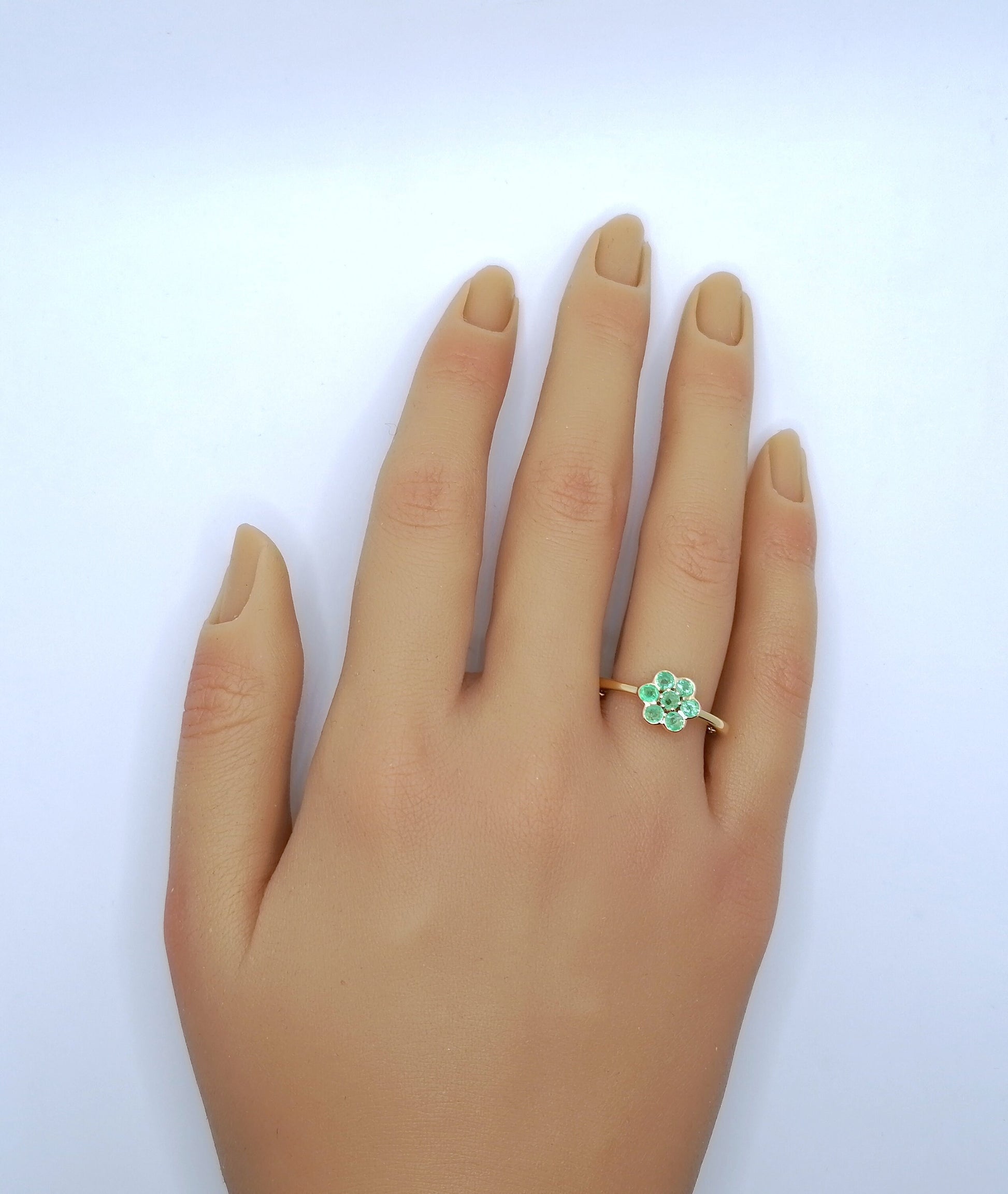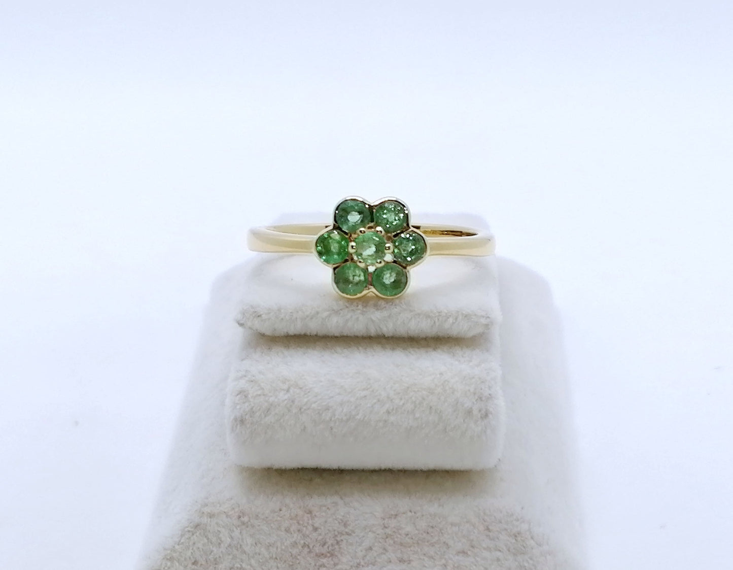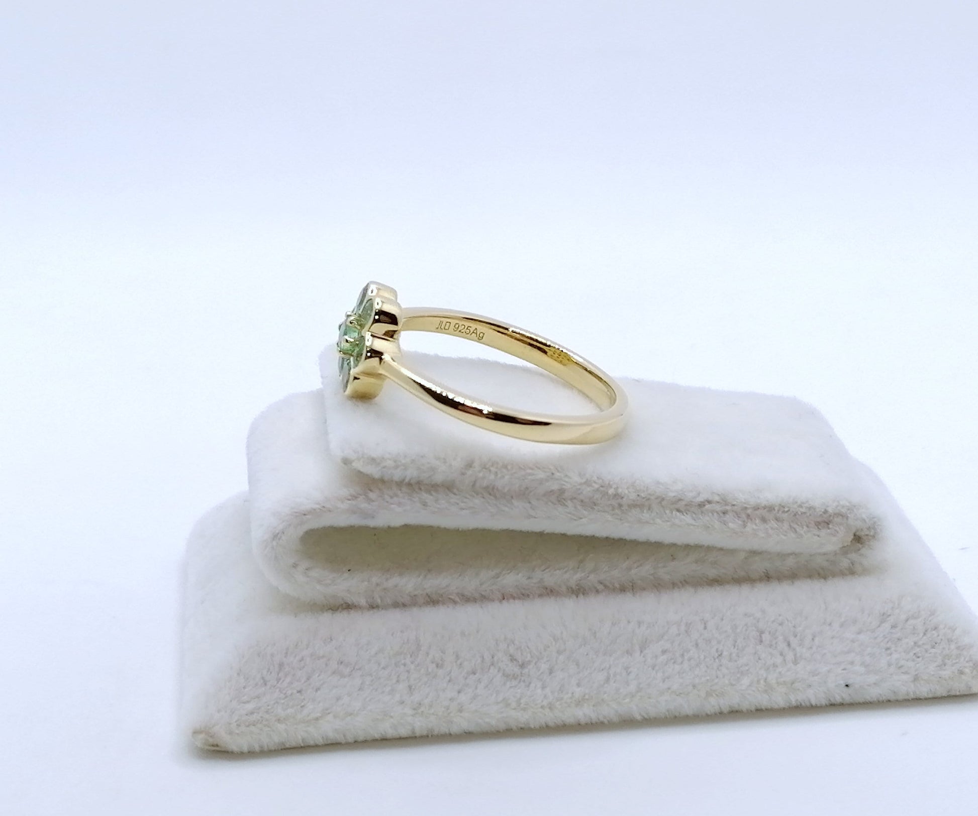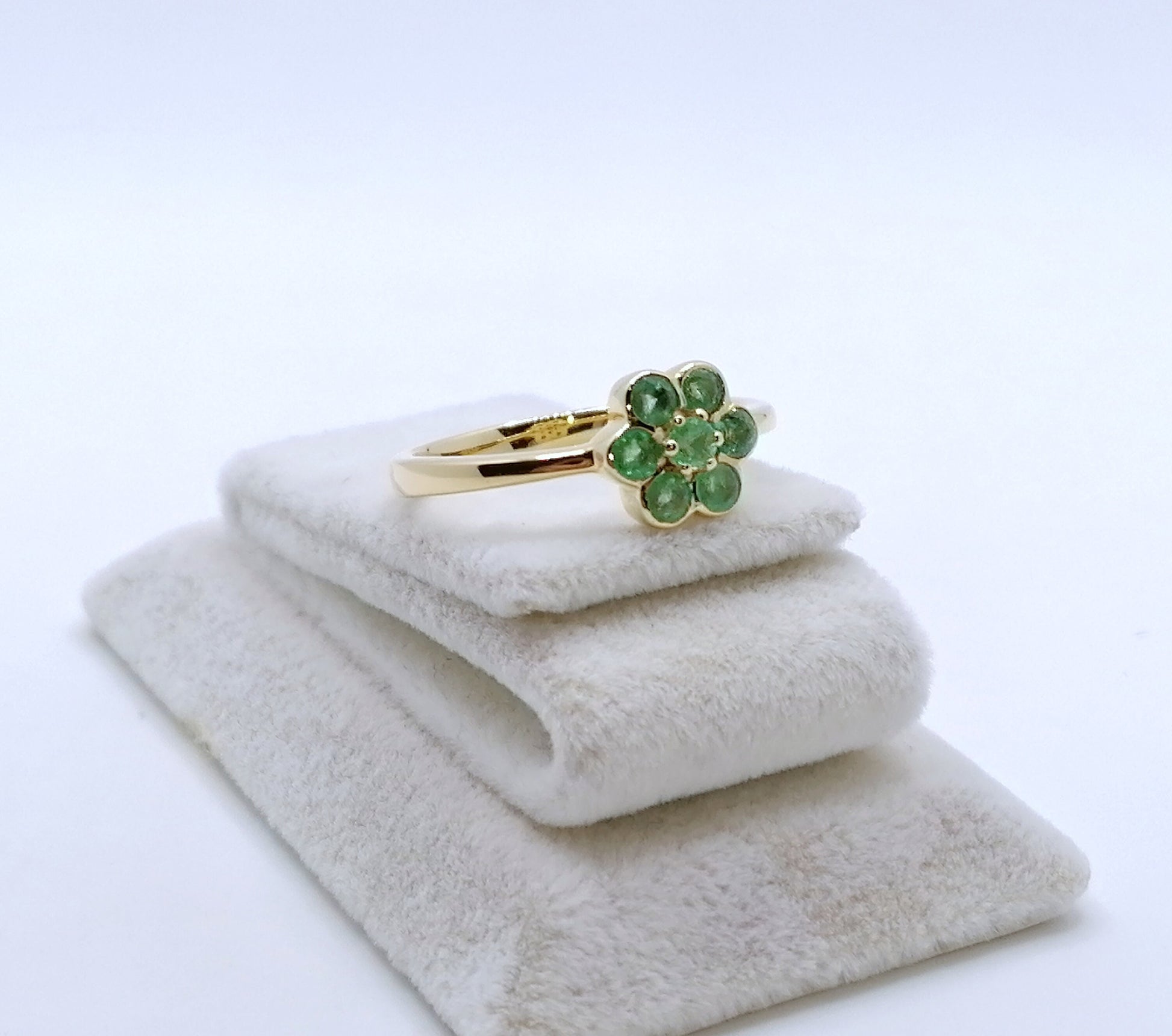 Damenring mit Smaragd Edelsteinen. Der Ring ist aus 925er vergoldetem Silber gefertigt.