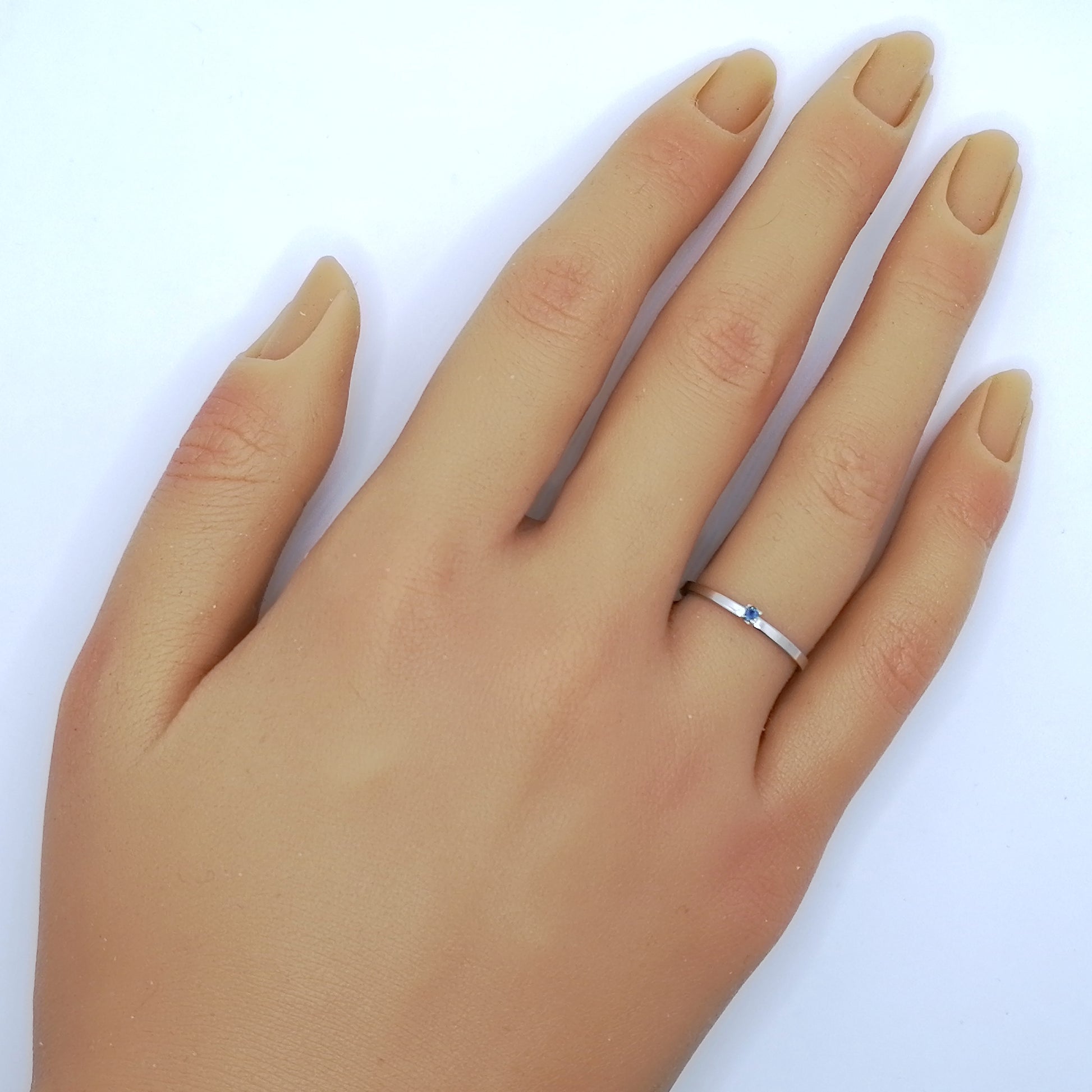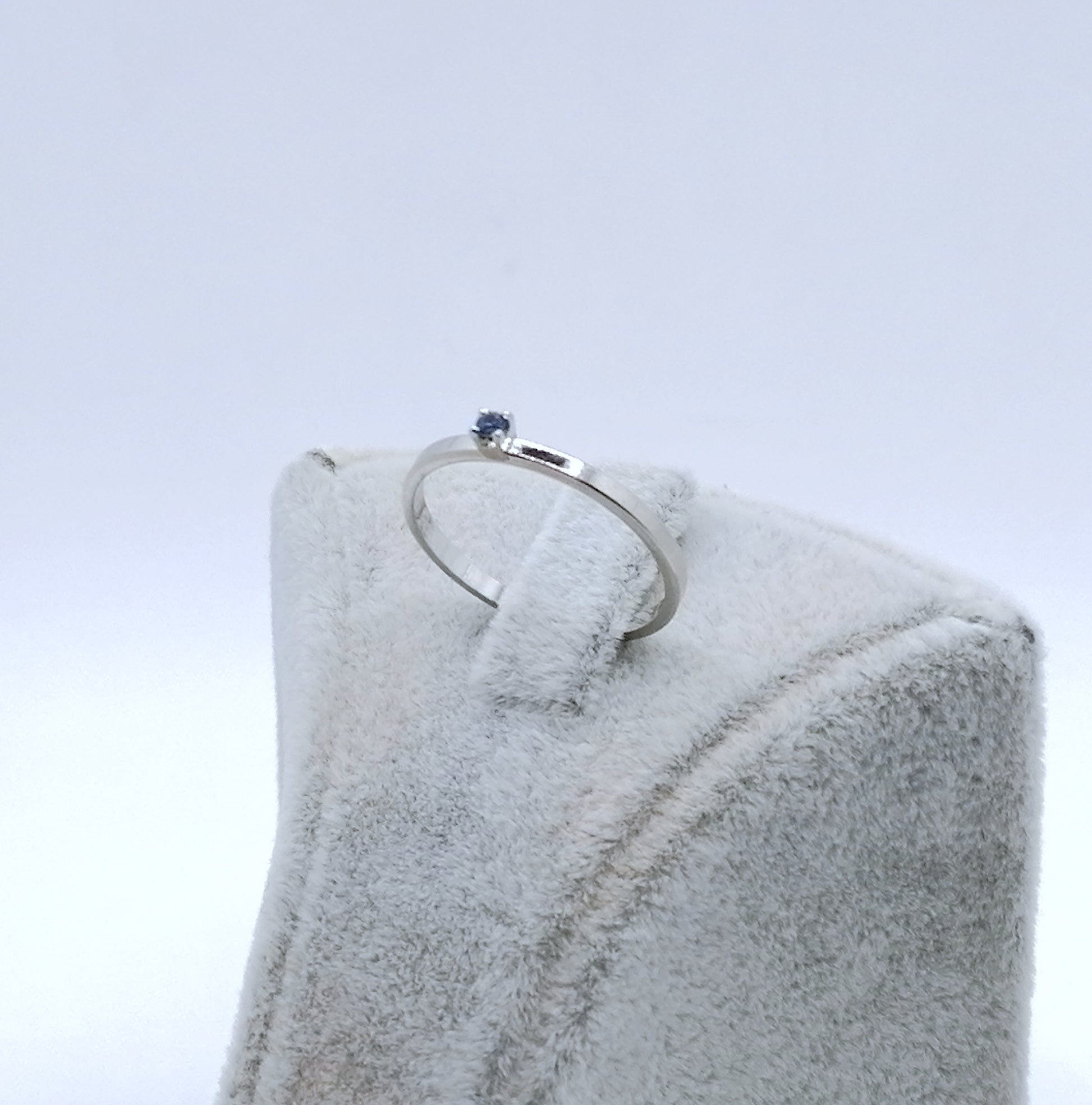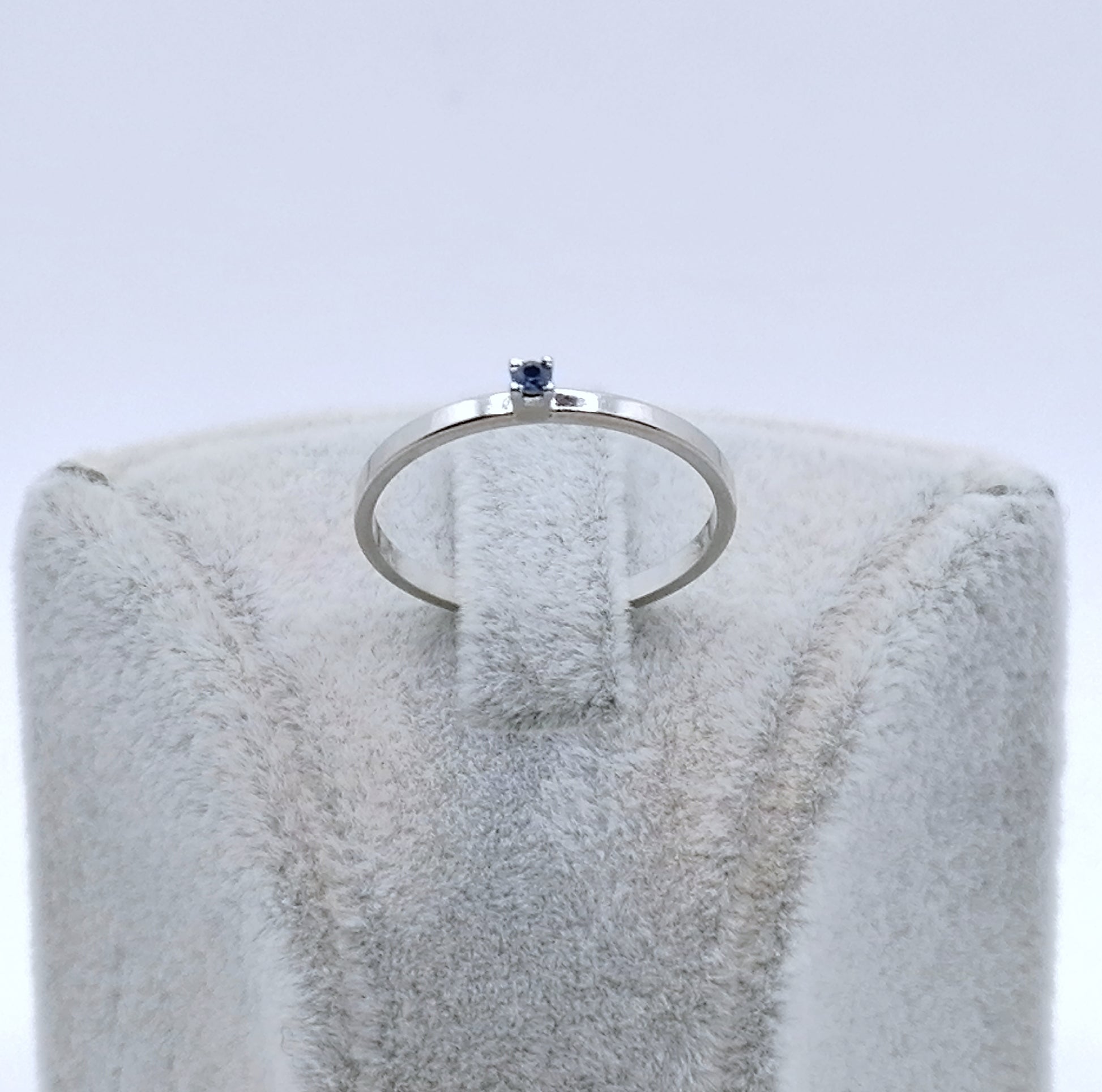 Feiner Weißgold Damenring mit einem blauen Spinell. Der Ring ist aus 585er 14 karat Gold gefertigt.