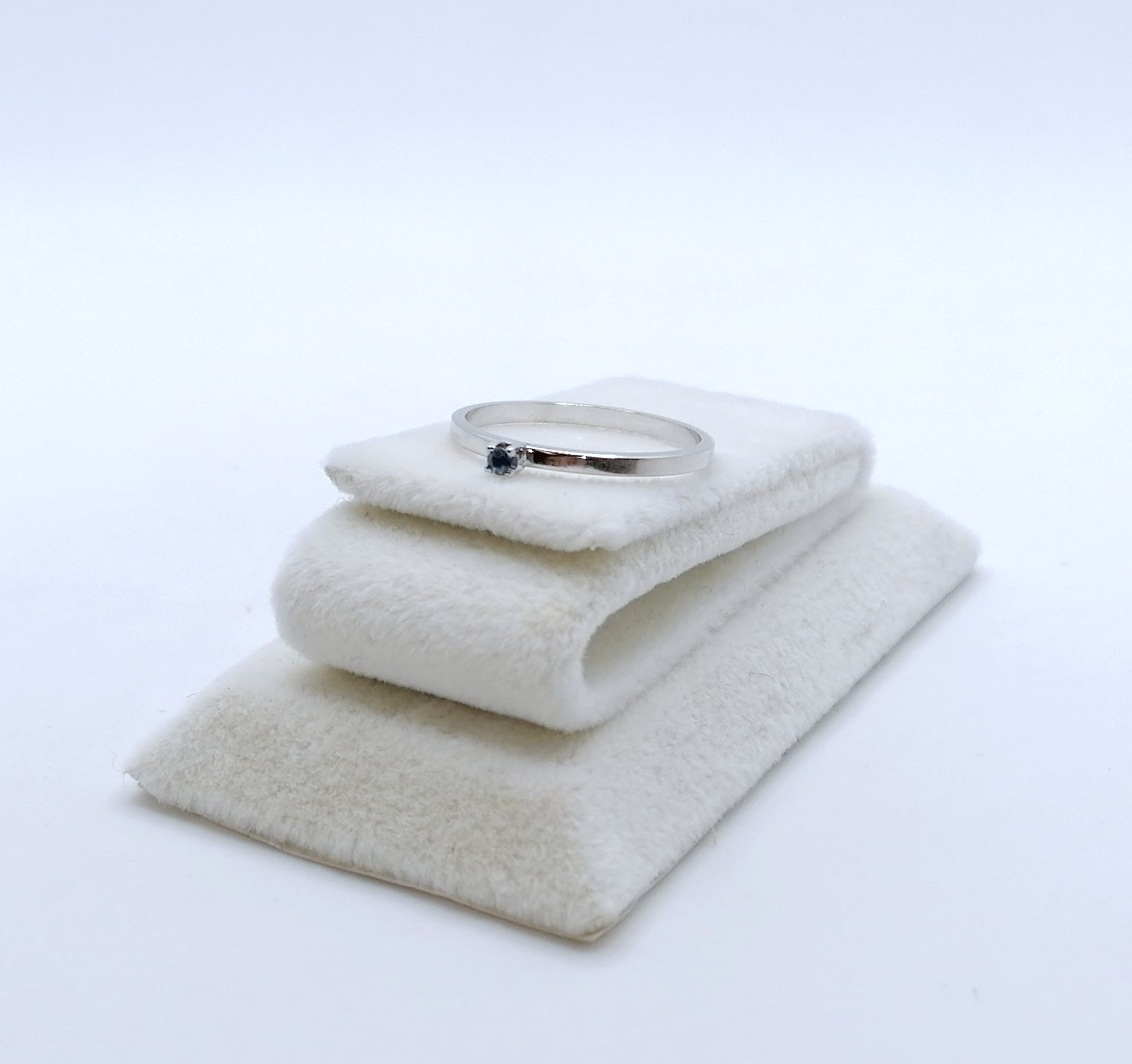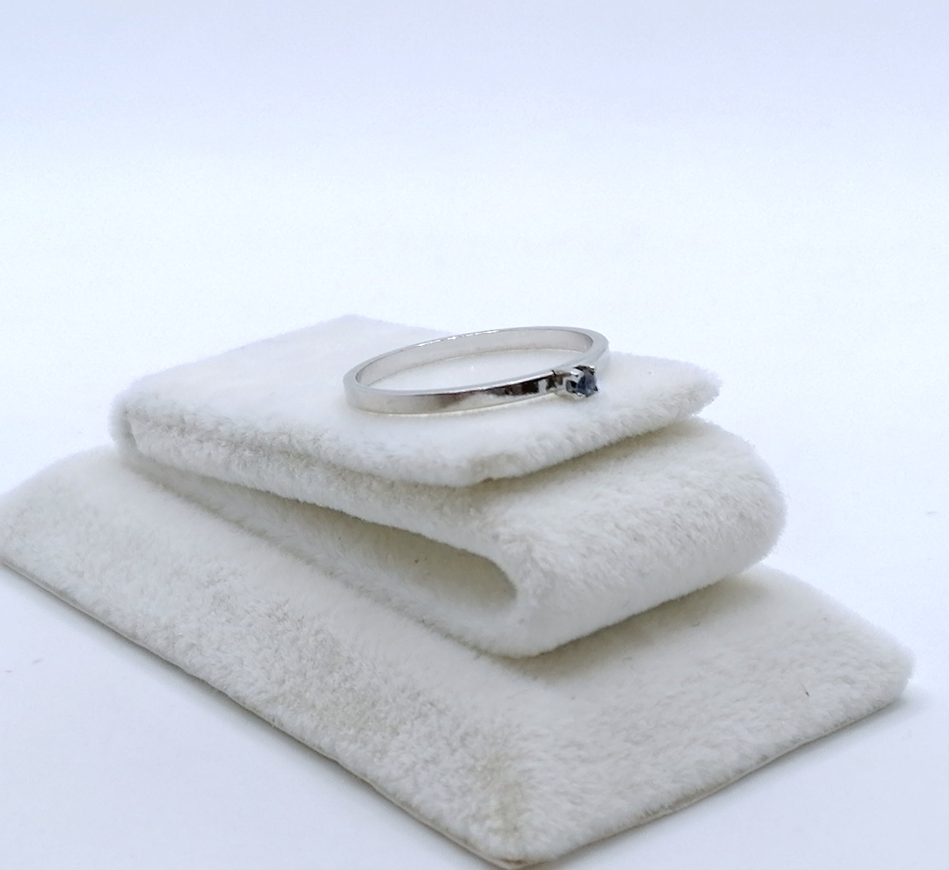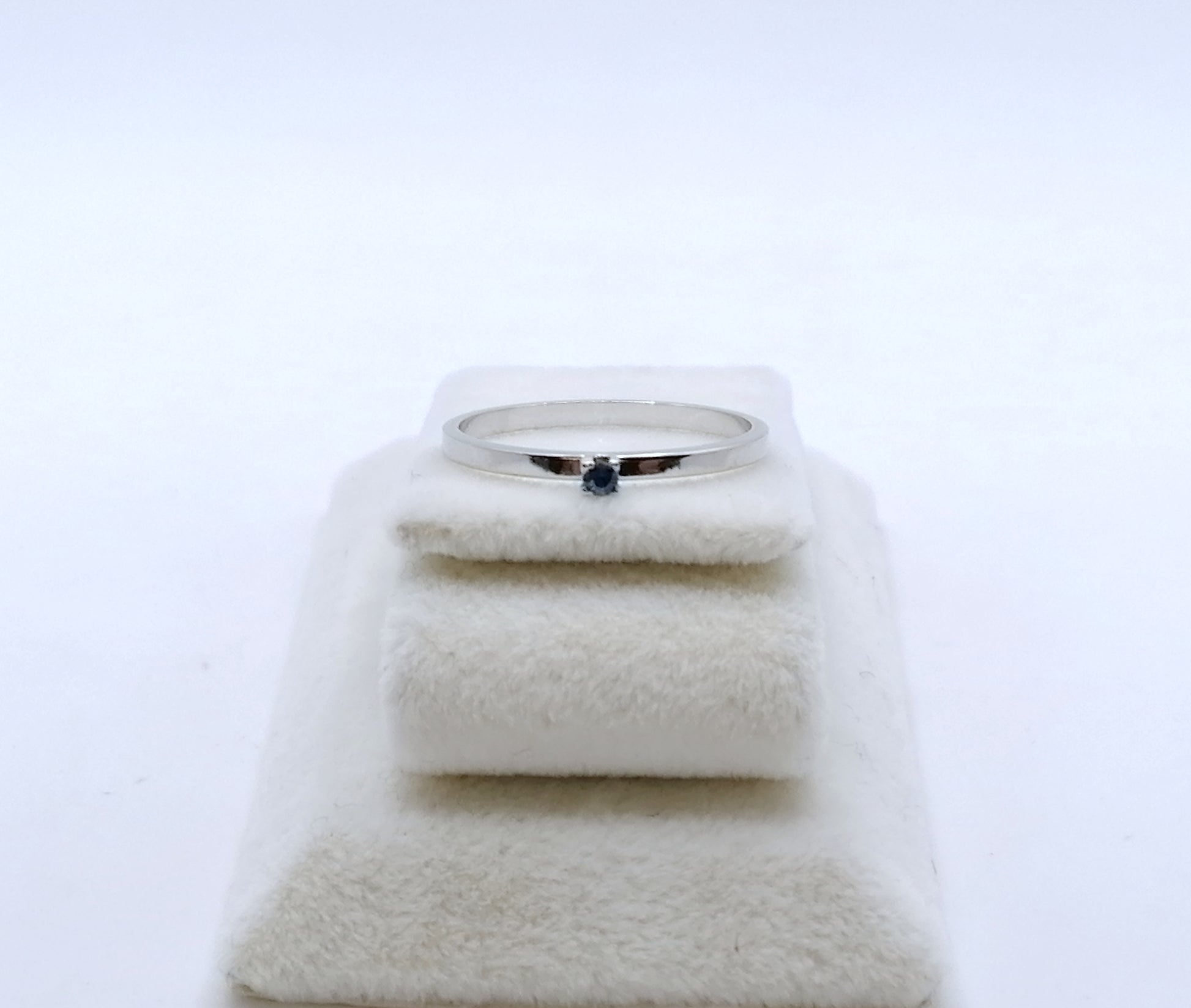 Feiner Weißgold Damenring mit einem blauen Spinell. Der Ring ist aus 585er 14 karat Gold gefertigt.