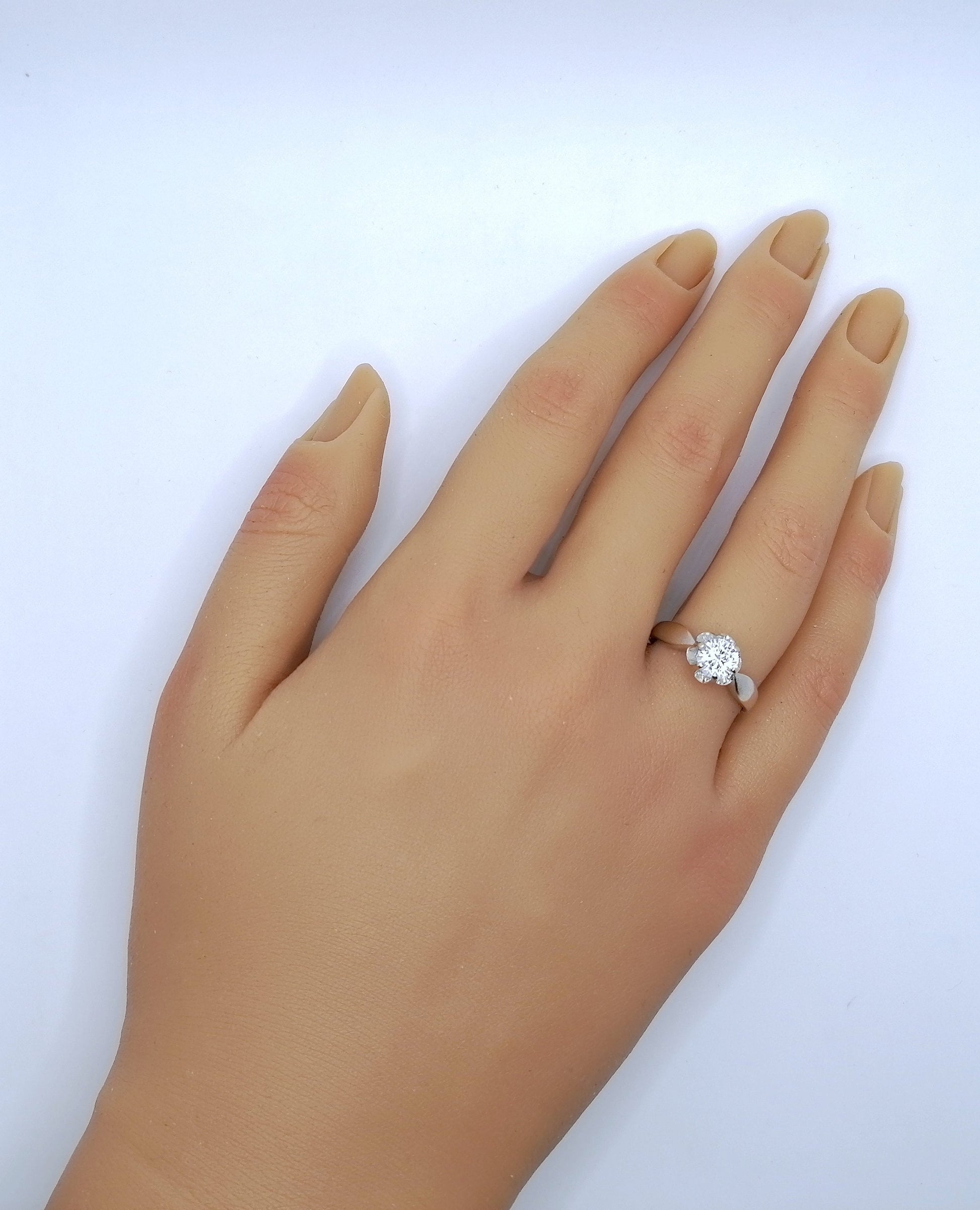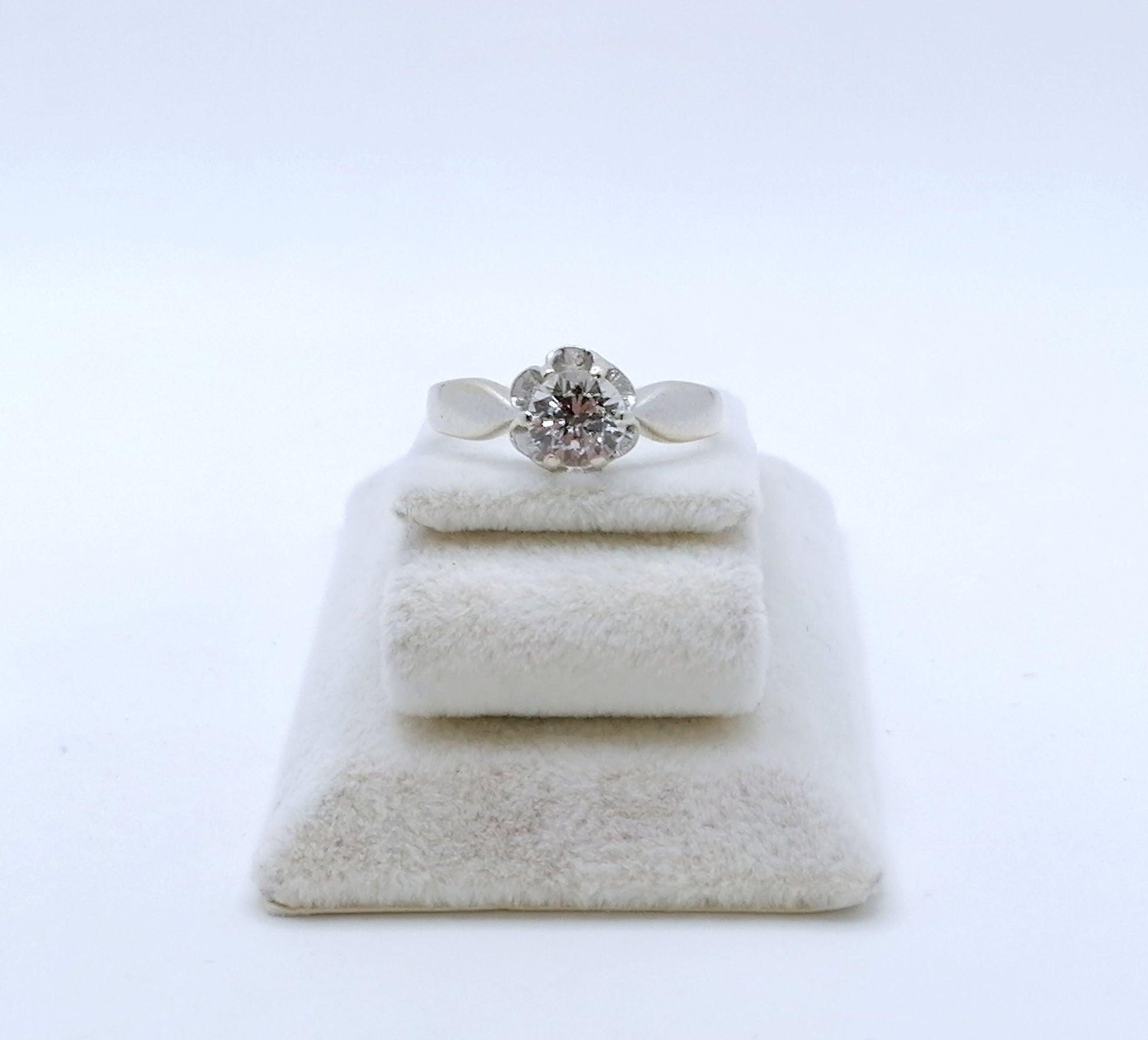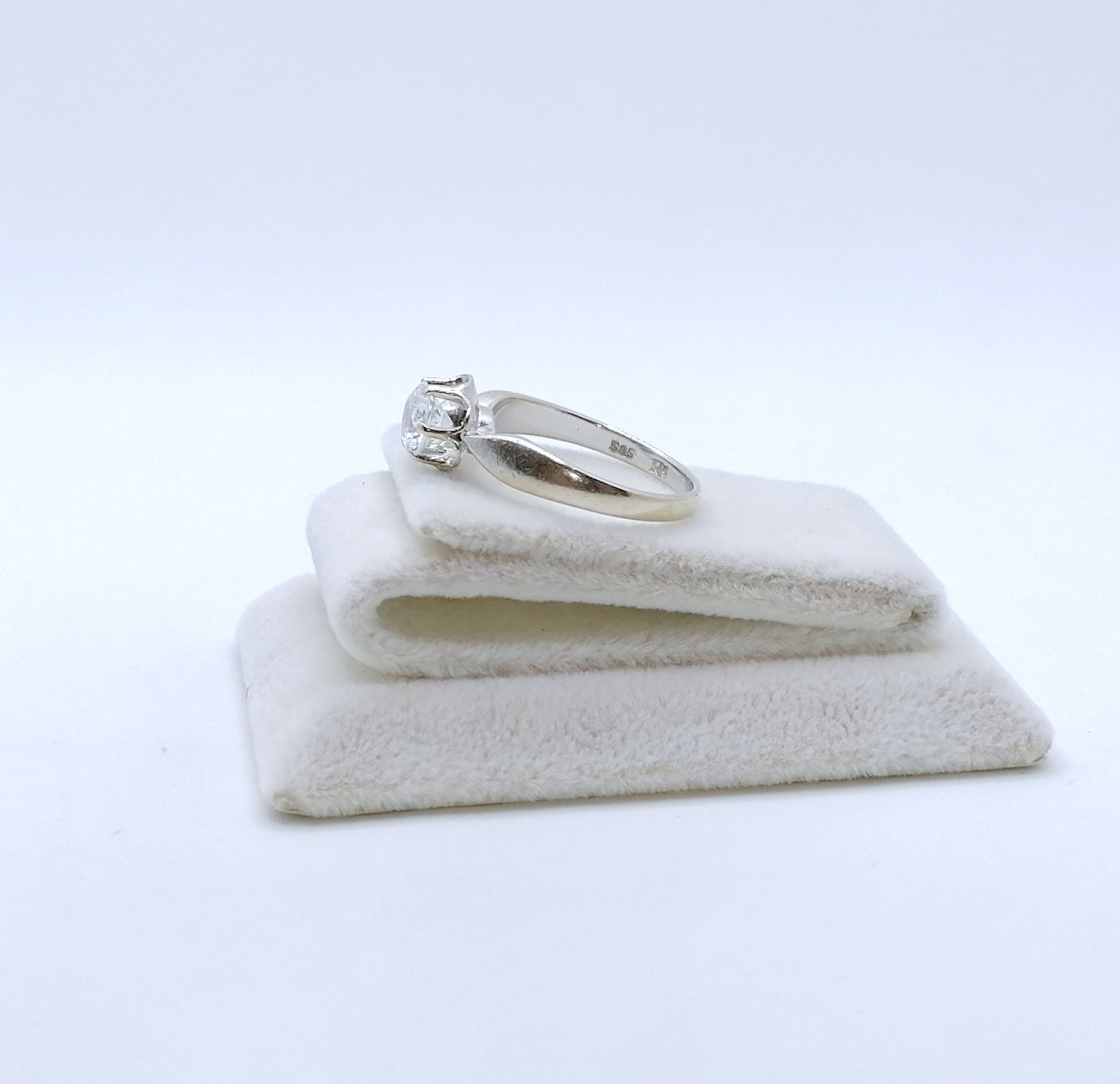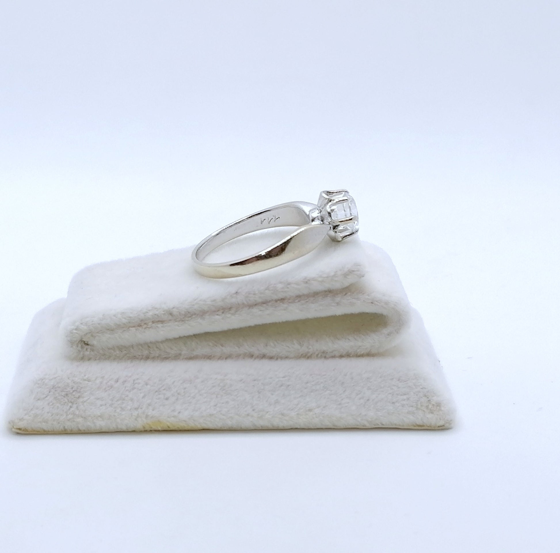Vintage Solitär Goldring mit einem funkelnden Zirkonia. Der Ring ist aus 585er 14 karat Weißgold gefertigt.