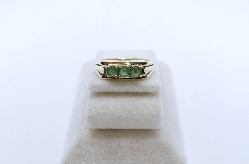 Vintage Smaragd Goldring. Dieses schlichte Schmuckstück ist aus 585er Gold gefertigt und wartet auf seine neue Besitzerin.
