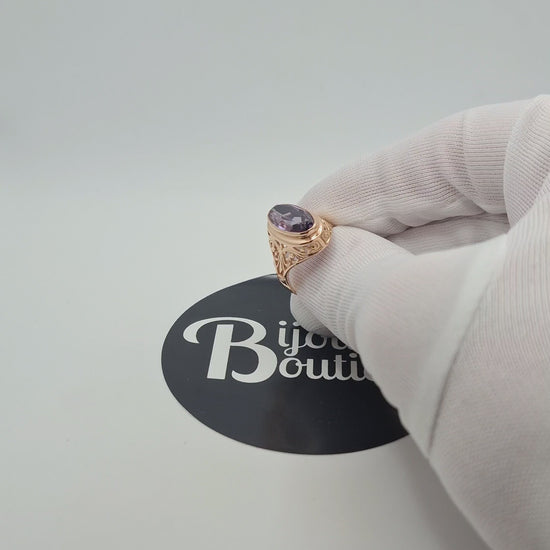 UdSSR Sowjet Damenring mit einem Alexandrit. Der Ring ist aus 583er 14 karat Rotgold gefertigt.