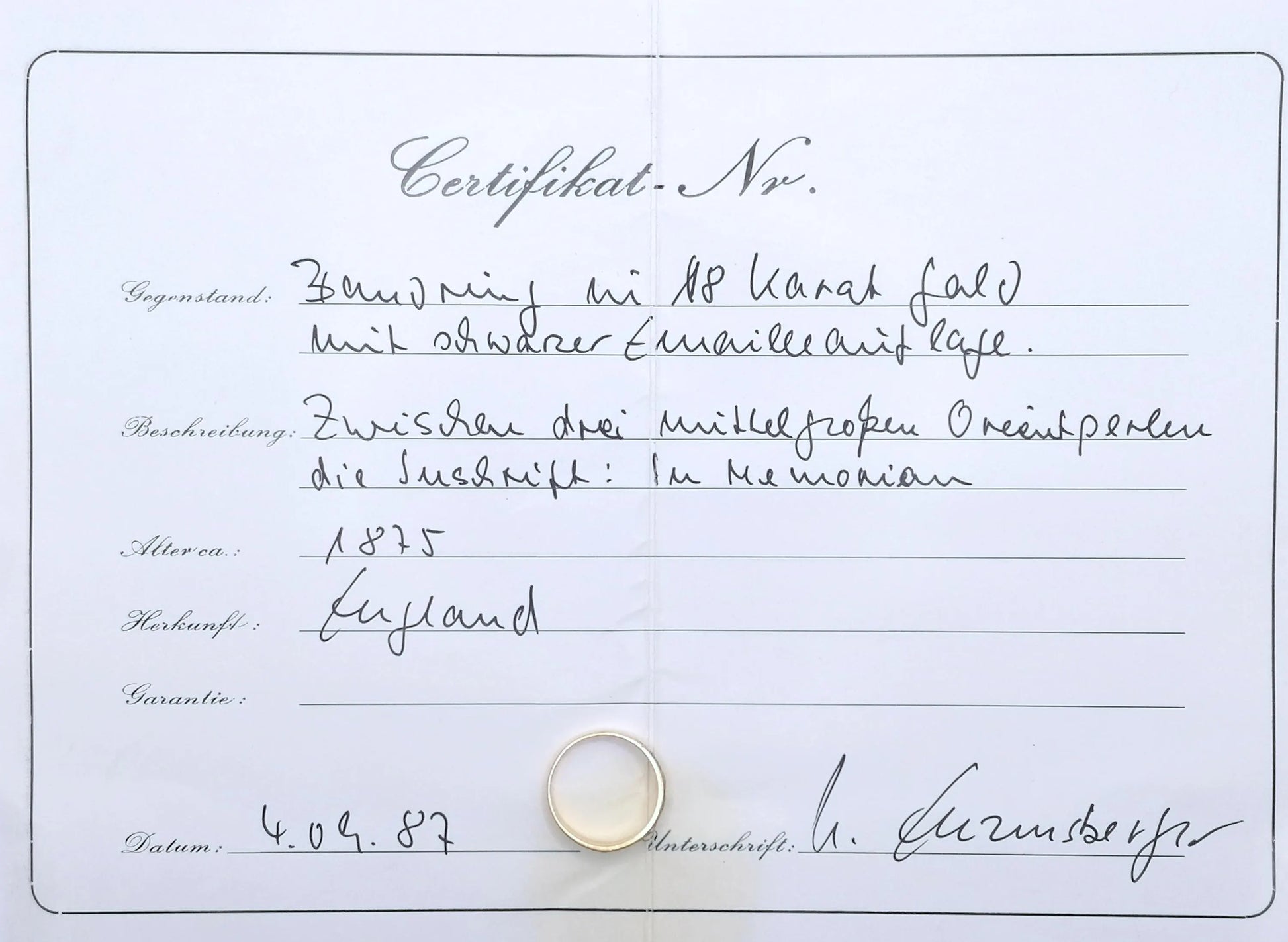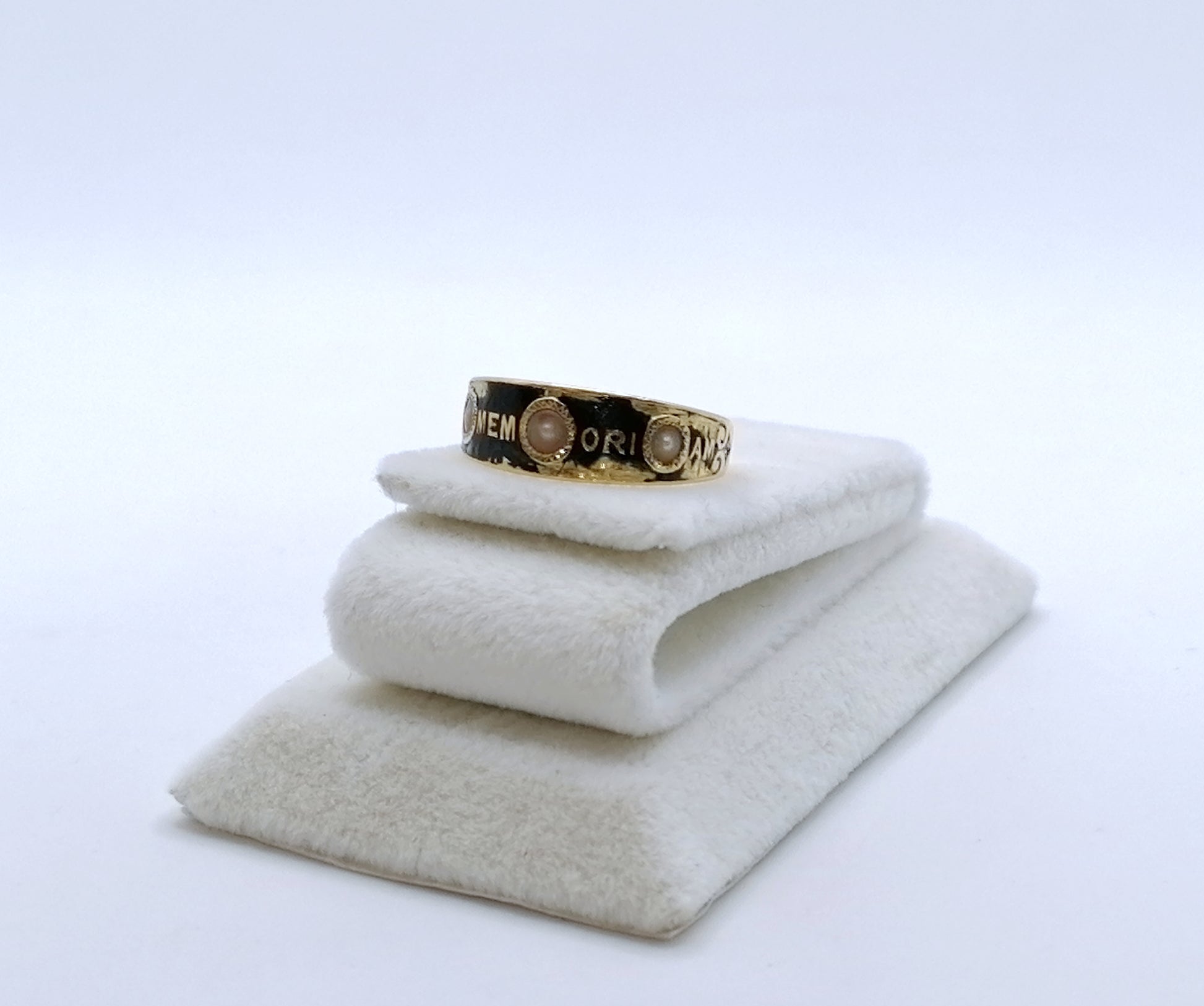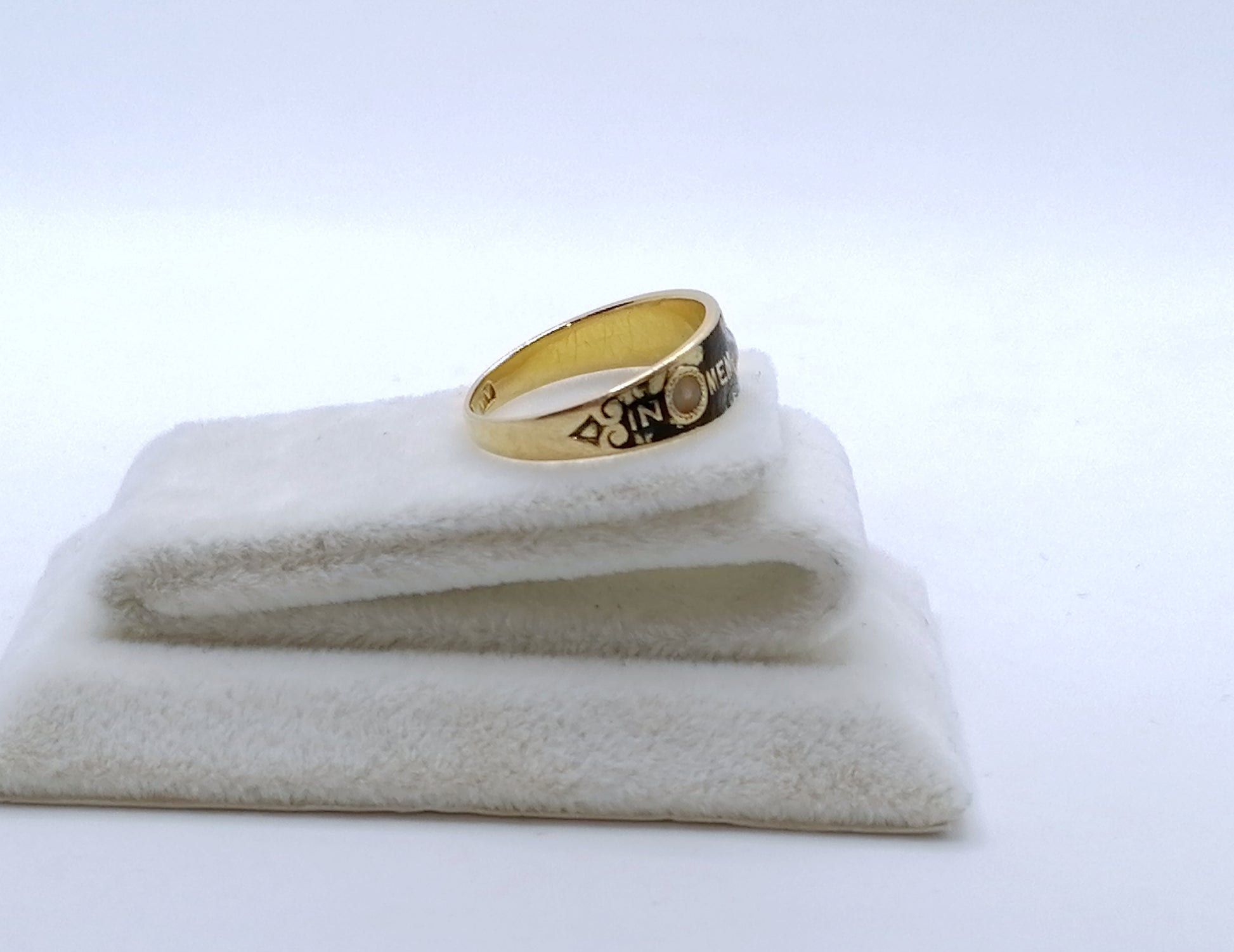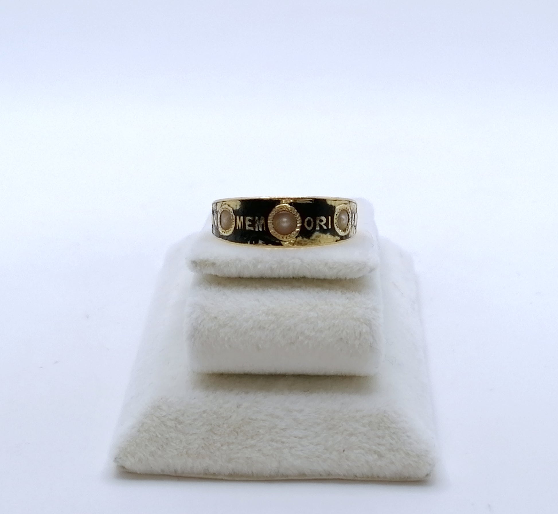 Viktorianischer Gedenkring um 1875 Antiker Goldring 750er mit Barockperlen Gr. 51