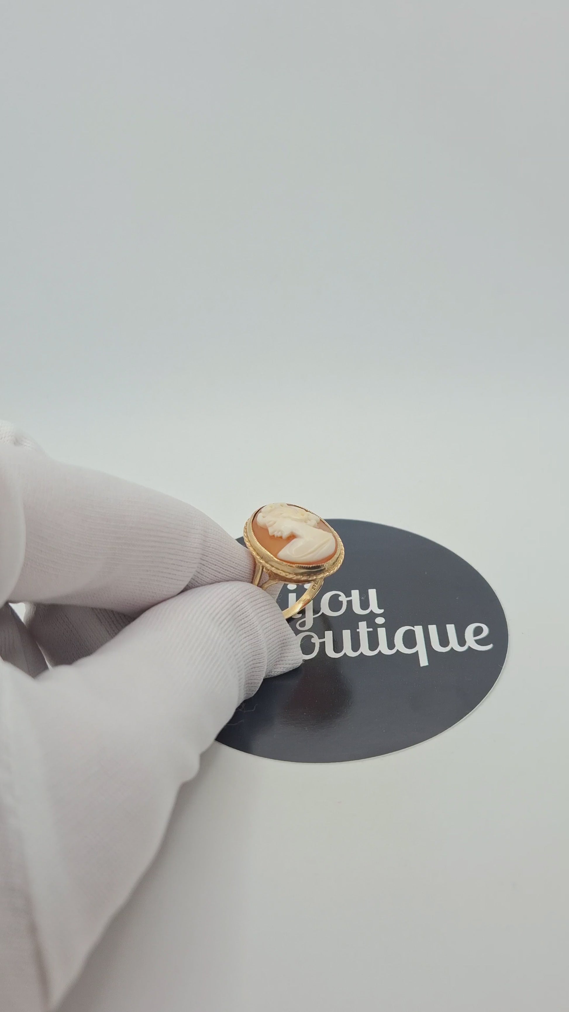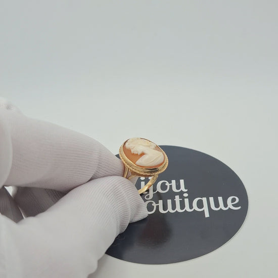 Englische Gemme Gold Damenring. Der Ring ist aus 375er 9 Karat Gold gefertigt.