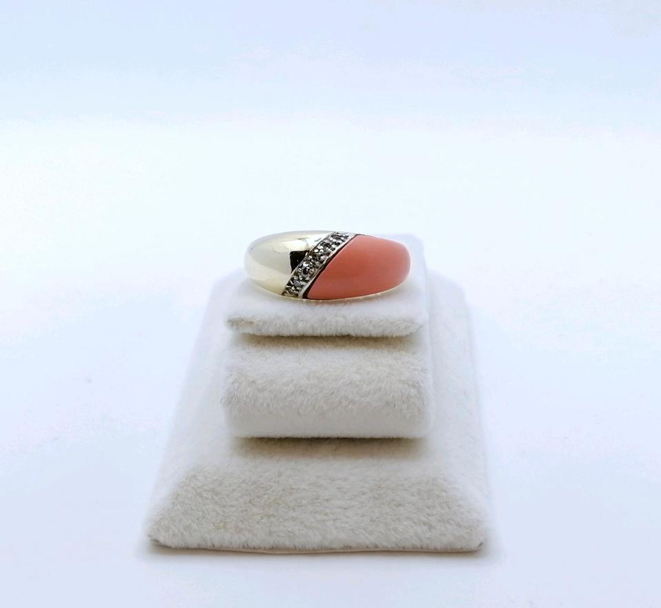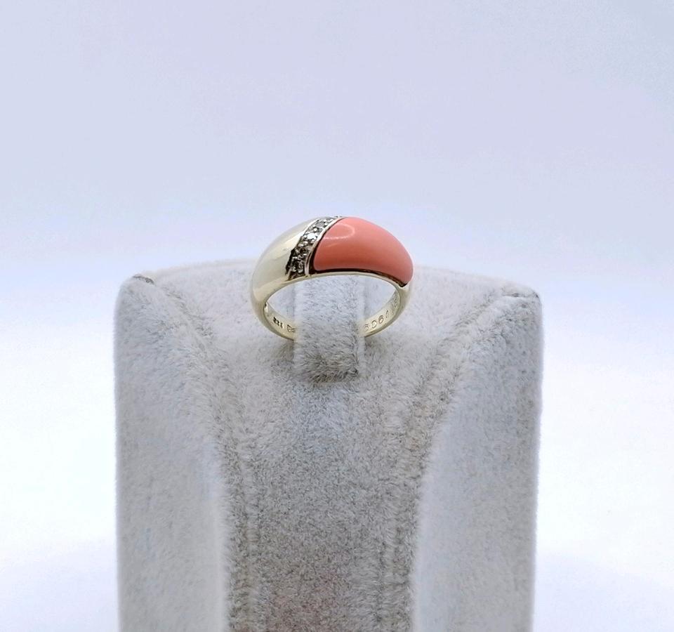 Vintage Gold Damenring mit Koralle und Diamantsplitter 333er Goldring Gr. 50
