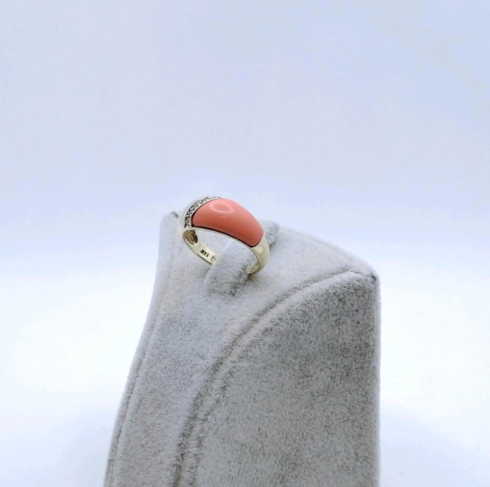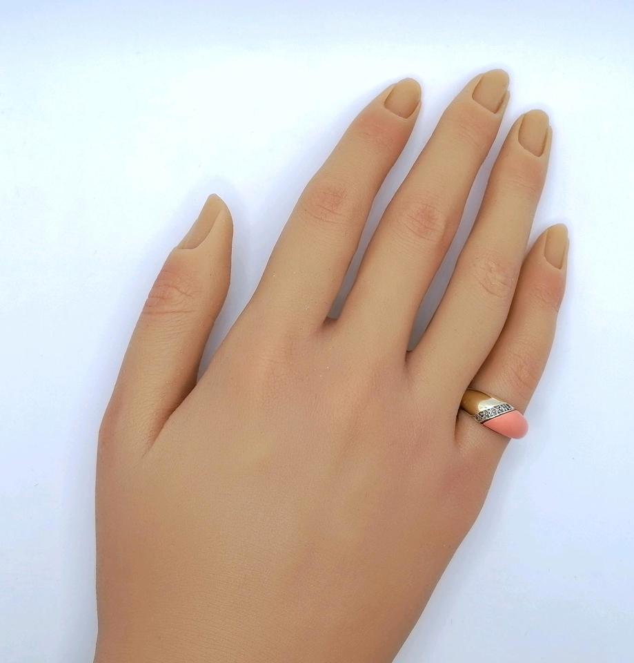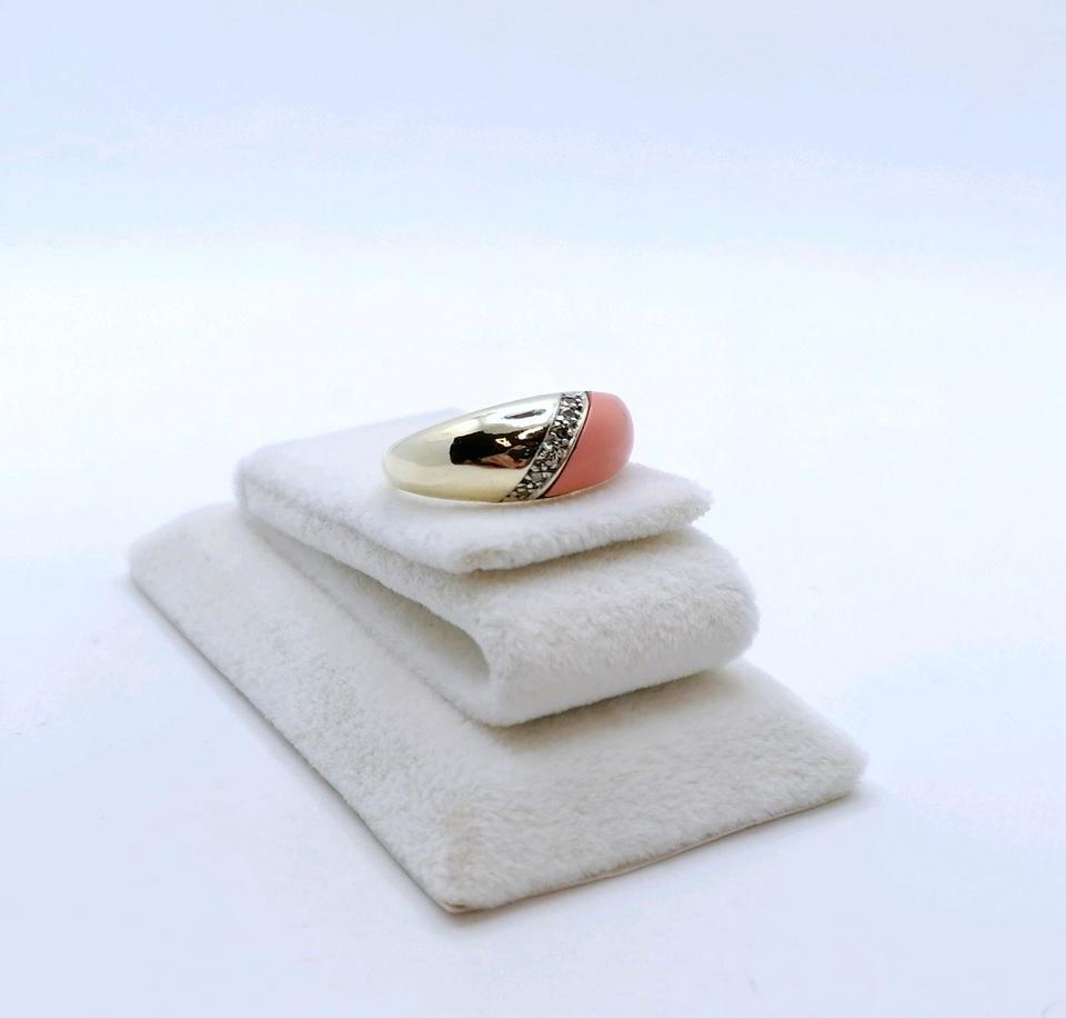 Vintage Gold Damenring mit Koralle und funkelnden Diamantsplitter. Das Schmuckstück ist aus 333er 8 Karat Gelbgold gefertigt.