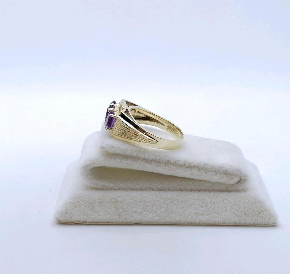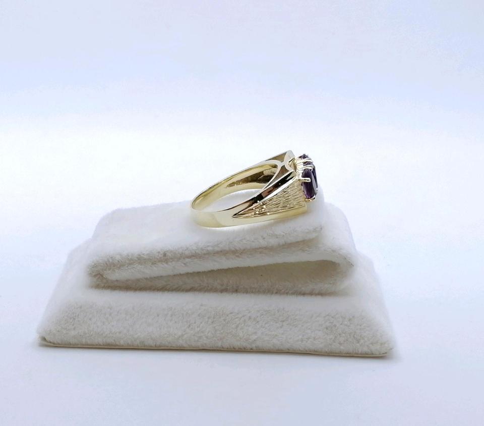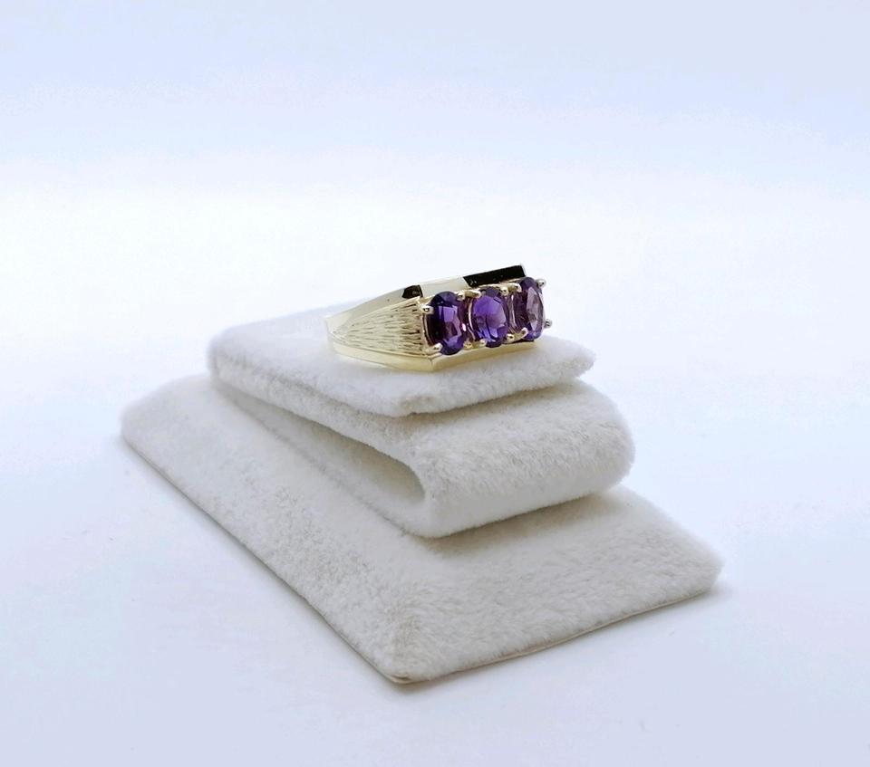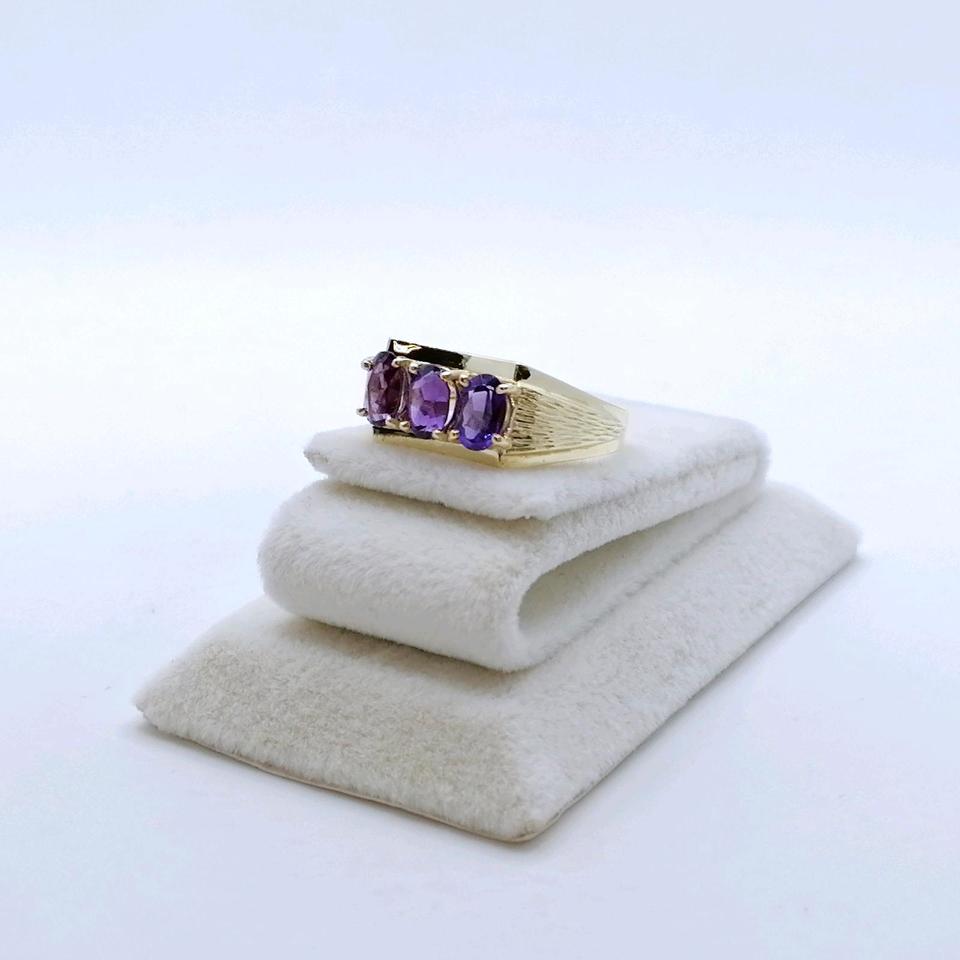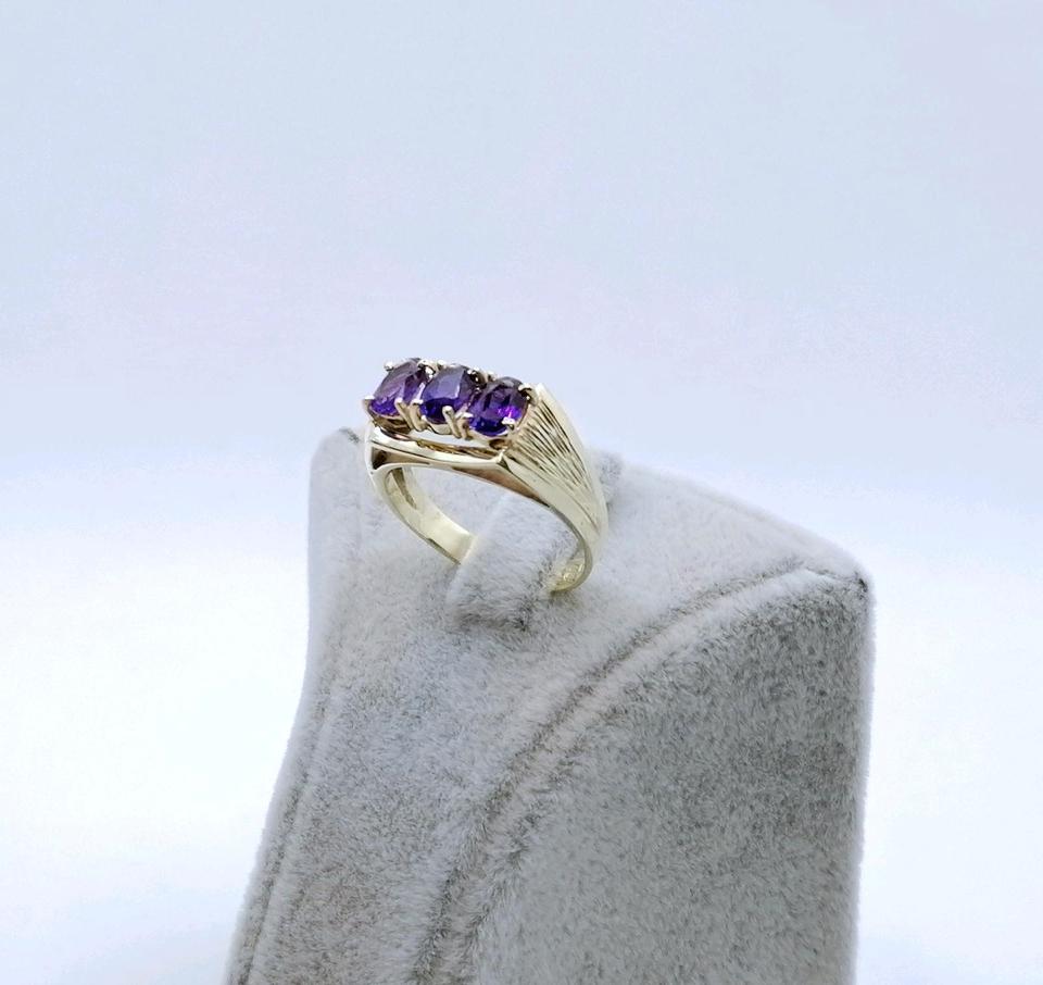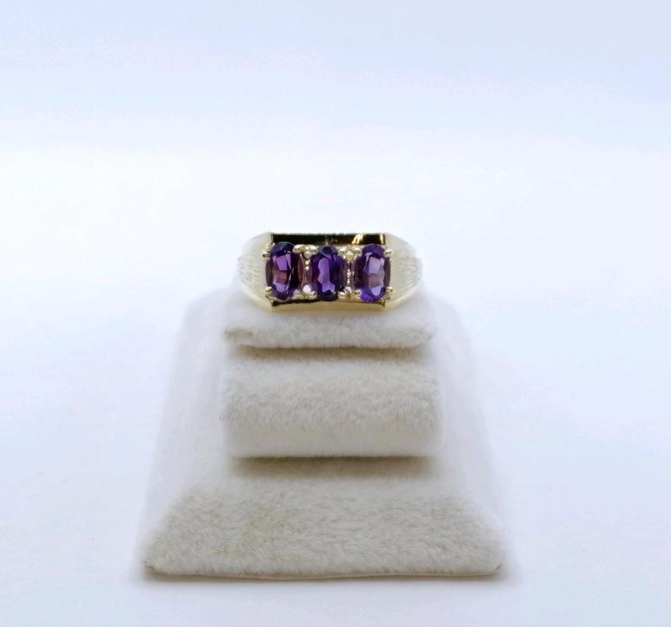 Vintage Gold Damenring mit drei Amethysten. Der Ring ist aus 585er 14 karat Gelbgold gefertigt.