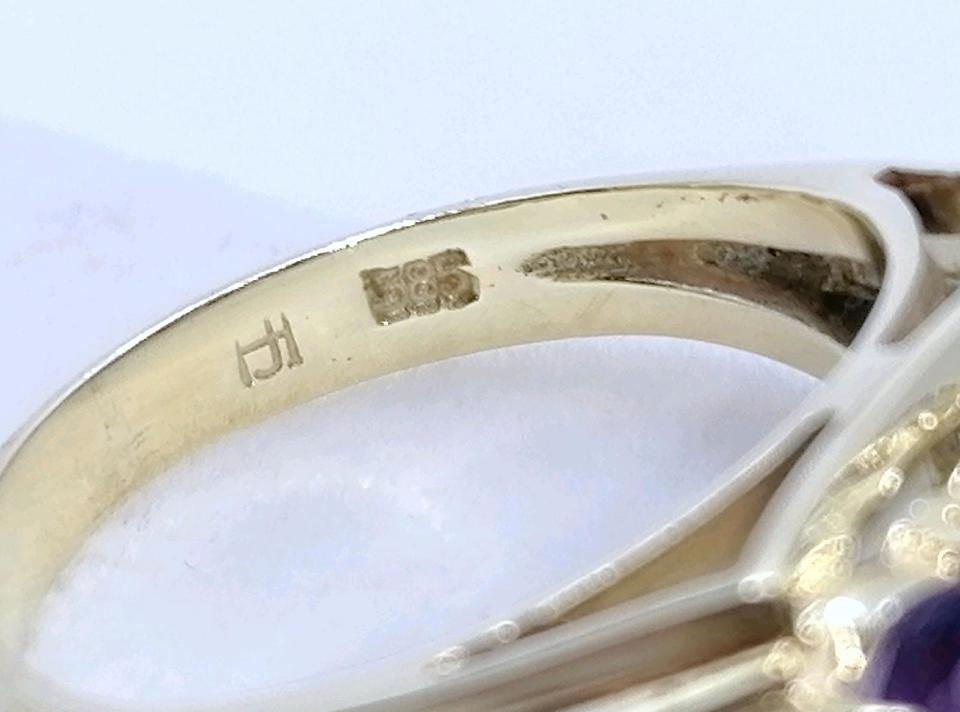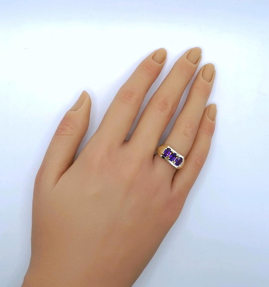 Vintage Gold Damenring mit drei Amethysten, 585er Goldring Gr. 56
