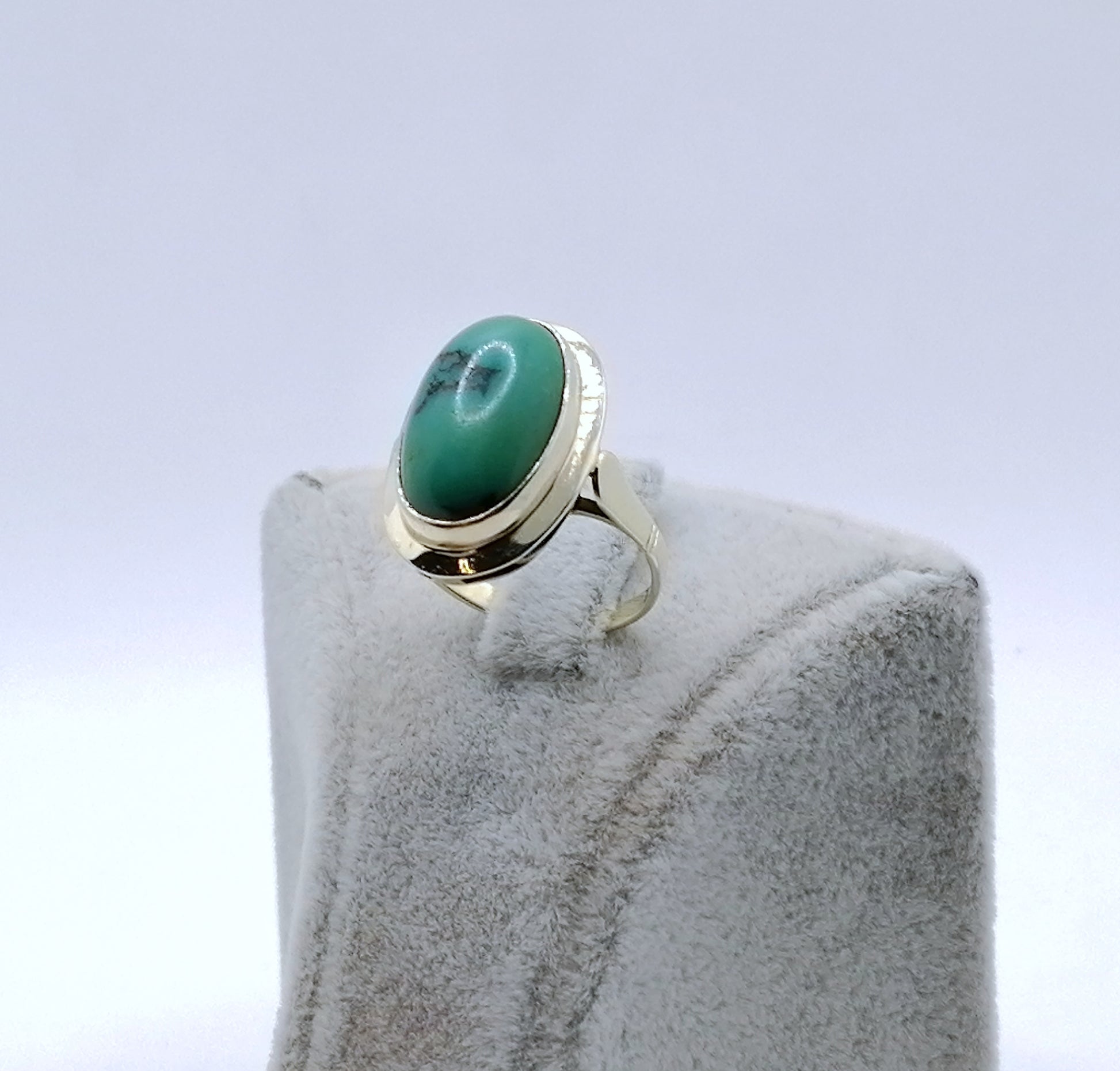 Vintage Gold Damenring mit einem Türkisstein. Der Ring ist aus 333er 8 Karat Gold gefertigt.