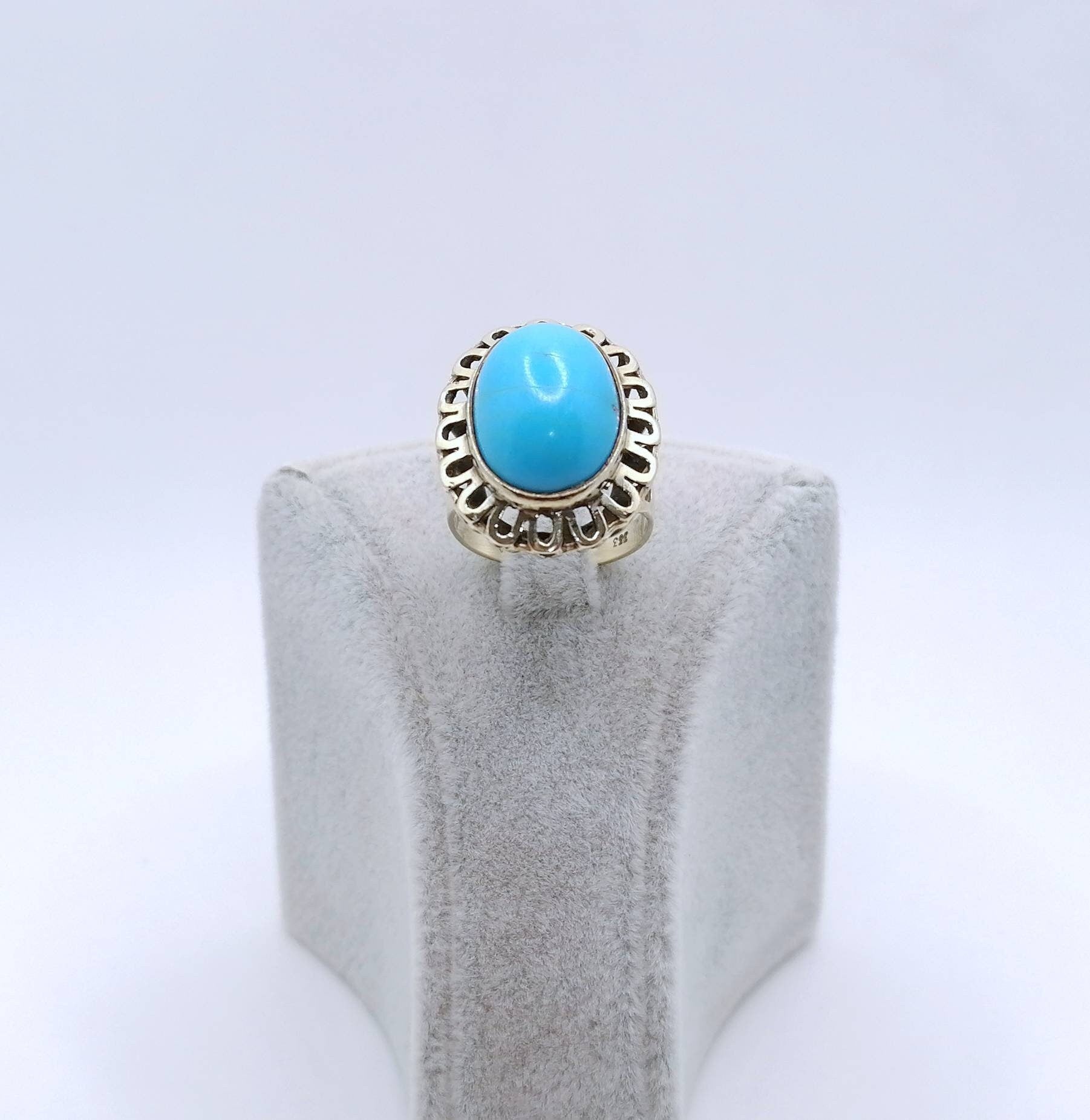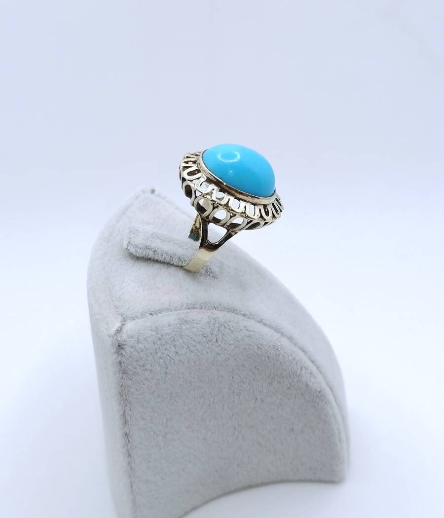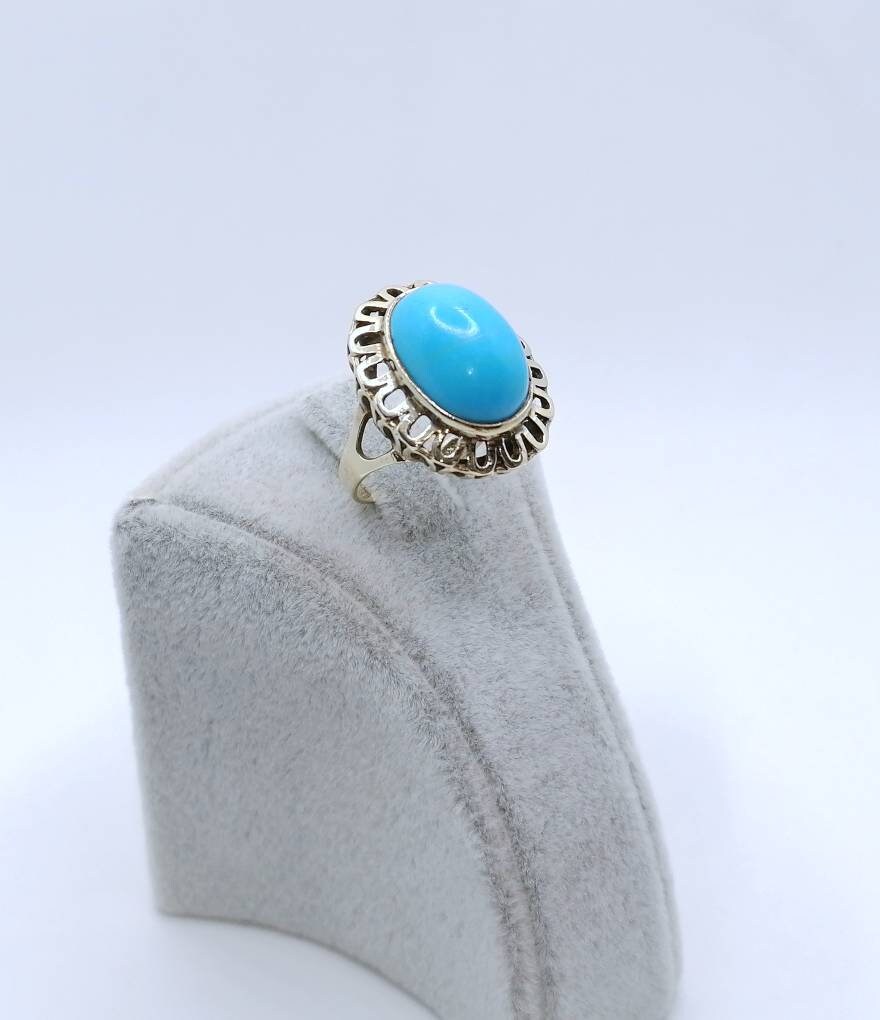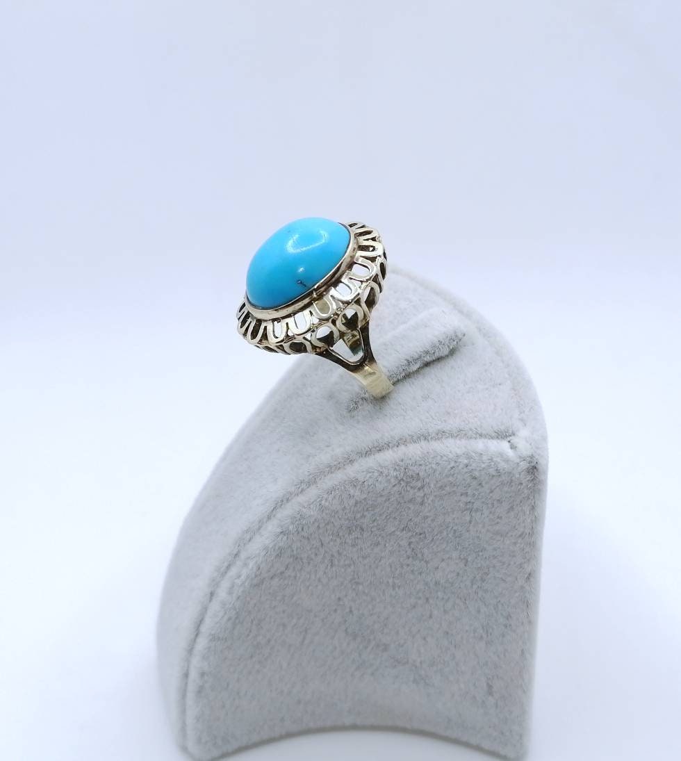 Ein Vintage Gold Damenring mit einem Türkisstein. Der Ring ist aus 333er 8 Karat Gold gefertigt.