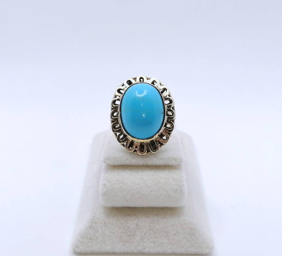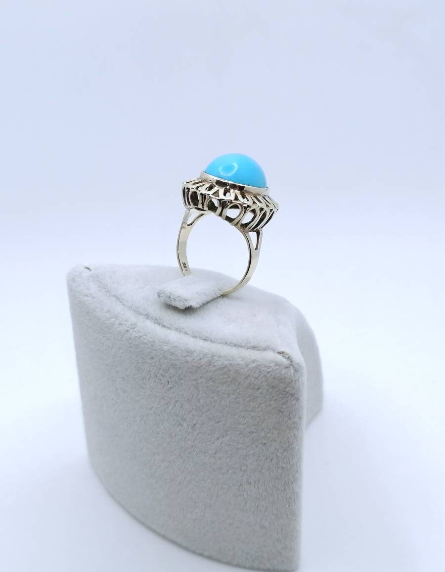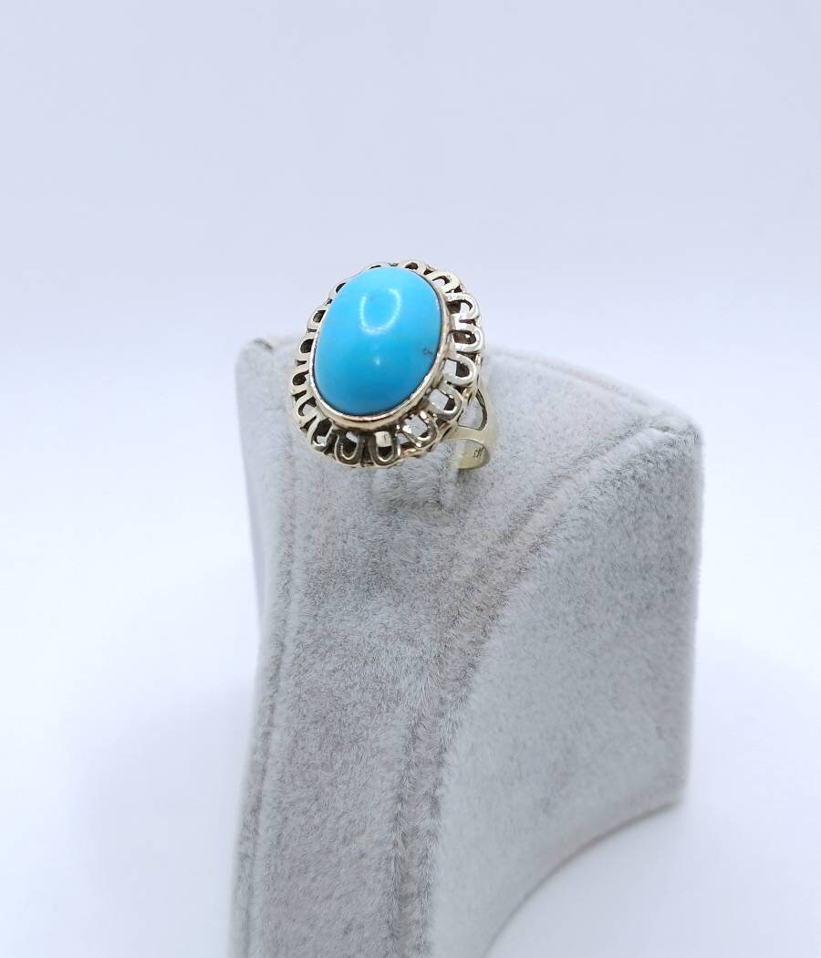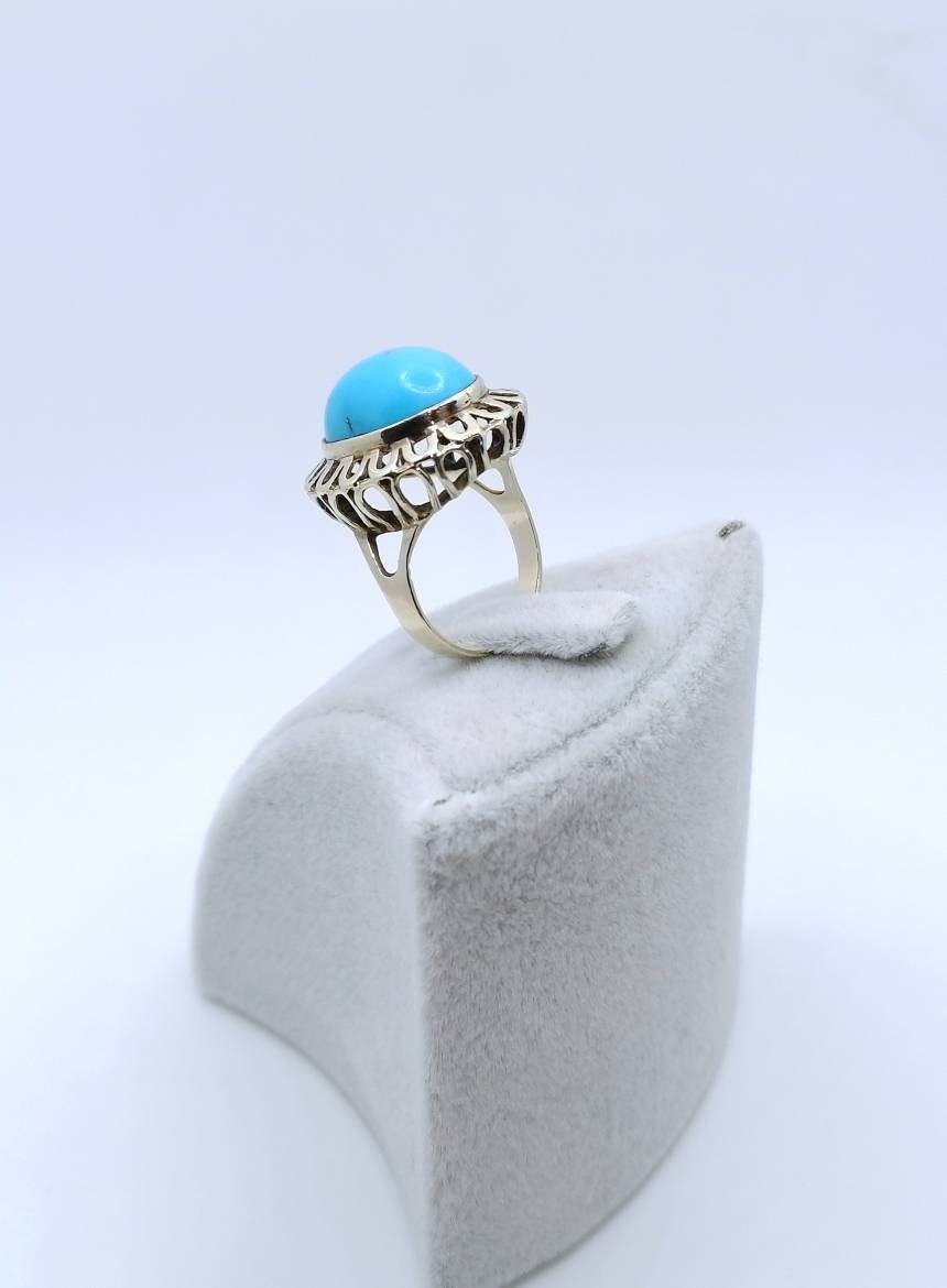Ein Vintage Gold Damenring mit einem Türkisstein. Der Ring ist aus 333er 8 Karat Gold gefertigt.