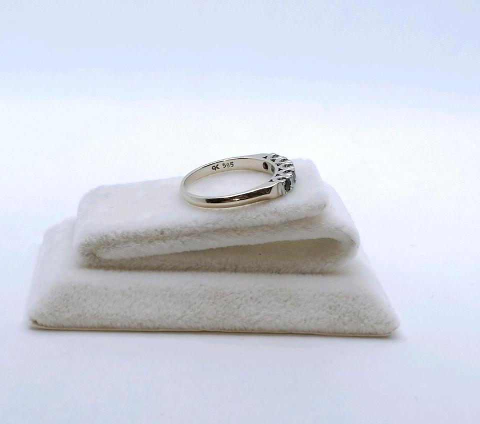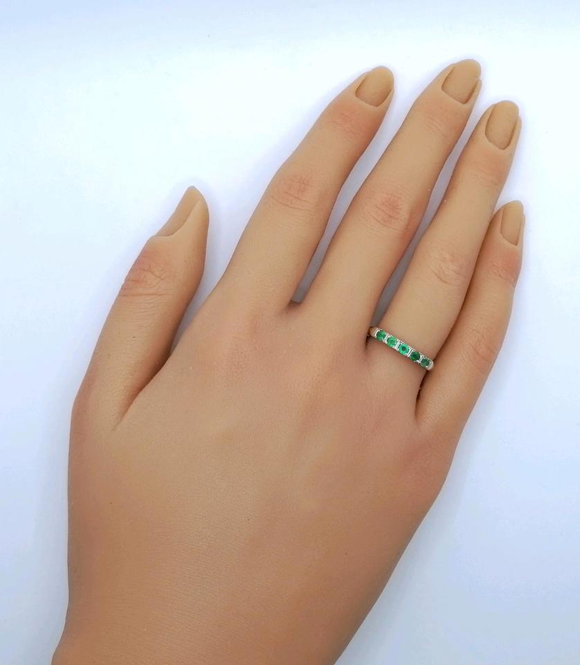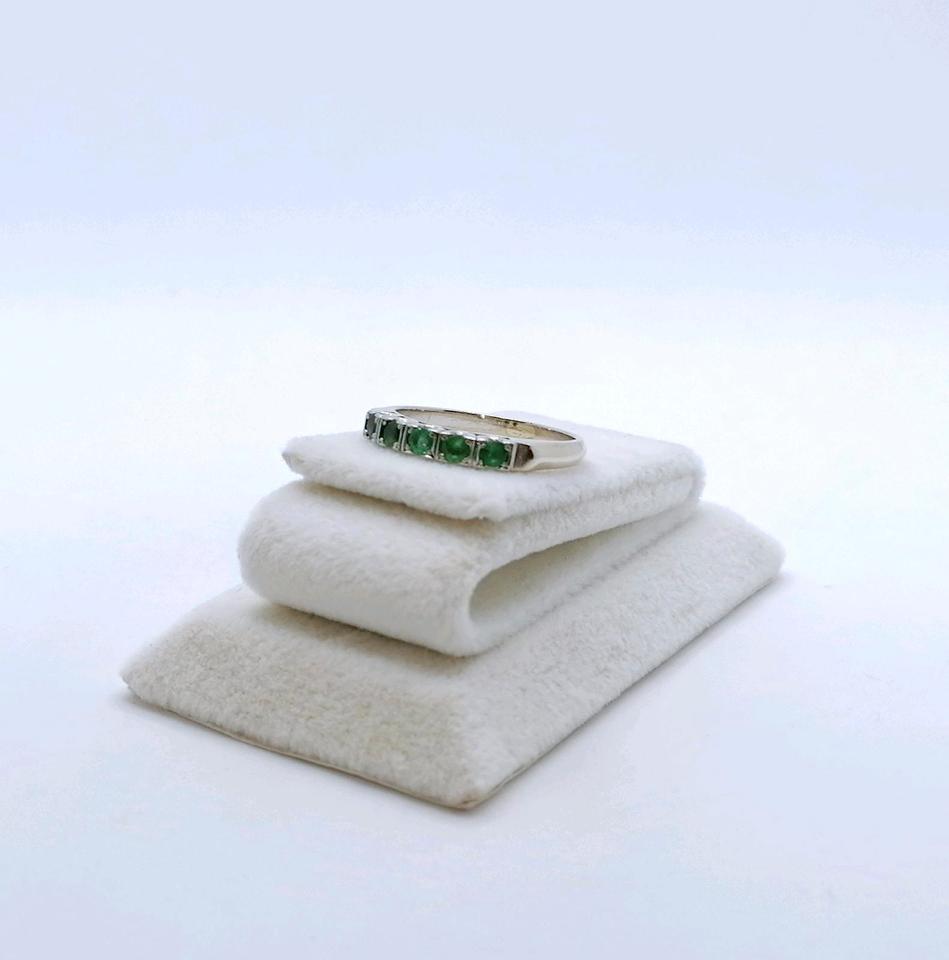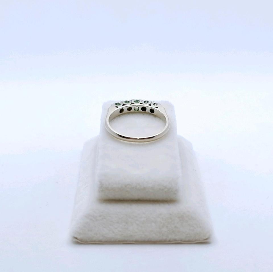 Vintage Gold Damenring mit Smaragd Edelsteinen. Das Schmuckstück ist aus 585er 14 karat Weißgold gefertigt.