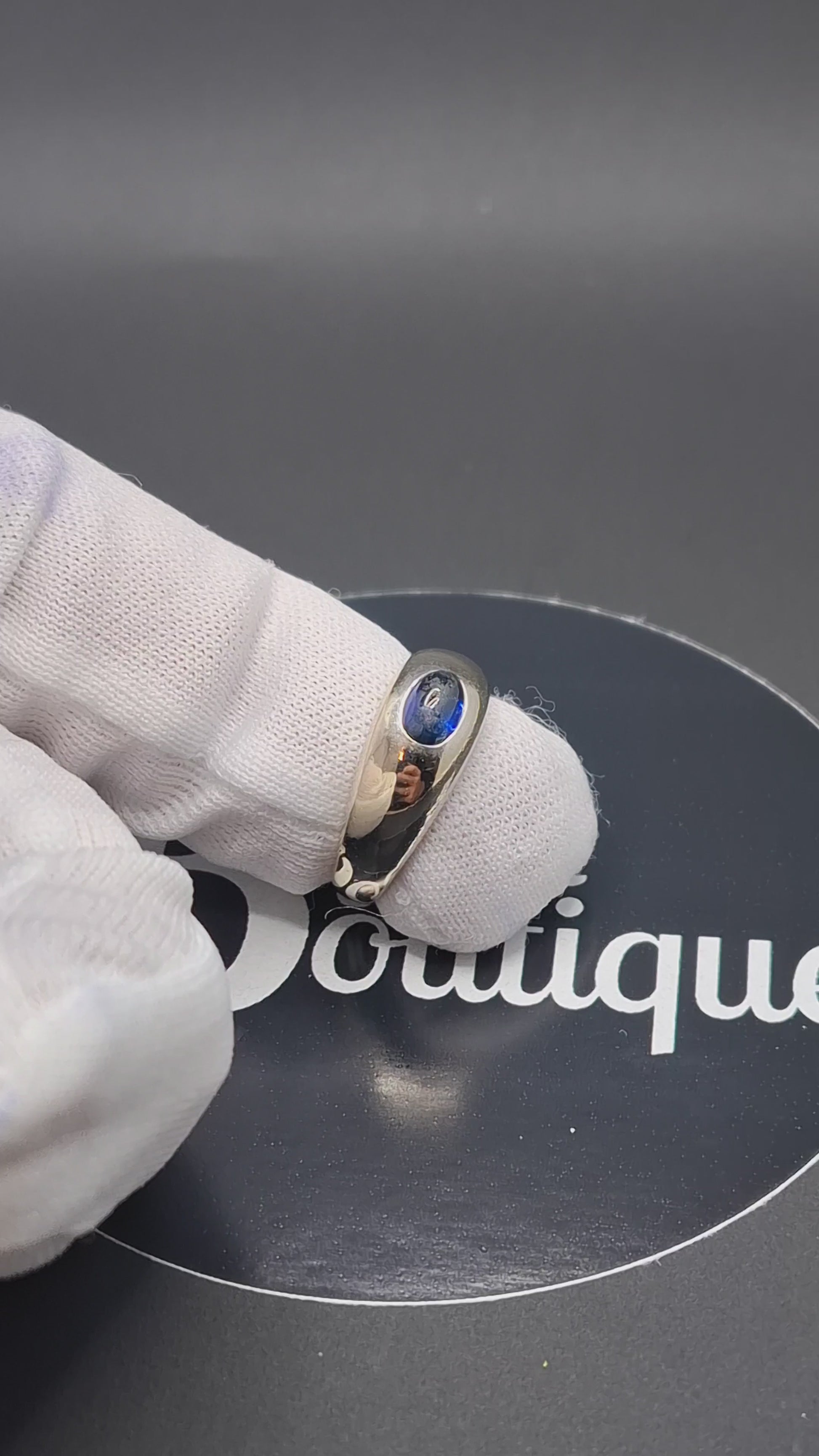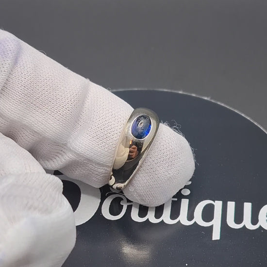 Weißgold Damenring mit einem Saphir Cabochon. Der Stein hat starke Gebrauchsspuren. Der Ring ist aus 585er 14 karat Gold gefertigt.